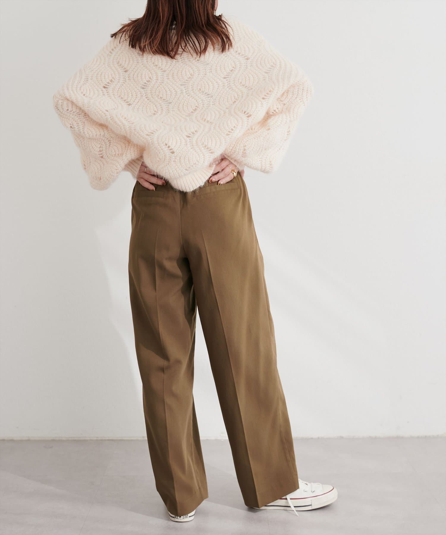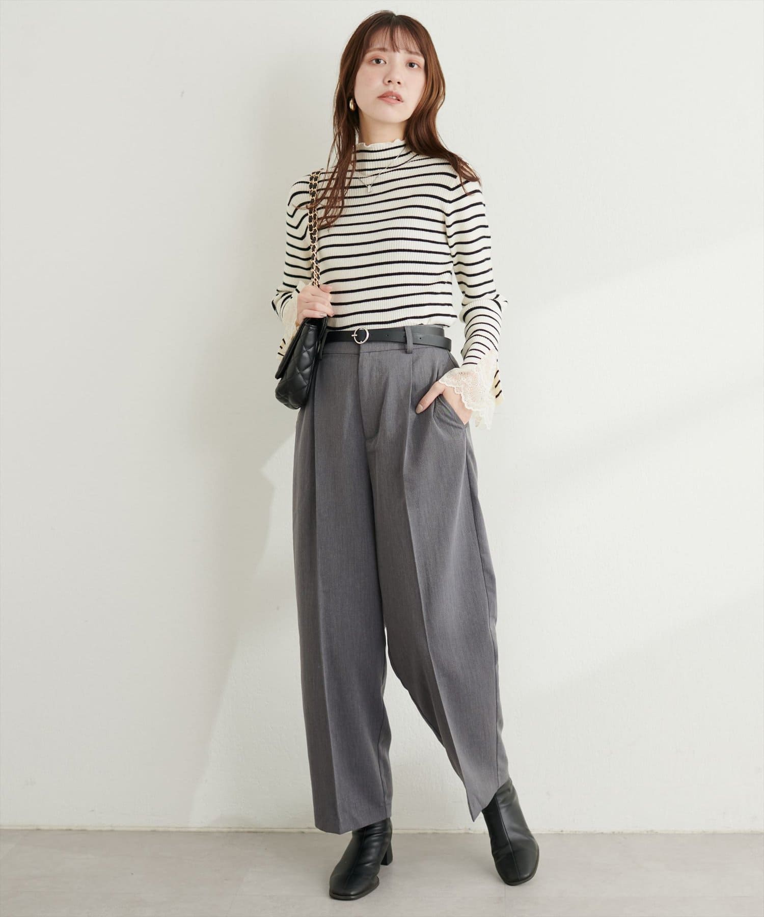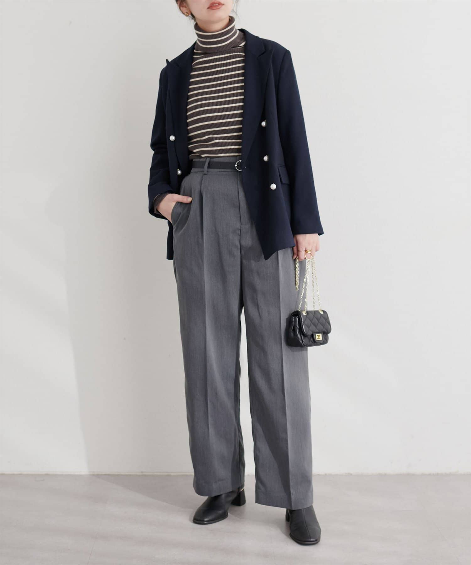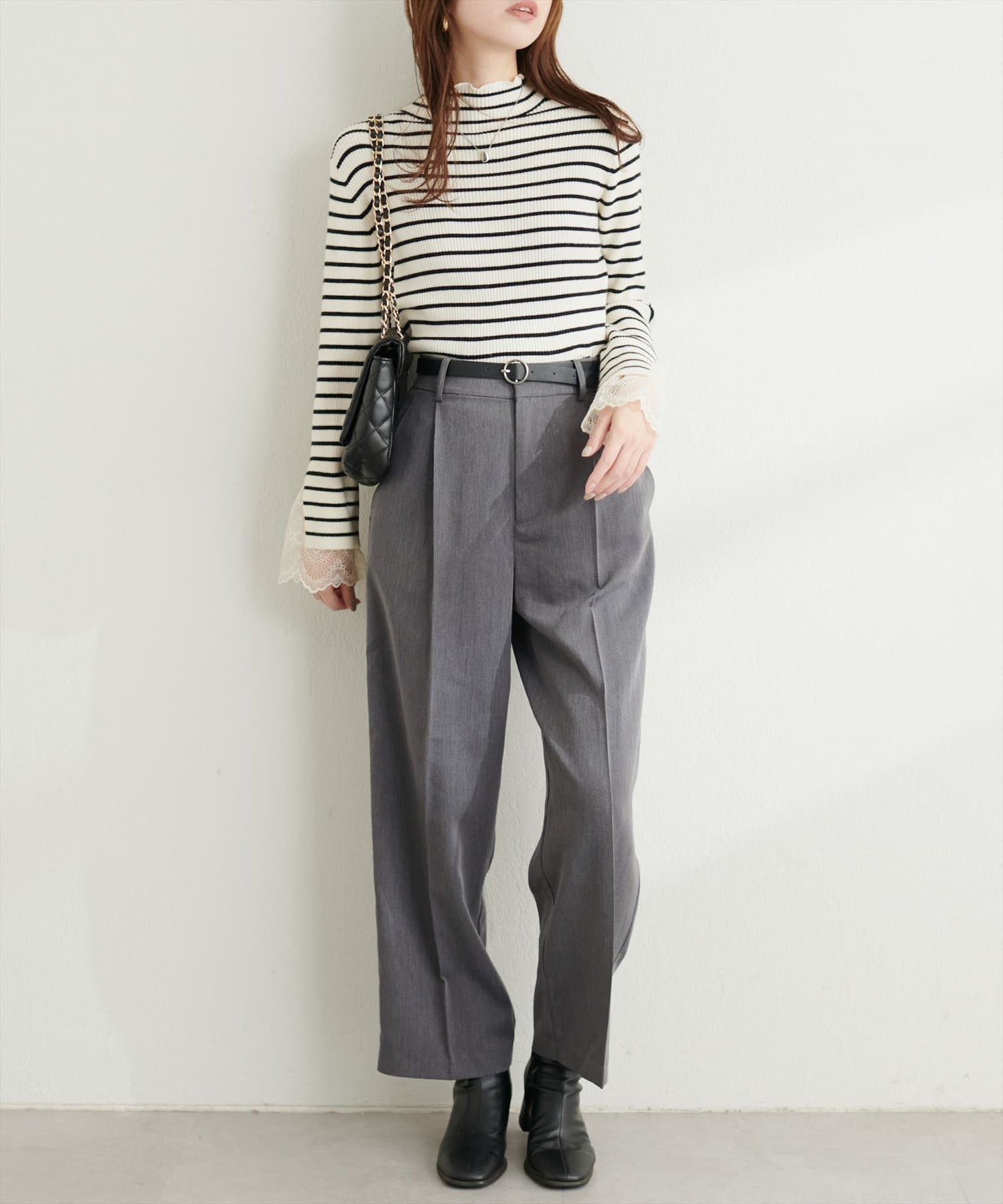存在感のあるタックとセンタープレスが縦ラインを強調し、スタイルアップ効果が期待できます。