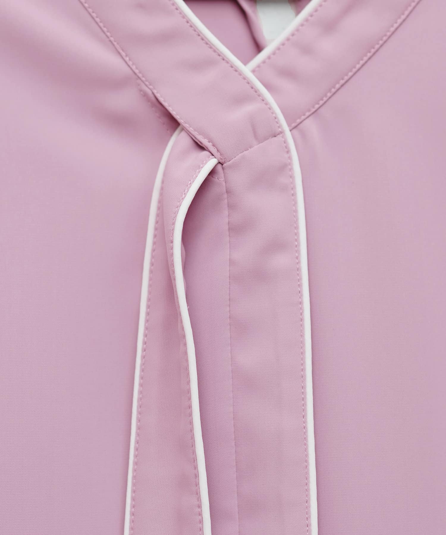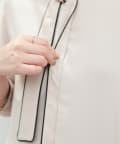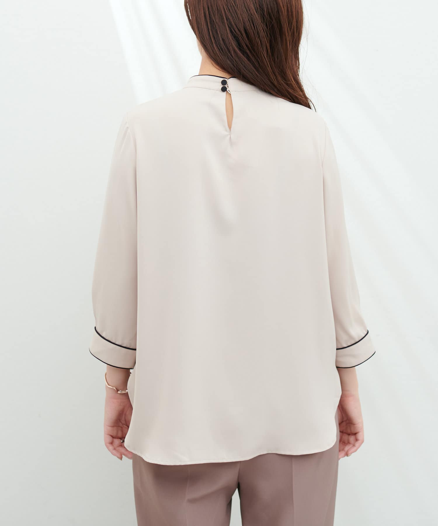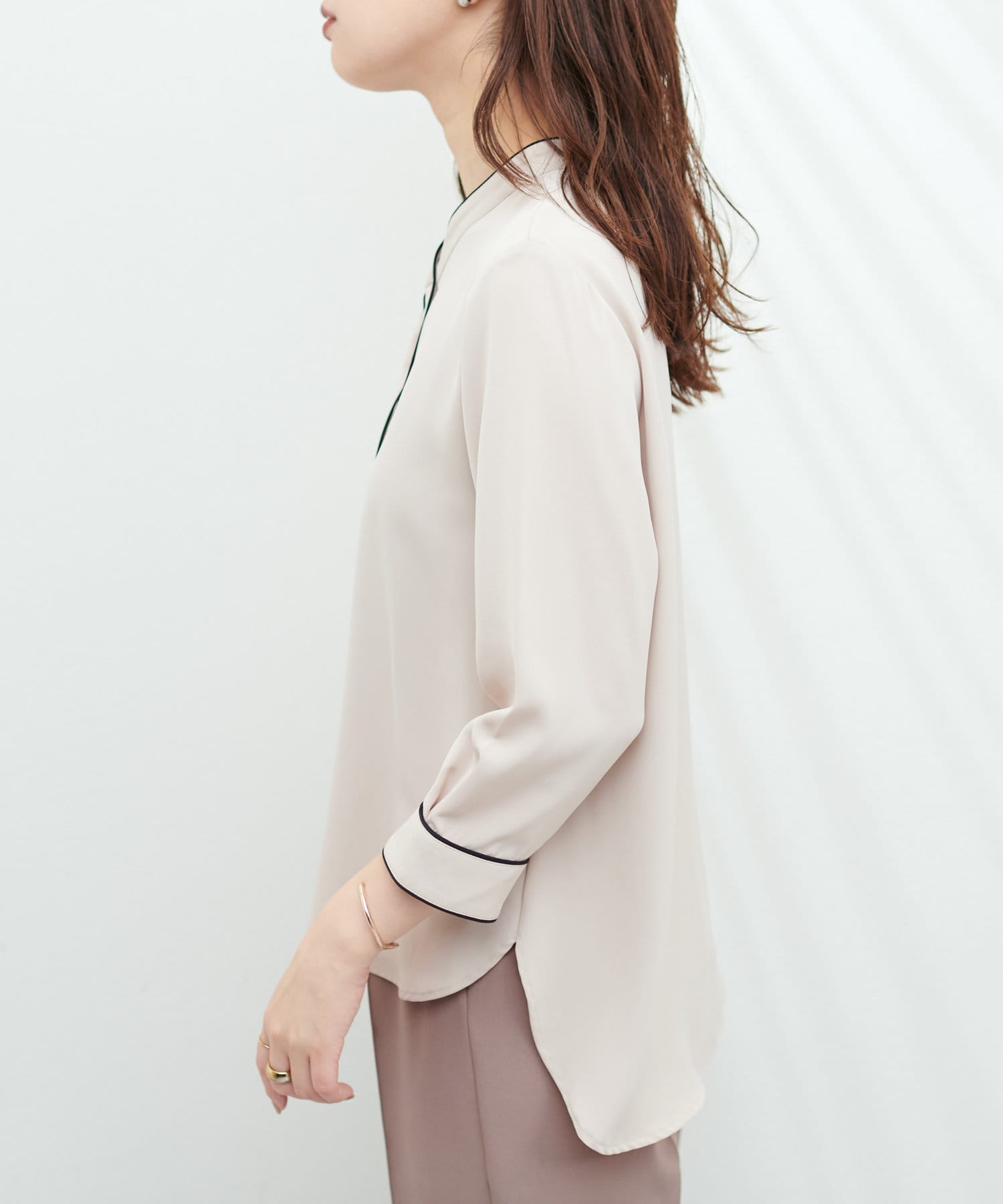 襟と袖口にはパイピングデザインが施されており、無地でも目の惹くデザイン。