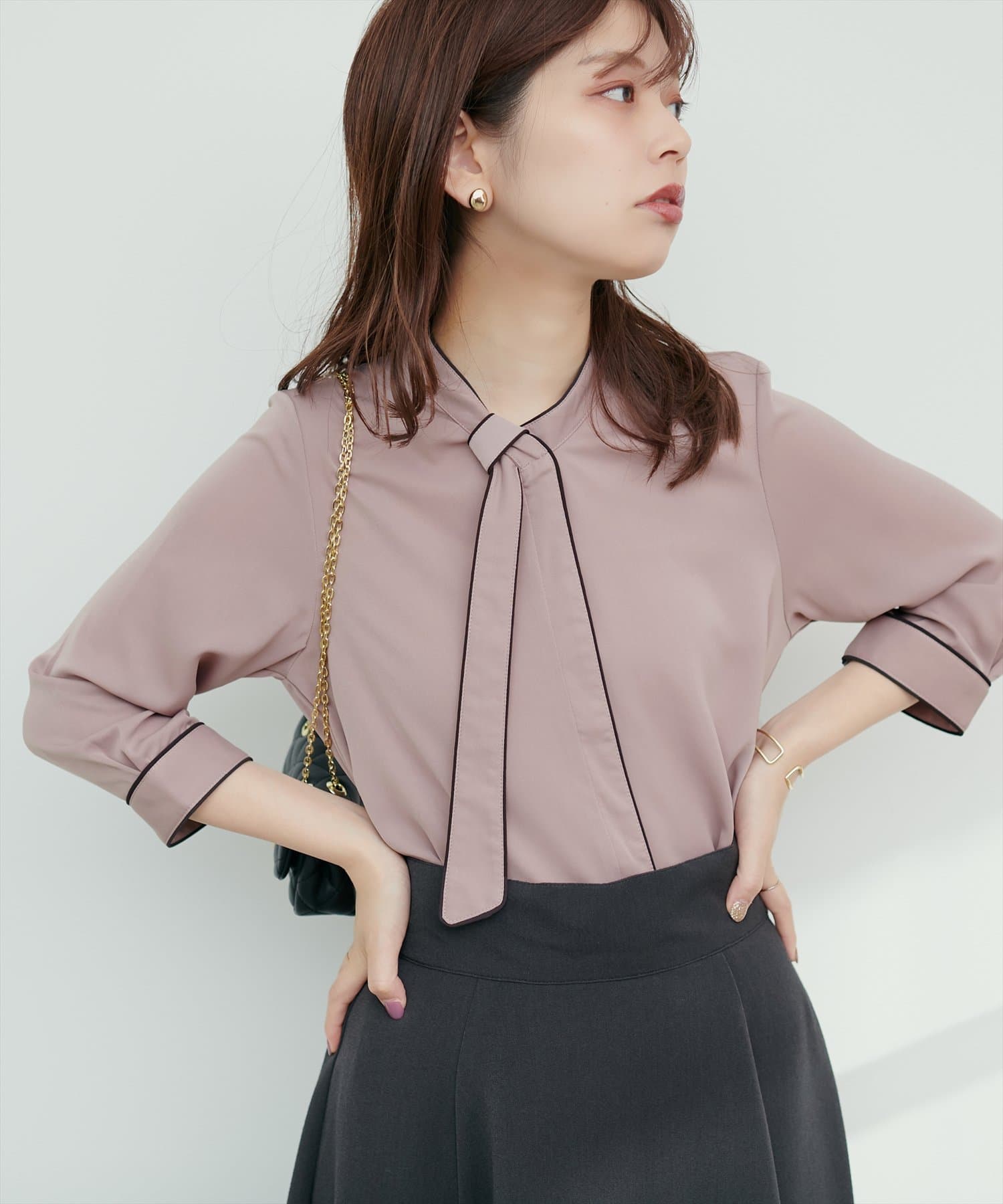 コーデが上品に仕上がる ねじり配色ボウタイブラウス
