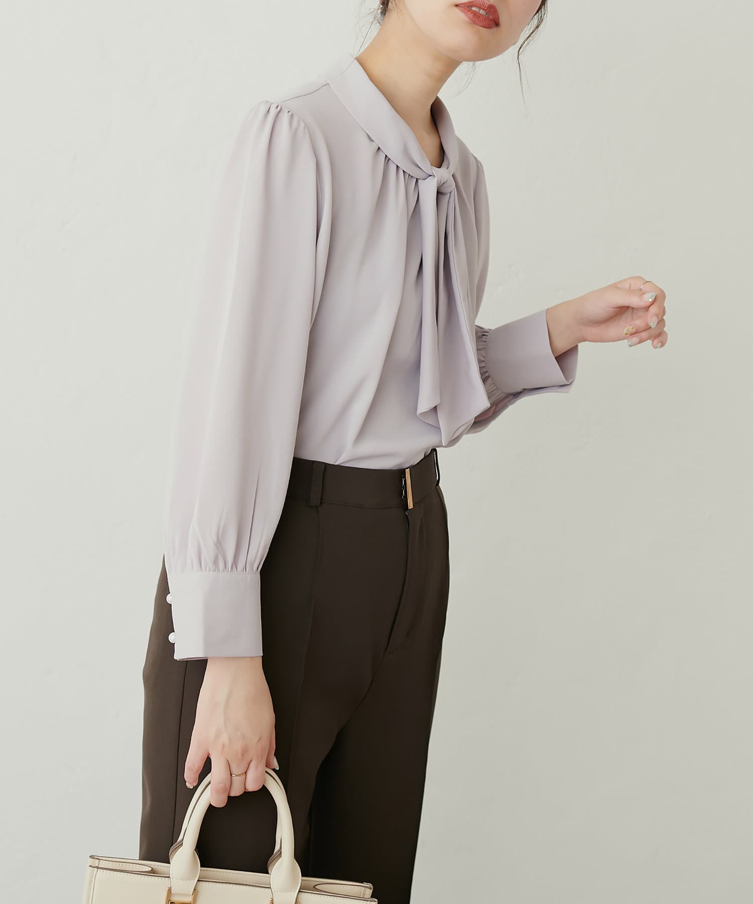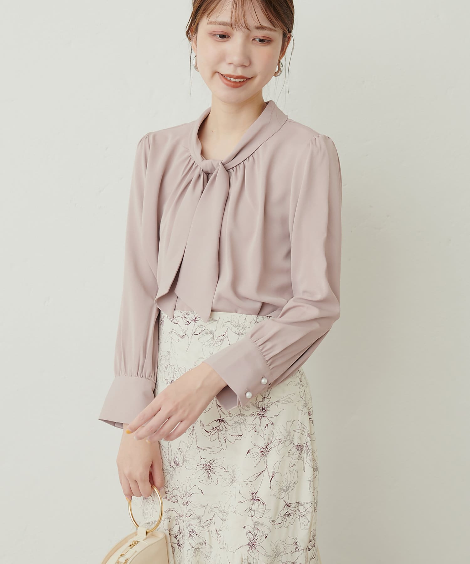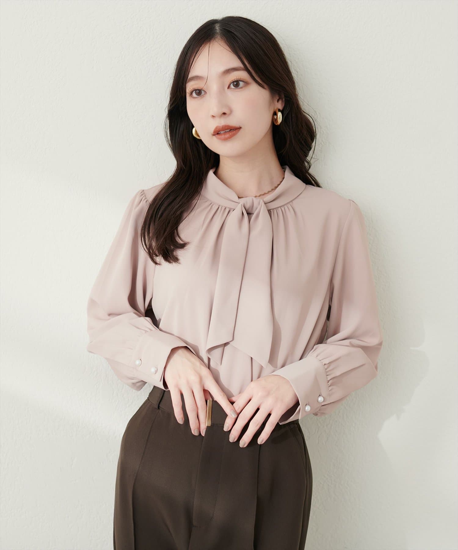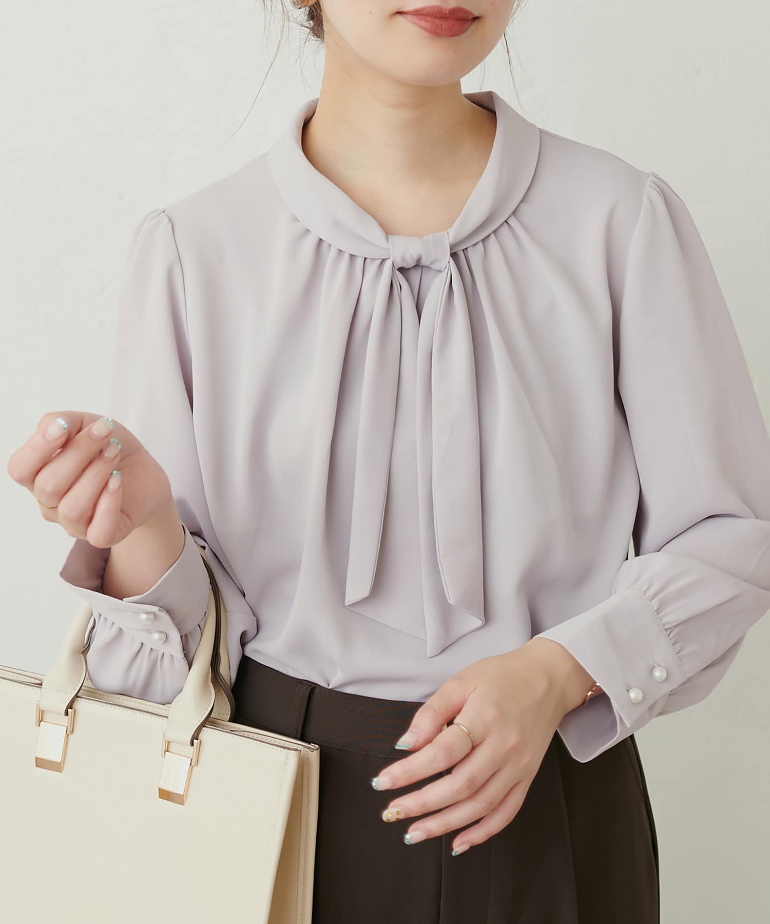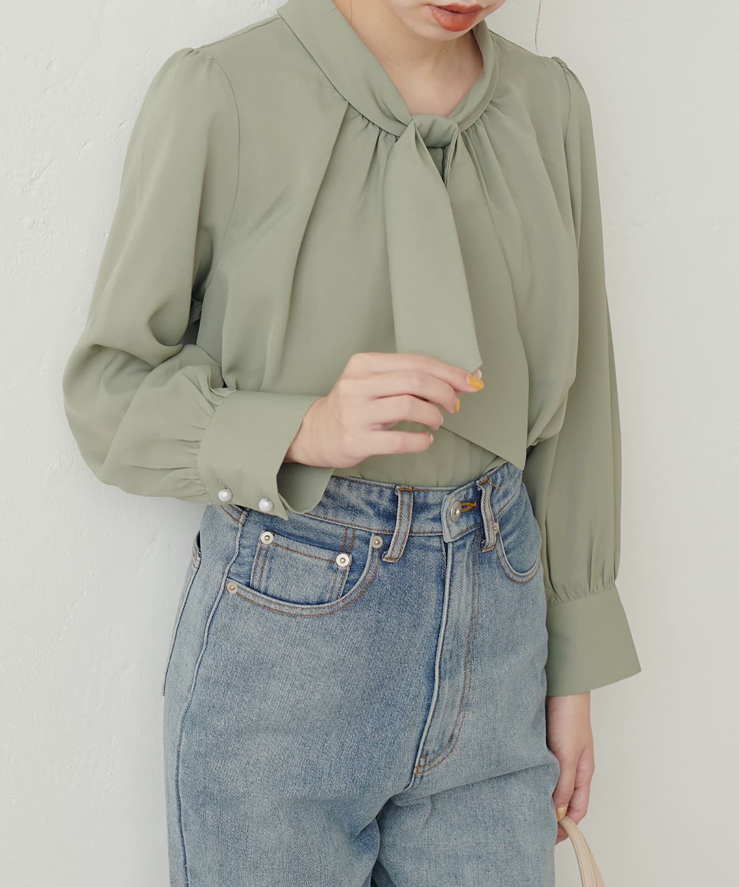 リバイバル/WEB限定カラーあり/袖口パールノット結びボータイブラウス