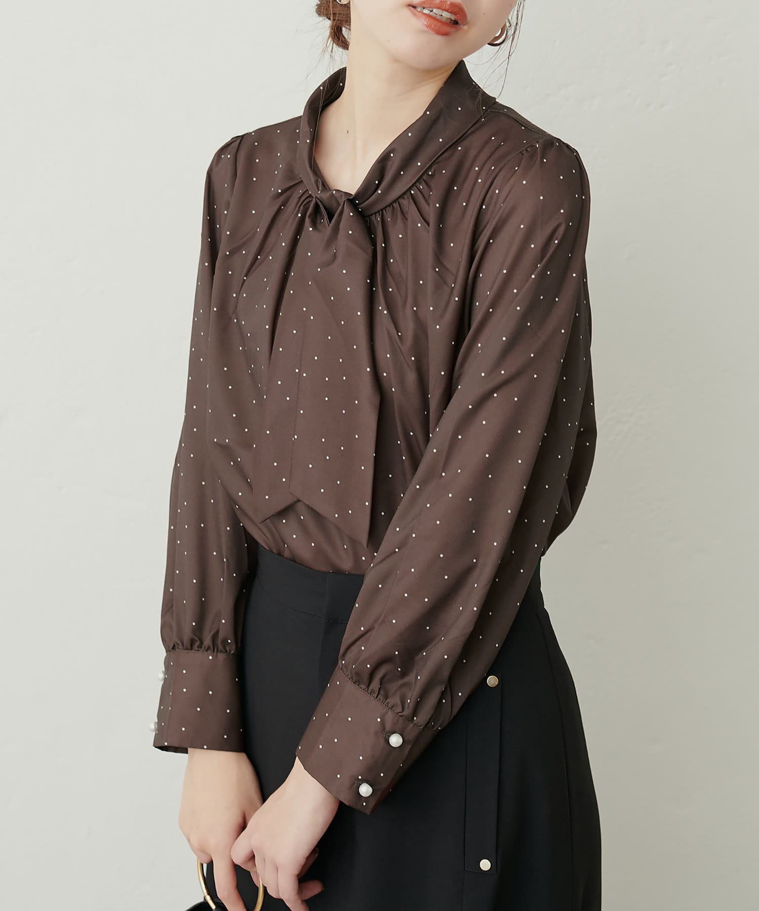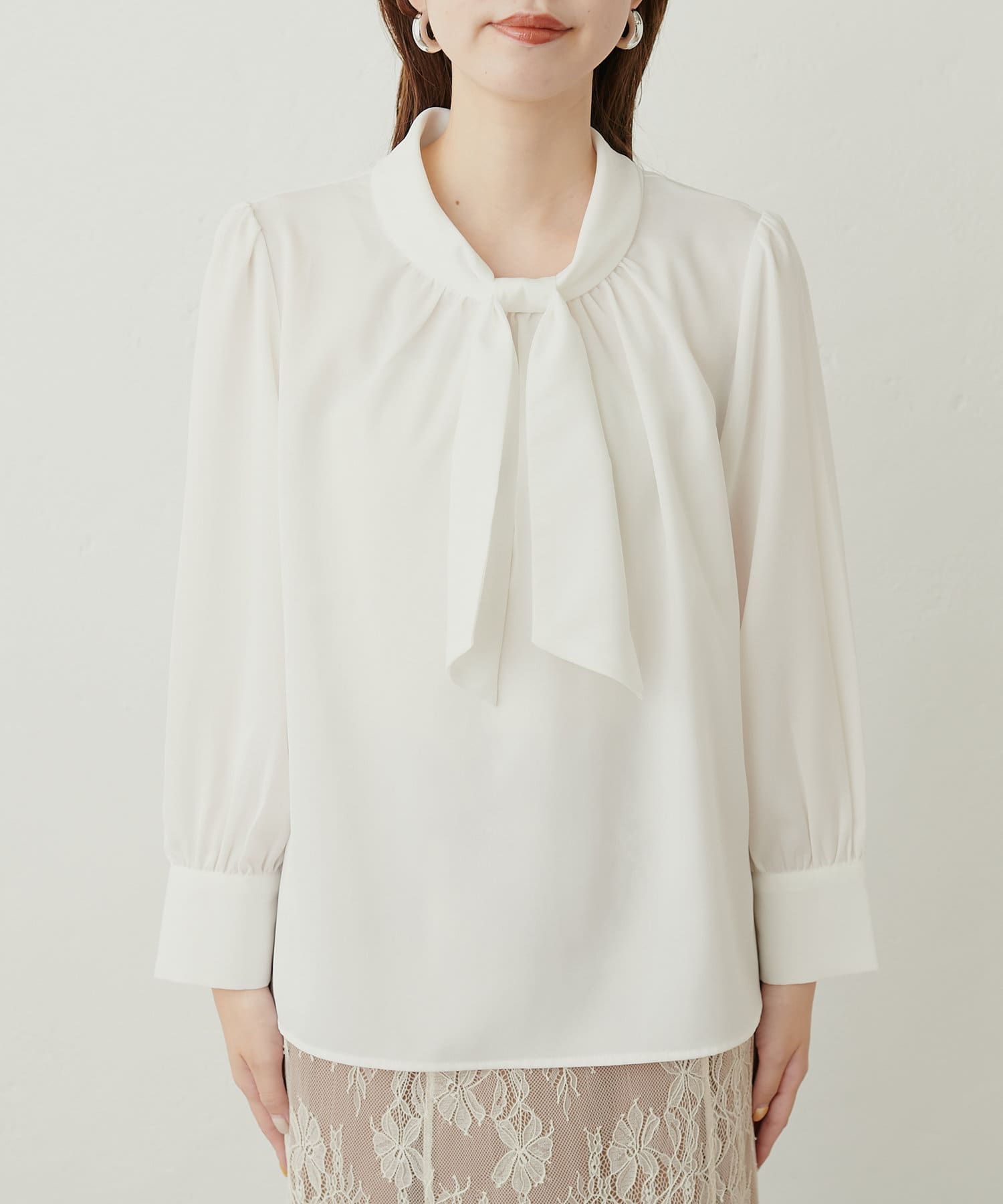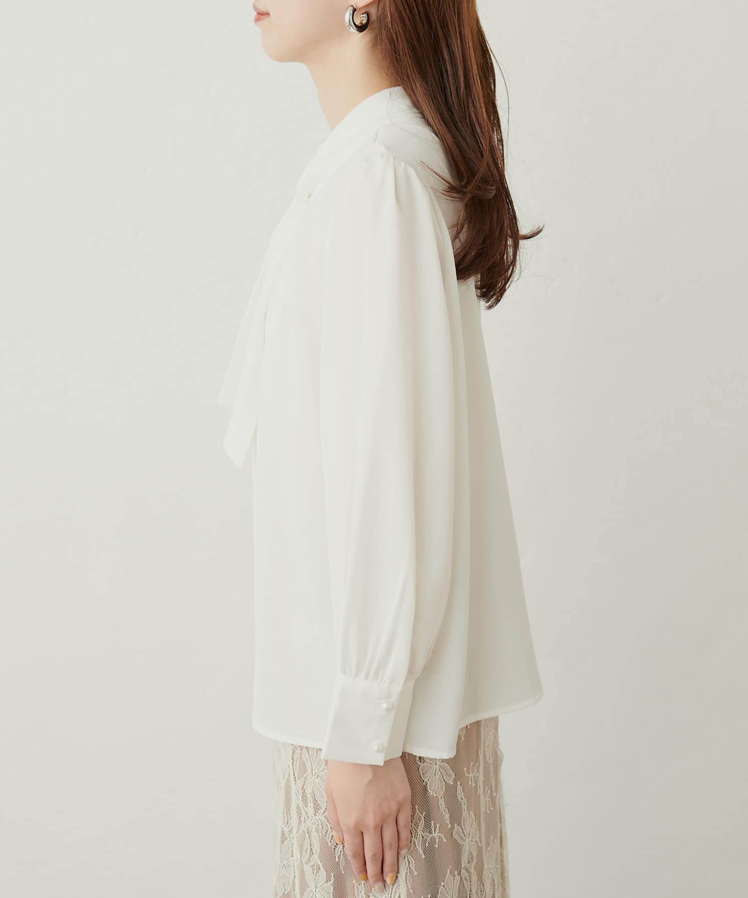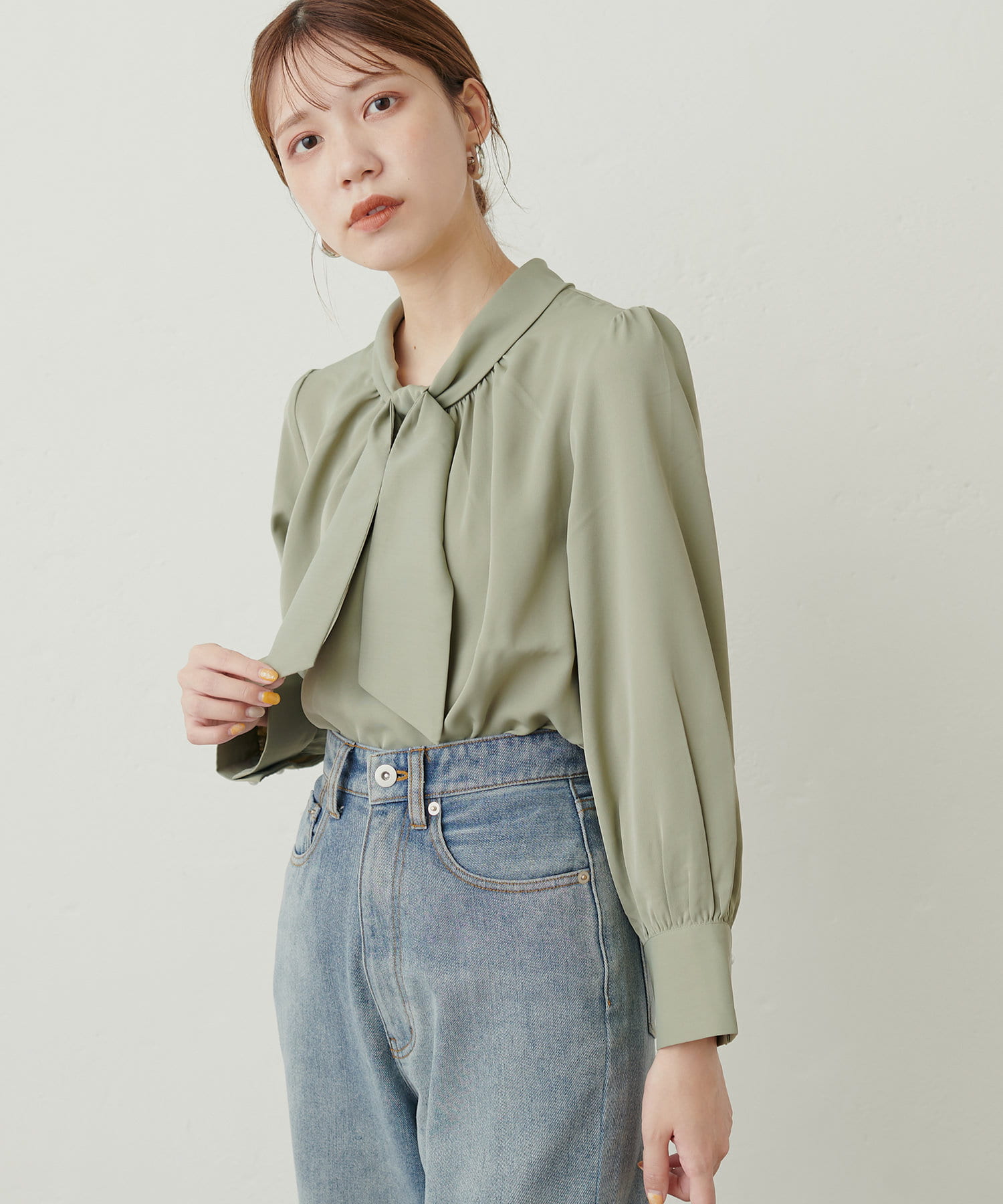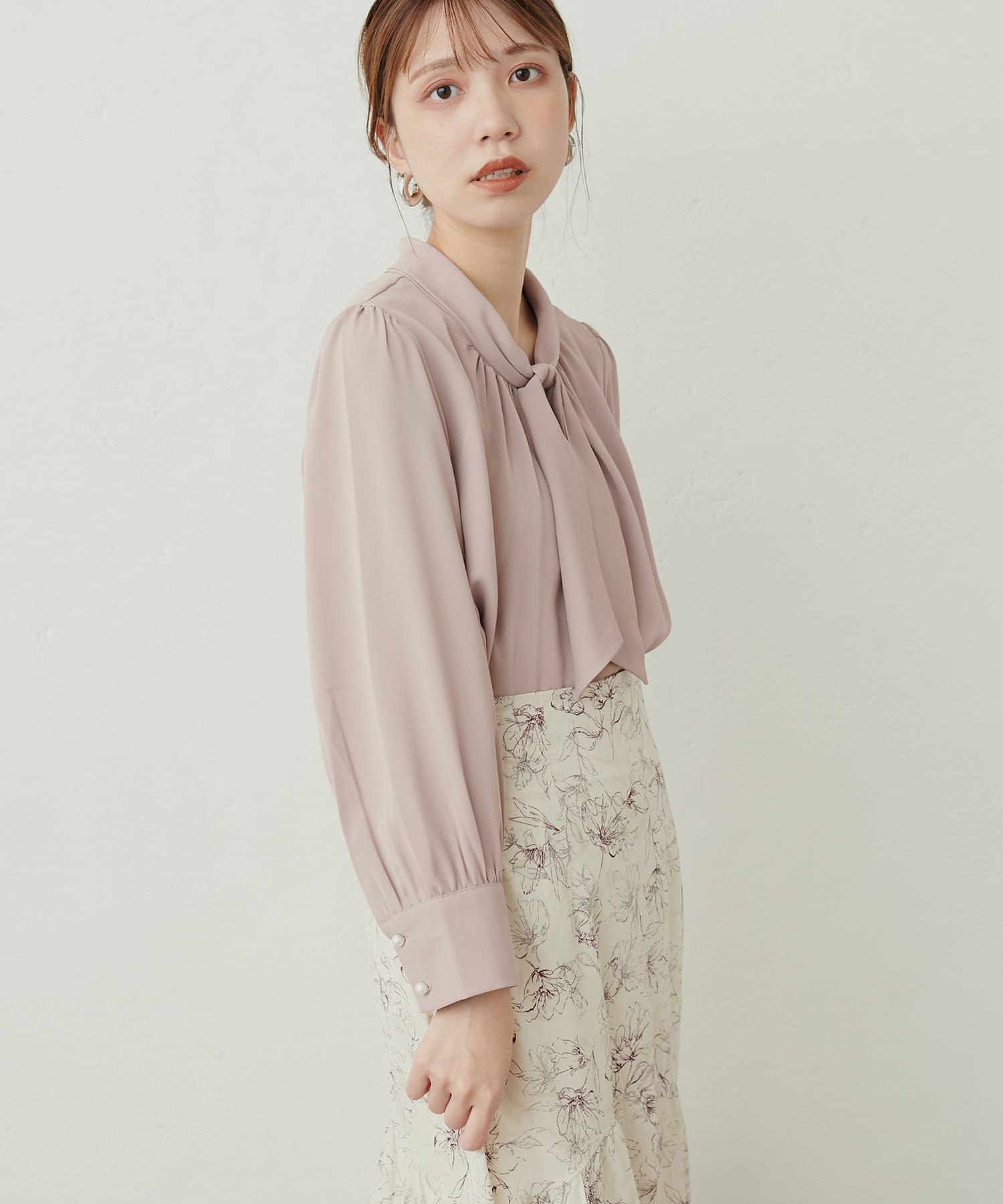 リバイバル/WEB限定カラーあり/袖口パールノット結びボータイブラウス