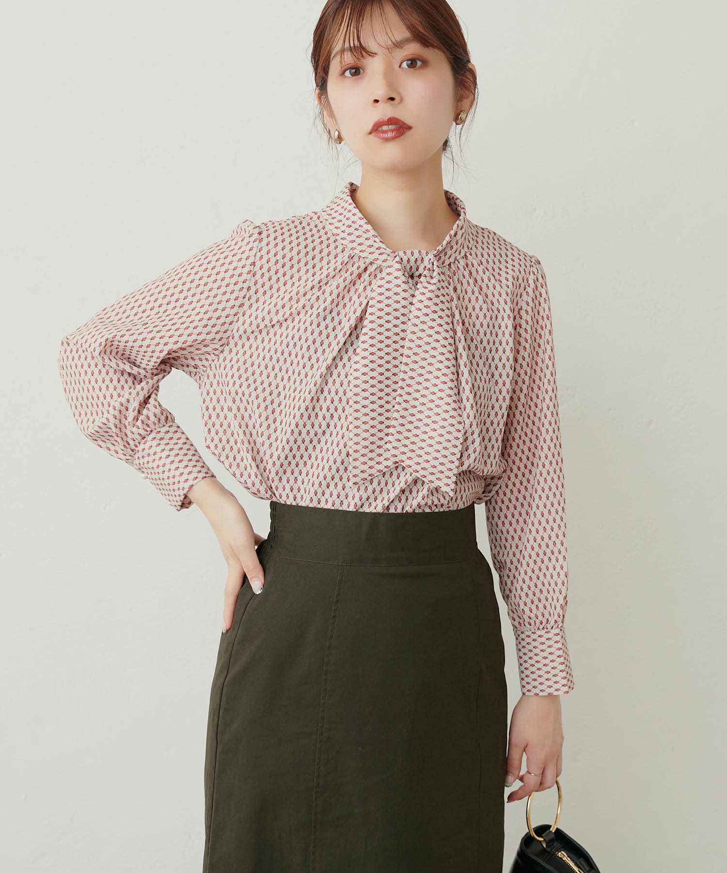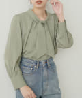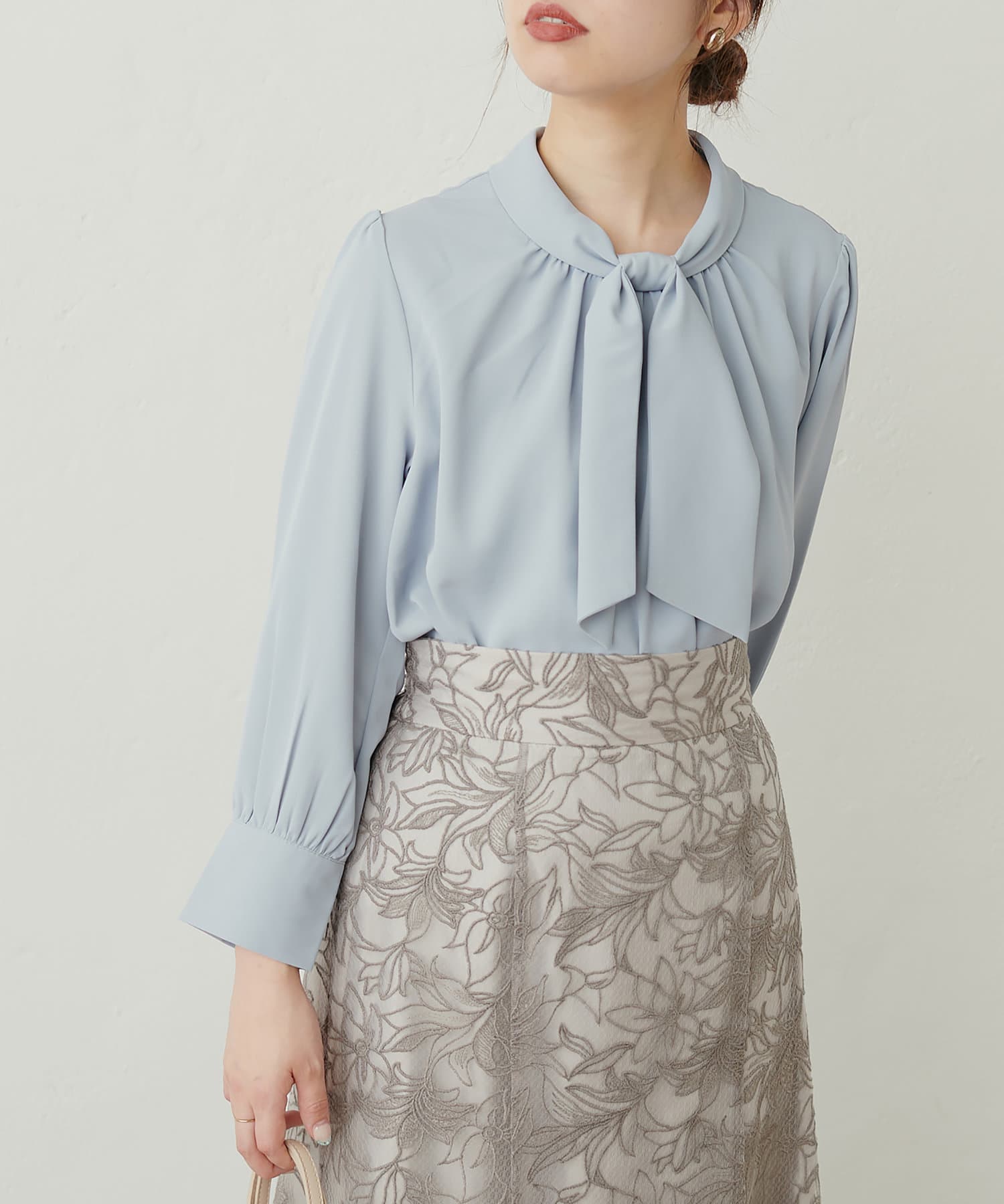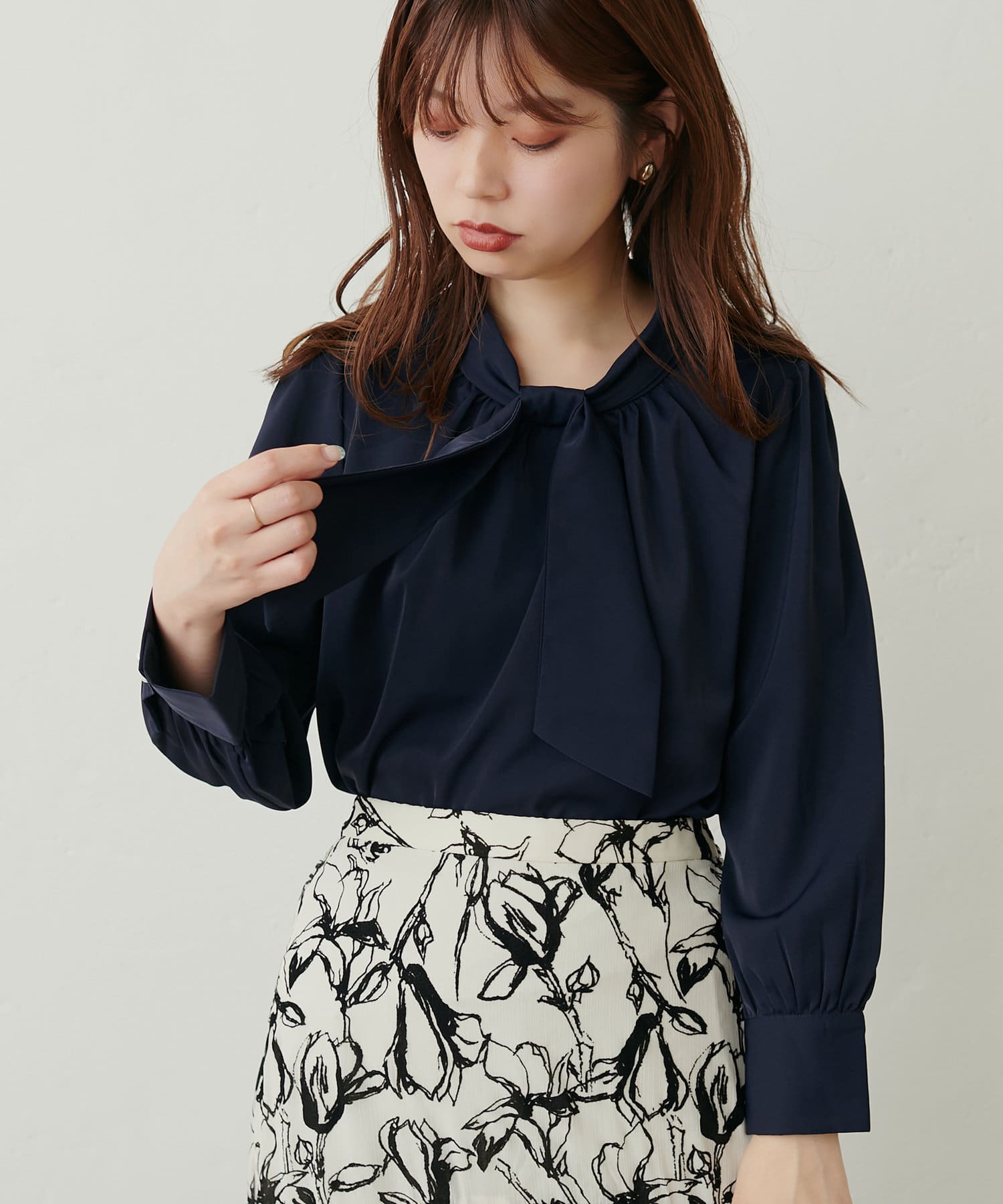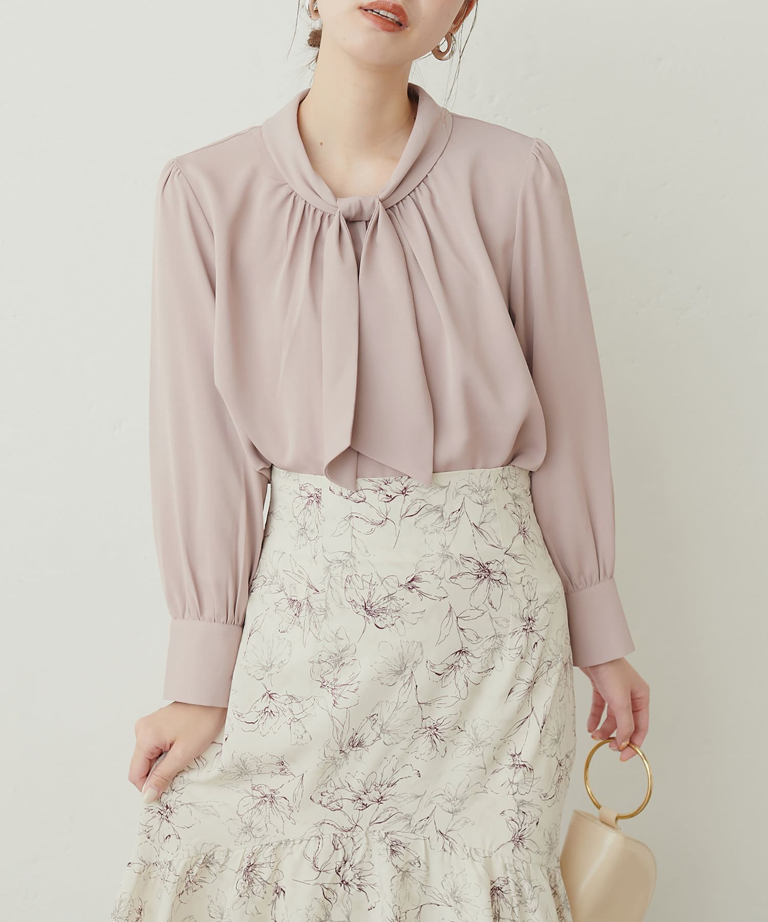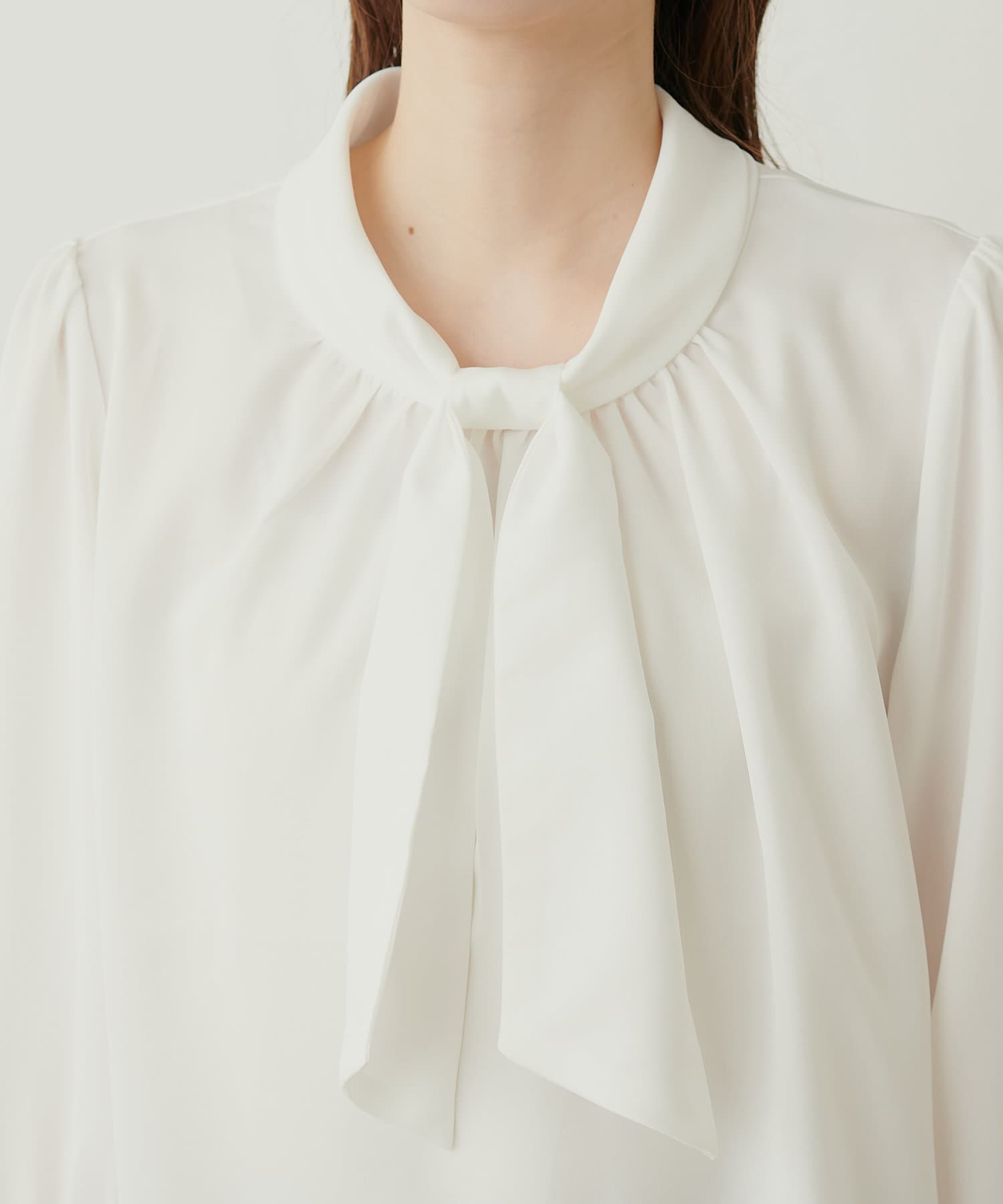 リバイバル/WEB限定カラーあり/袖口パールノット結びボータイブラウス