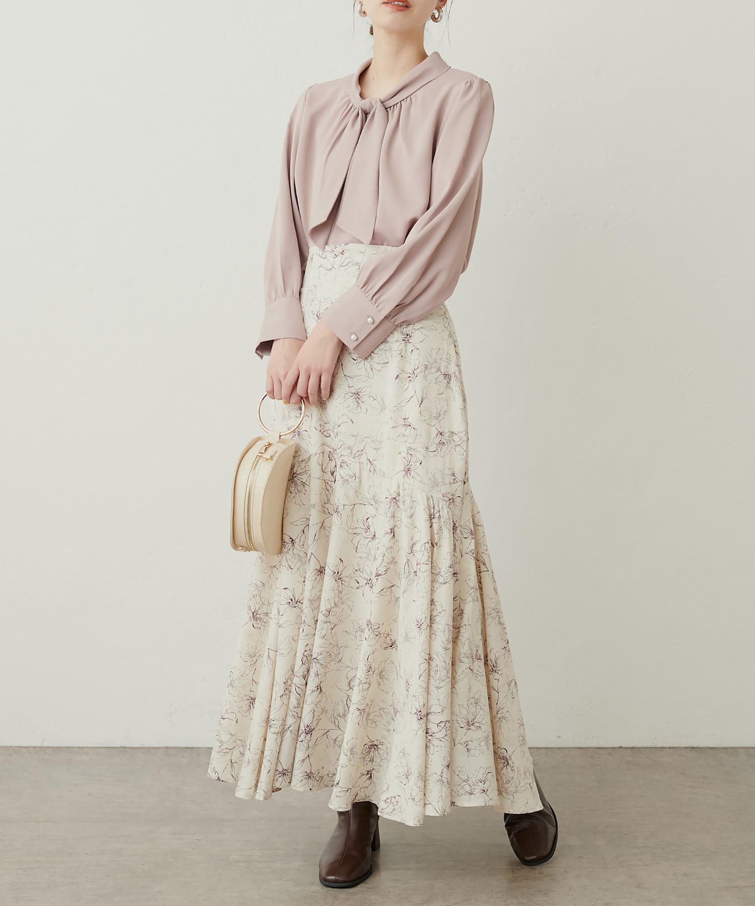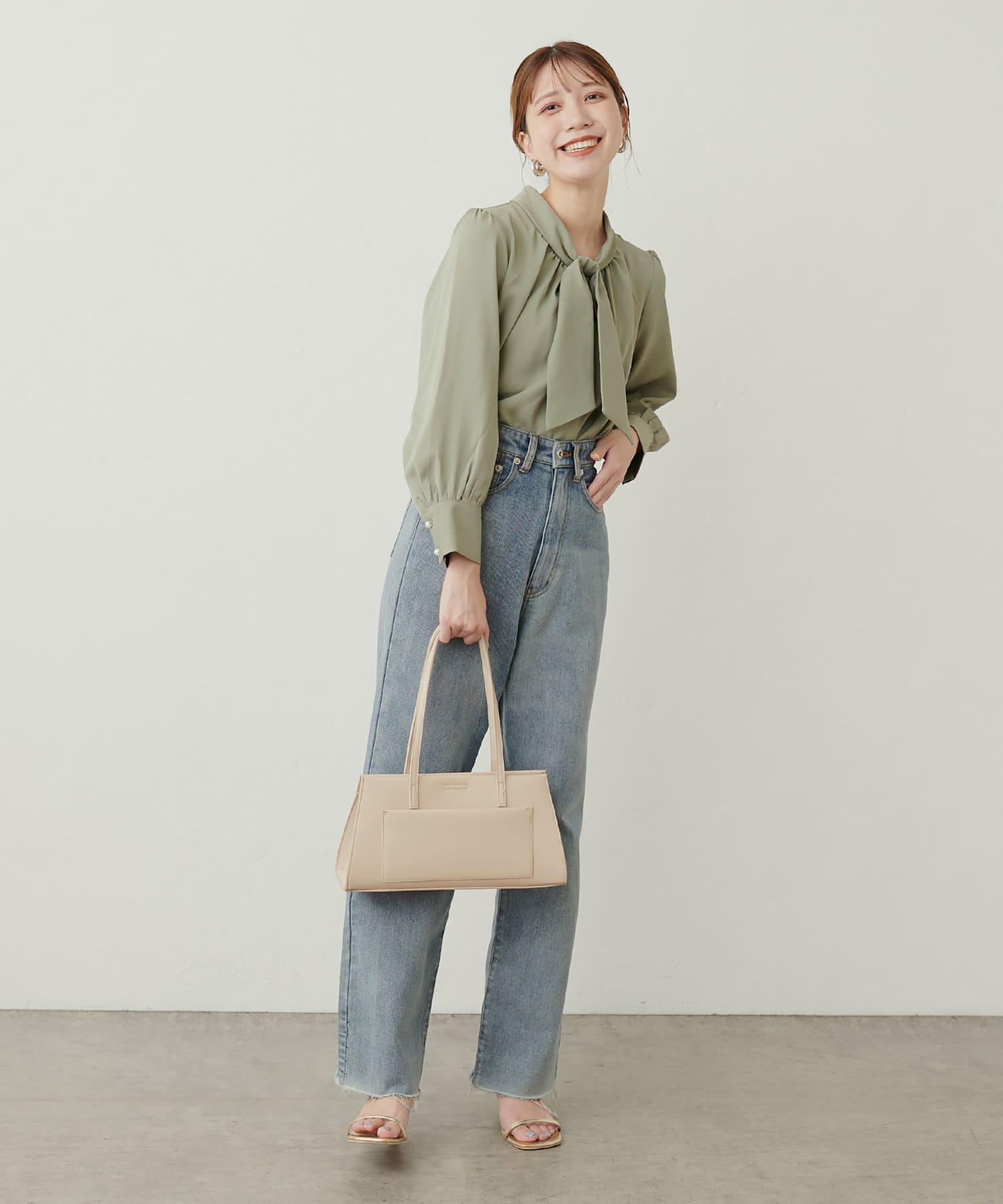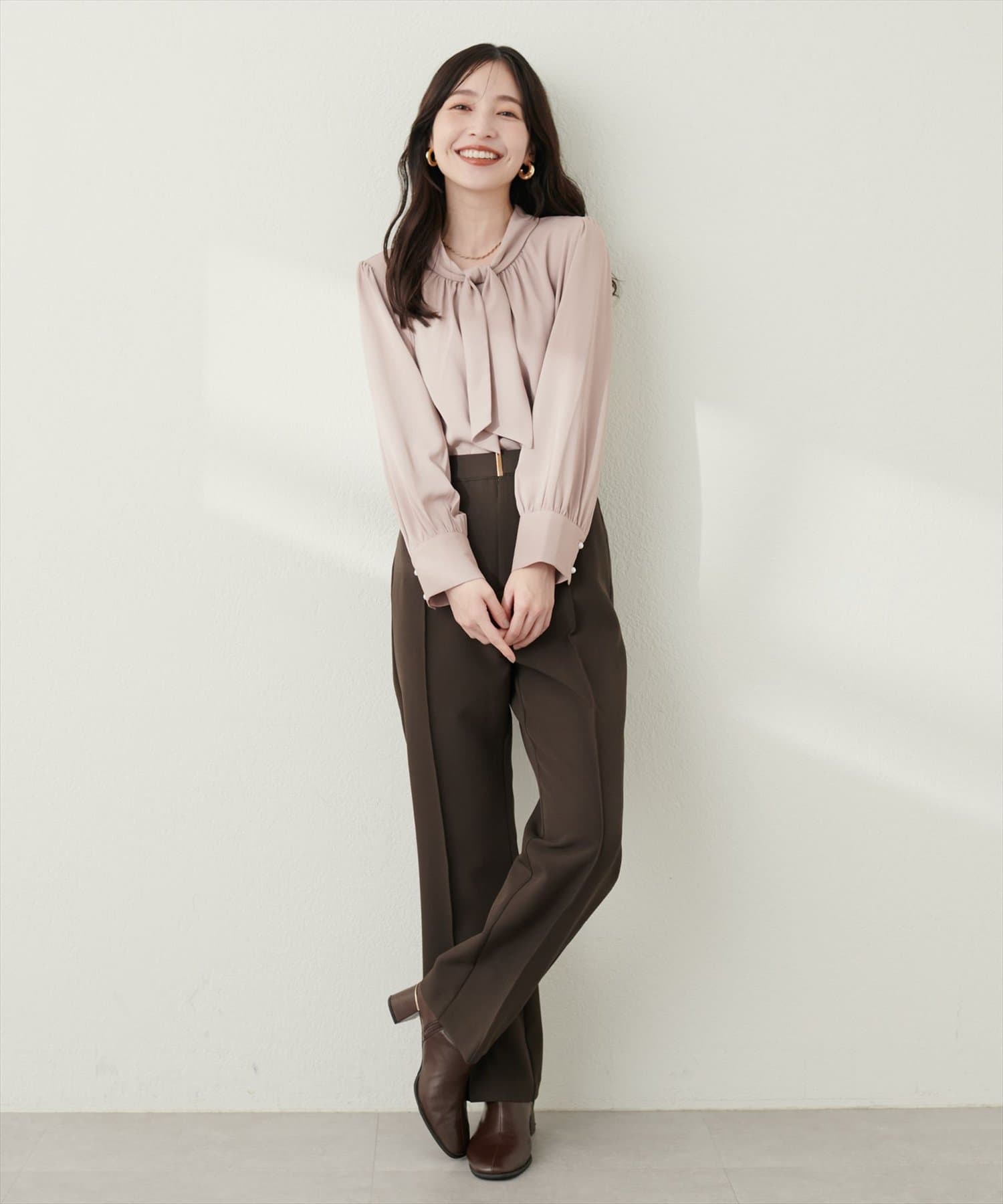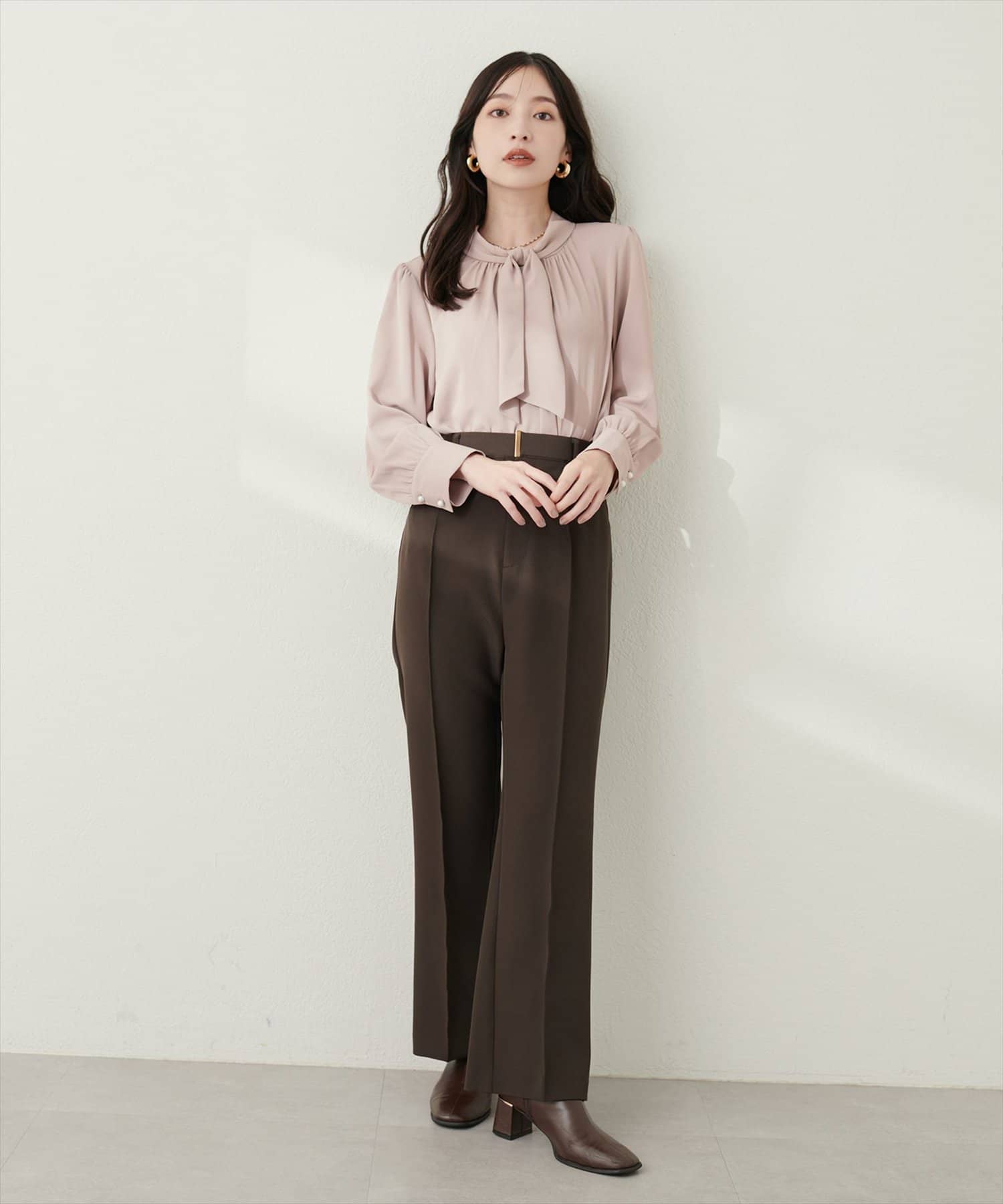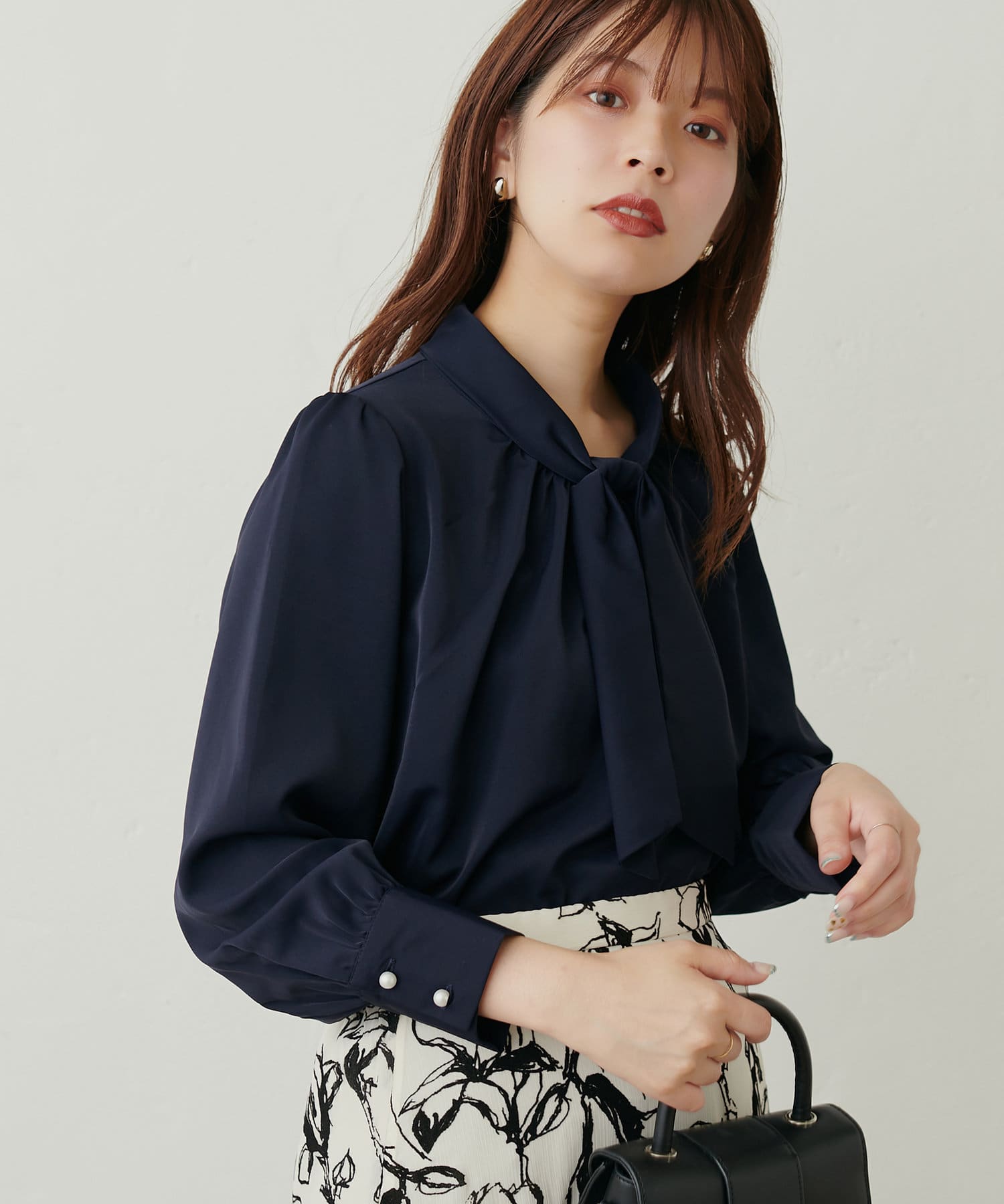 ネック部分と袖口に施したパールが大人上品な、デザイナー一押しの今季注目ブラウス。