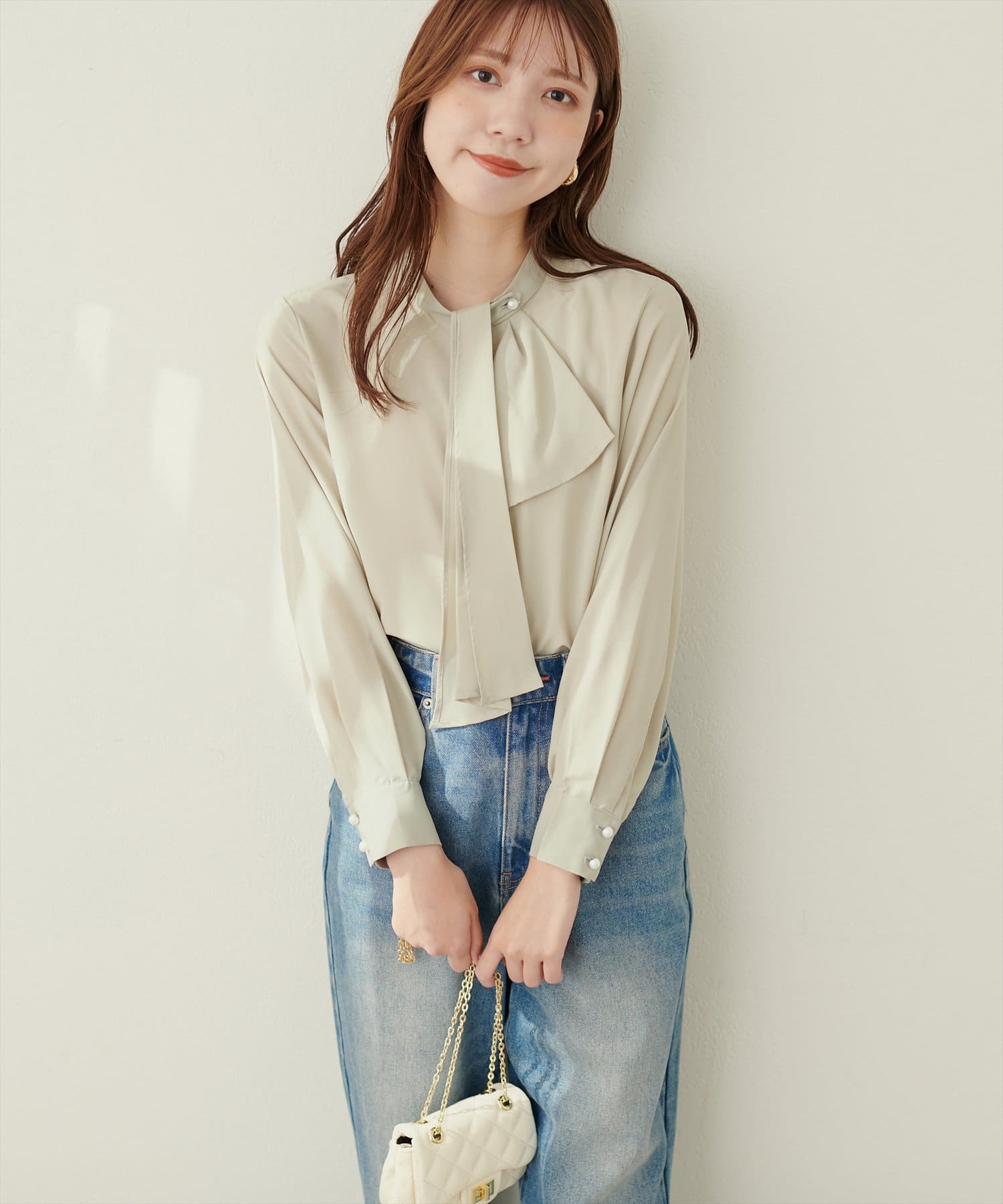 natural couture(ナチュラルクチュール) WEB限定 / ドレープスカーフタイ2WAYブラウス
