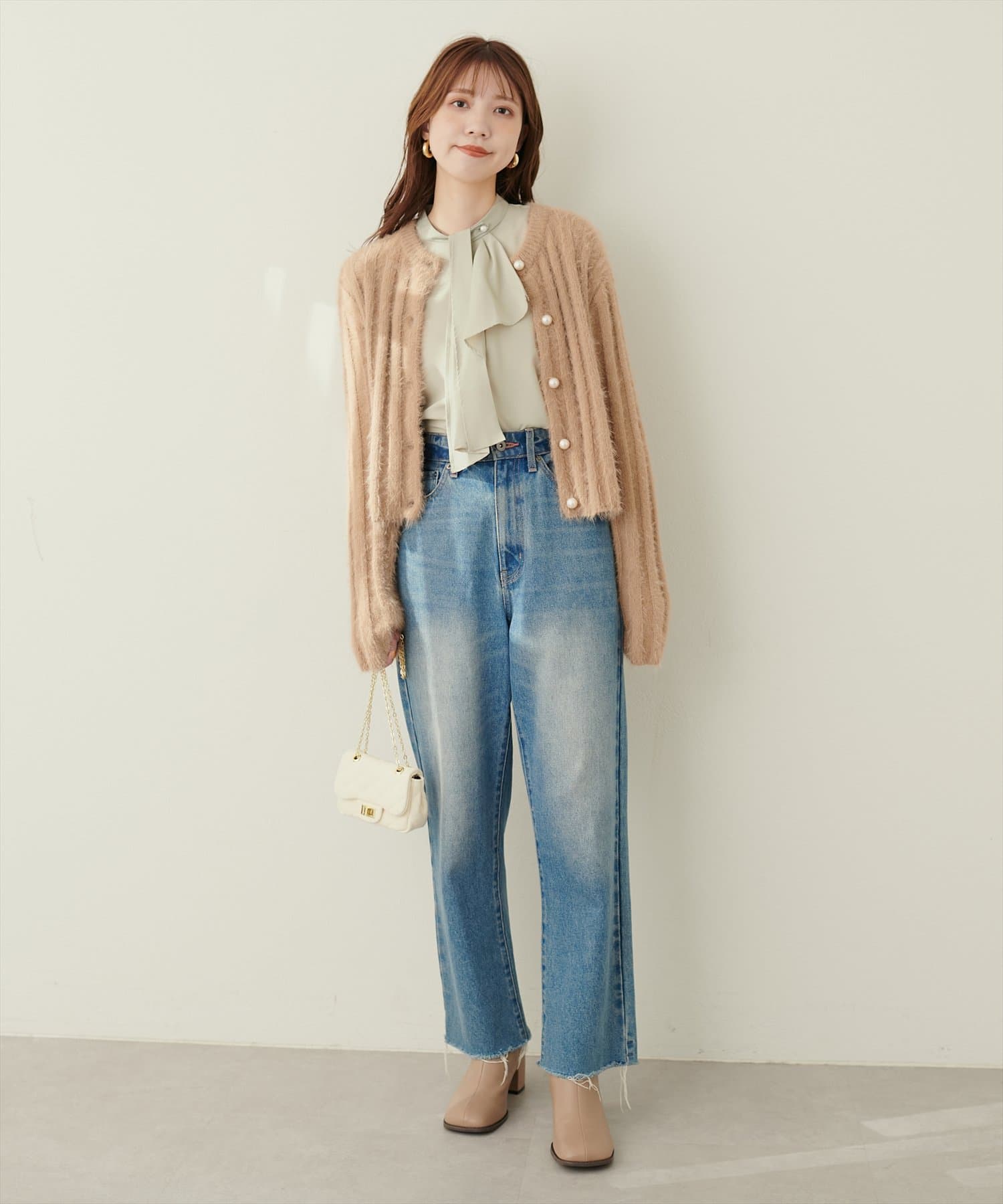 一枚で上品なアイテムなので、スカートスタイルはもちろん、デニムなどを合わせてカジュアルダウンするスタイルも◎