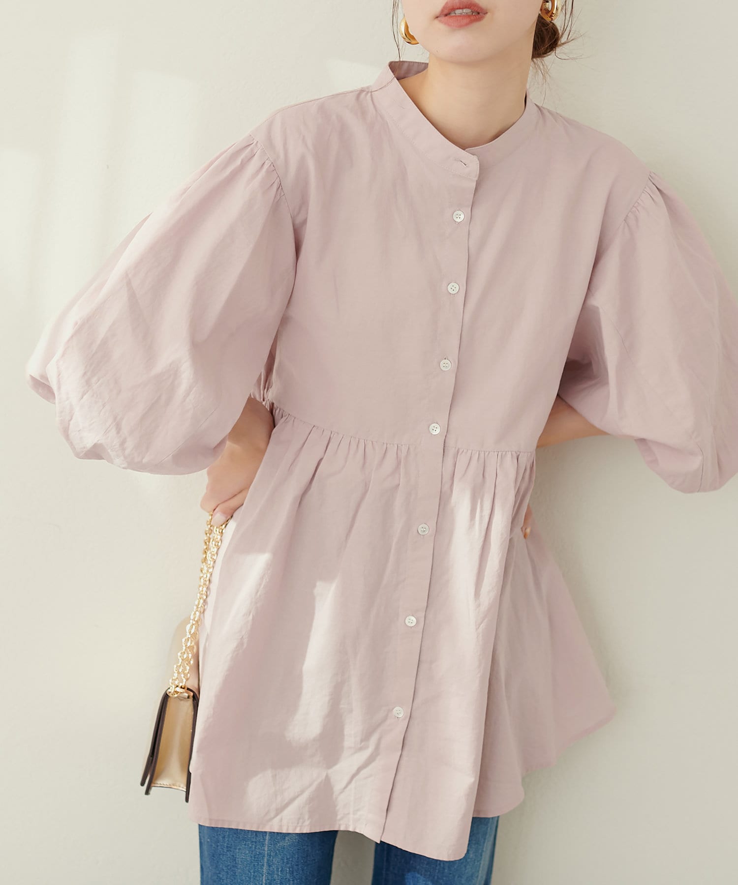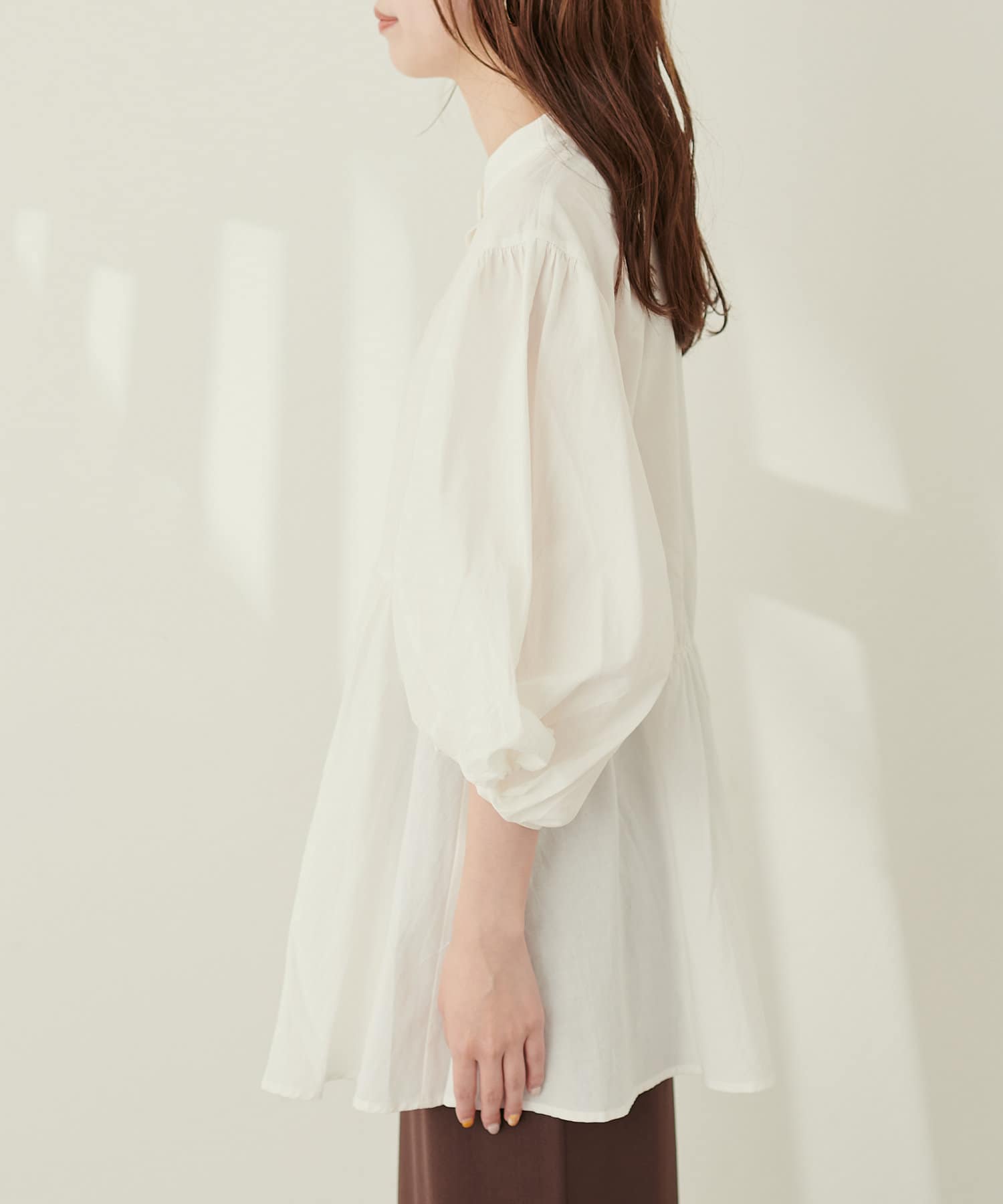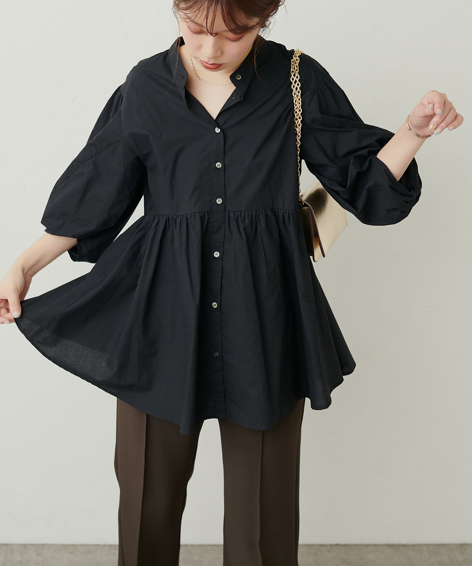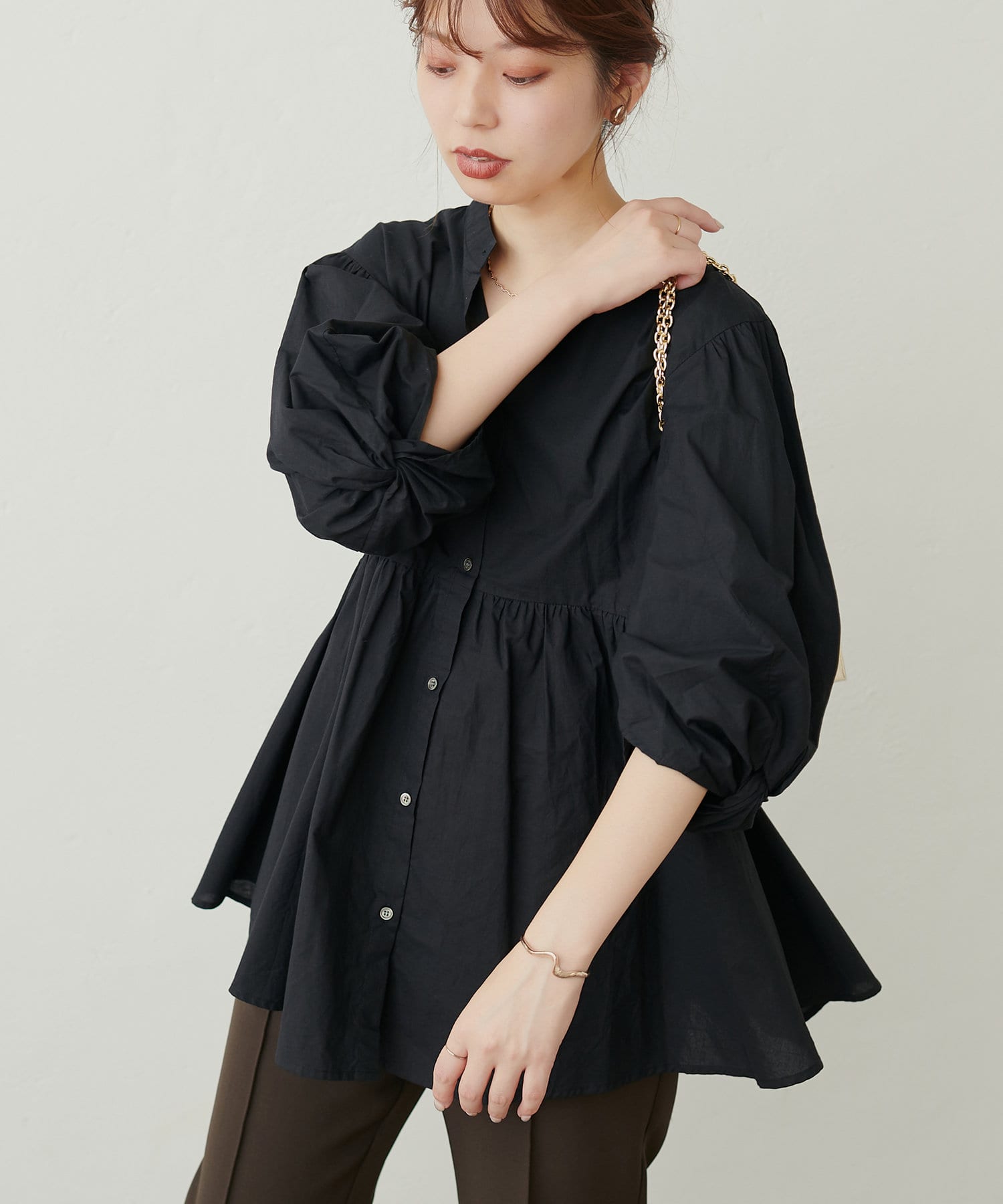 パリッとしたボリューム感のあるシルエットのブラウスなので