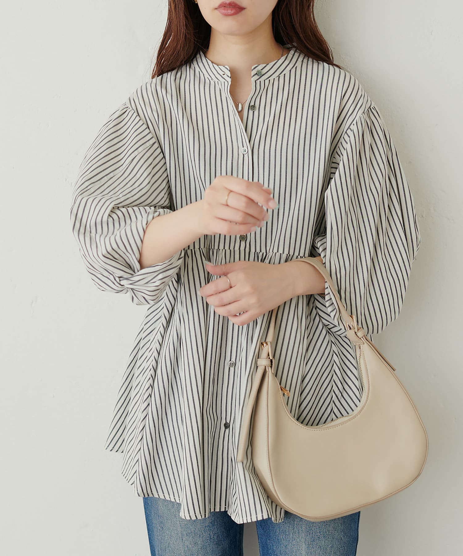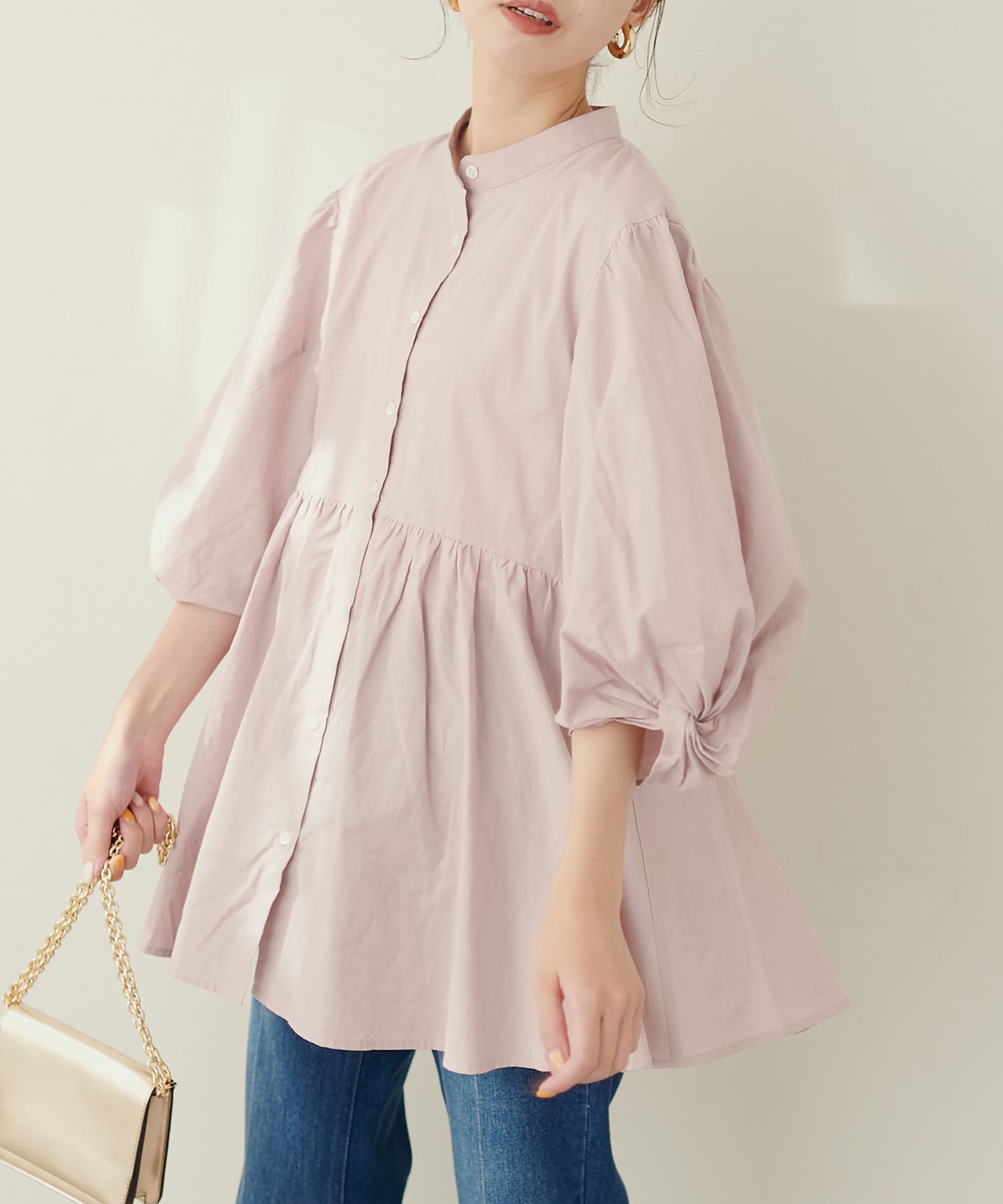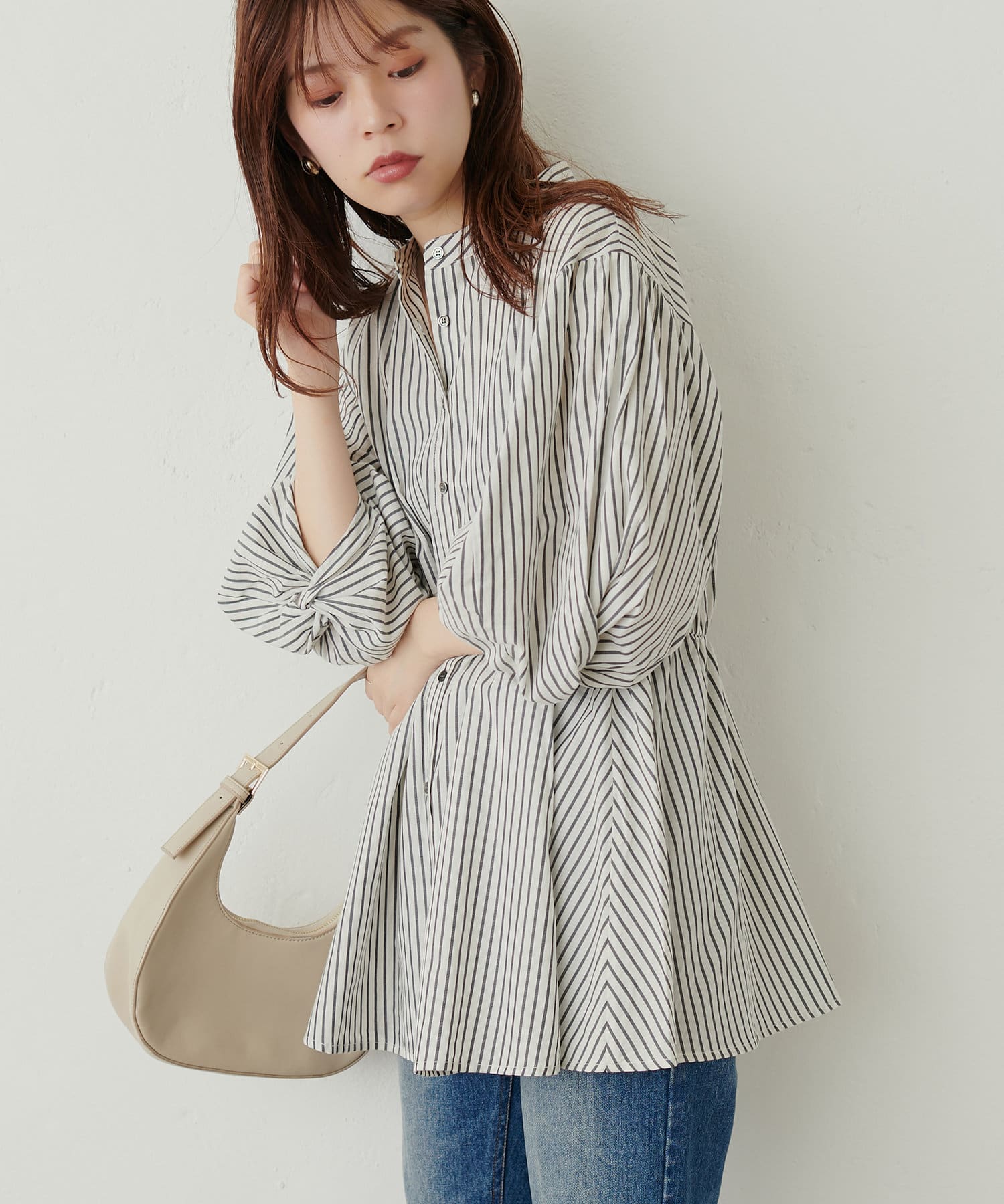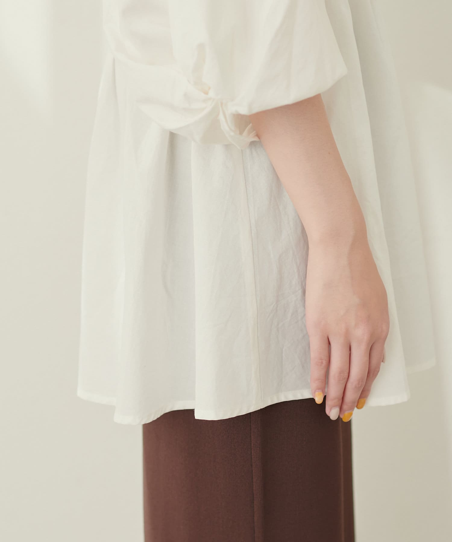 パリッとしたボリューム感のあるシルエットのブラウスなので
