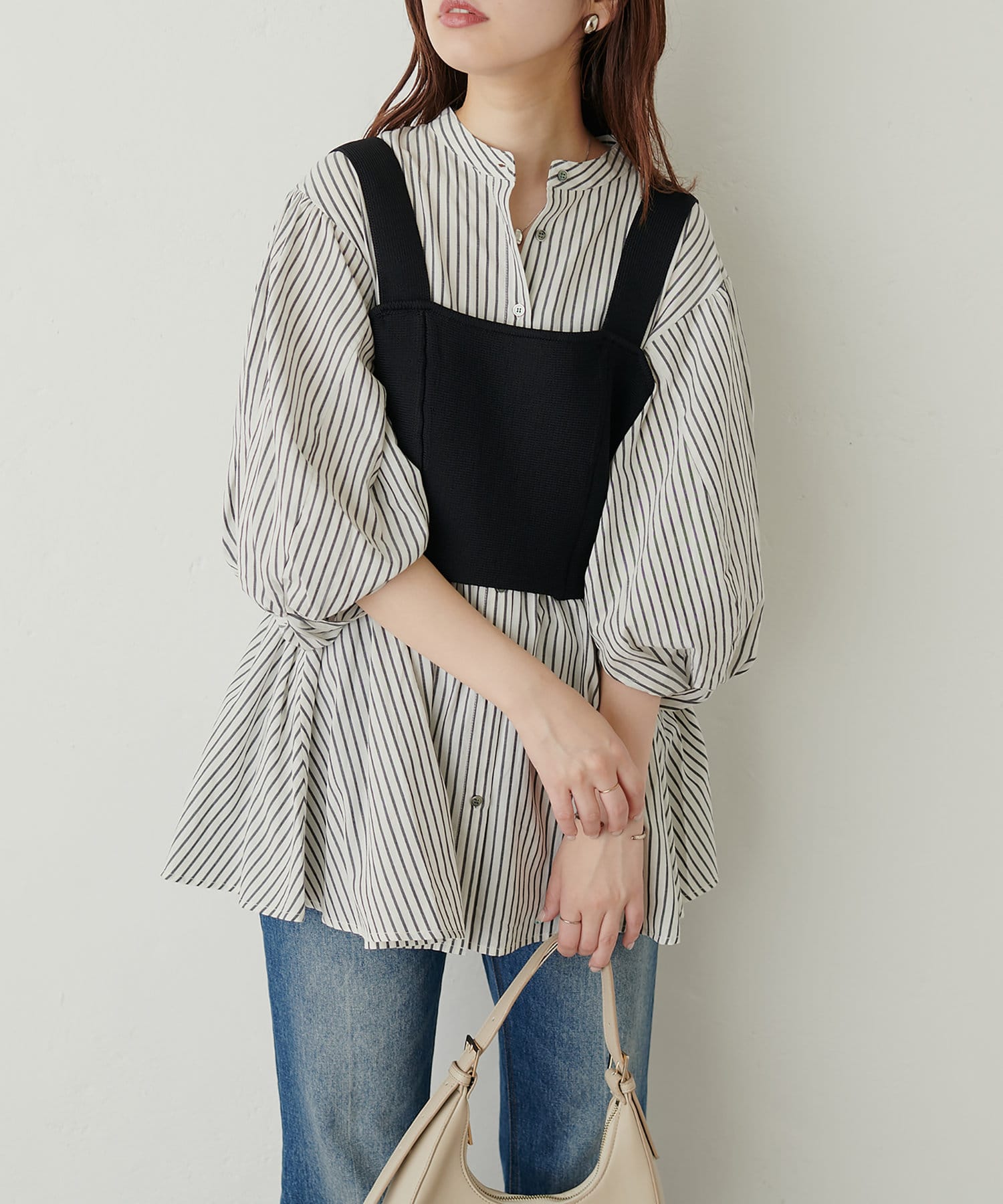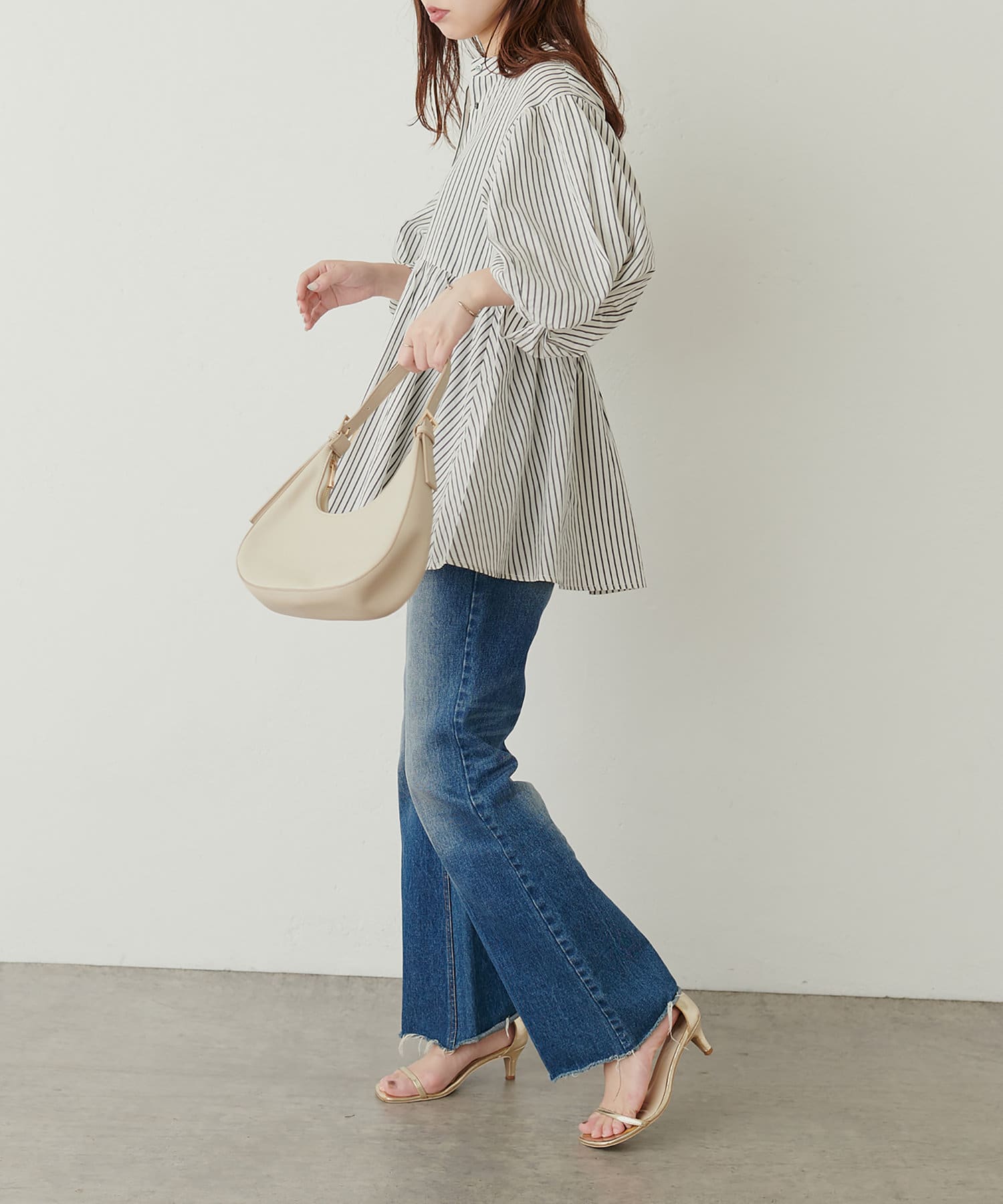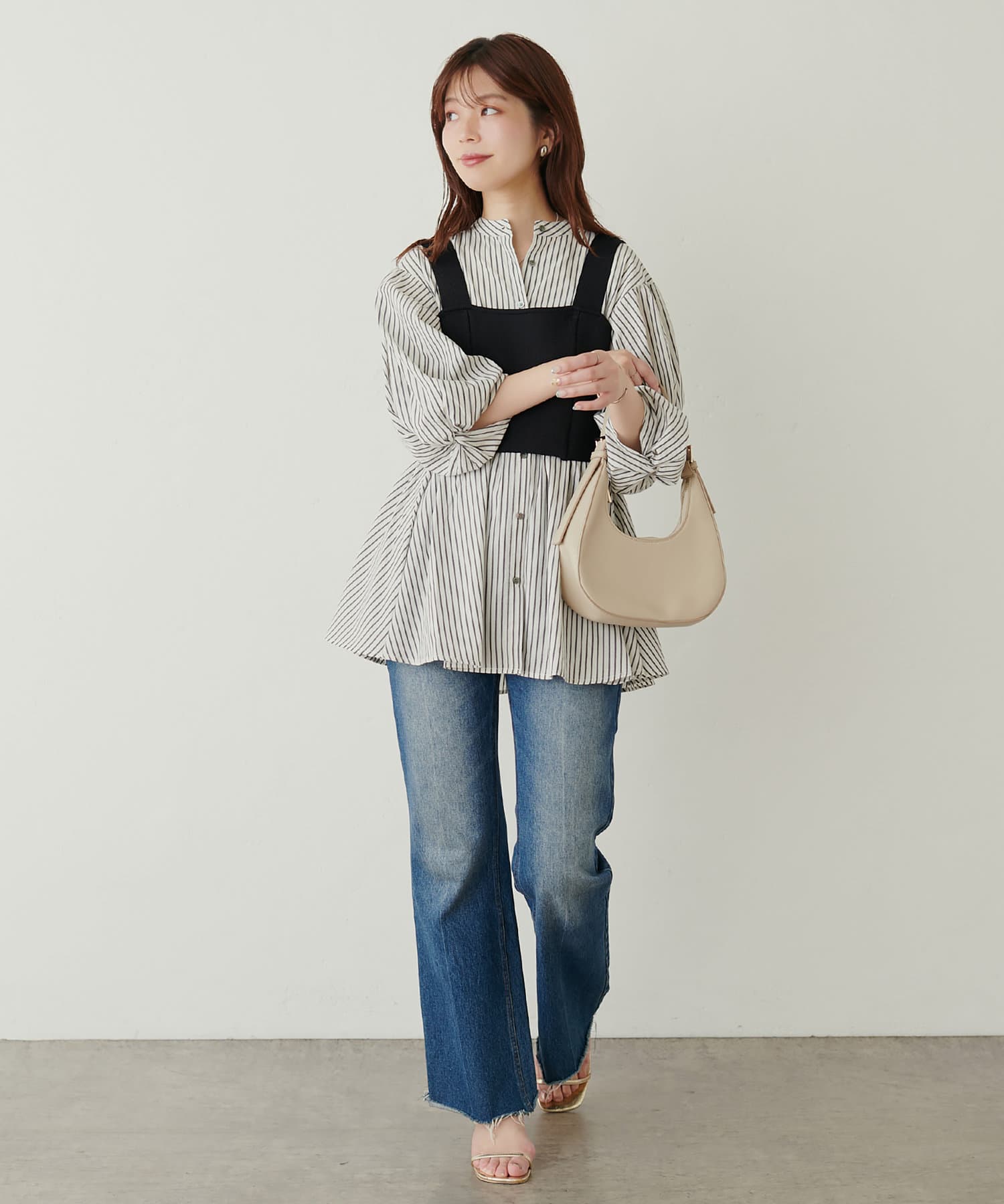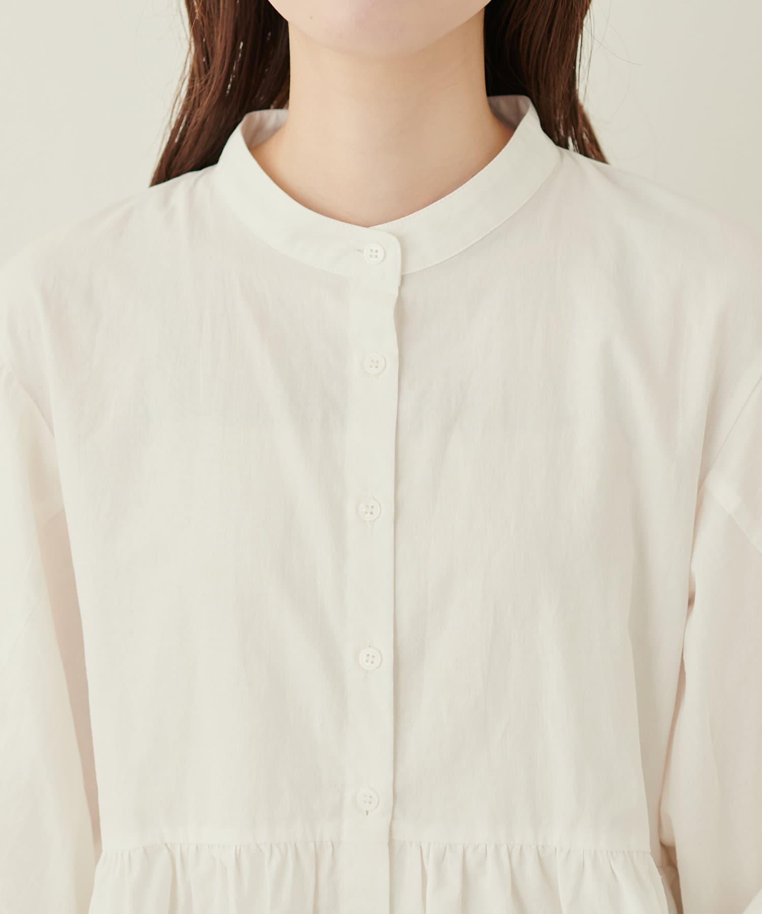 パリッとしたボリューム感のあるシルエットのブラウスなので