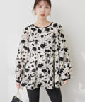 オケージョン対応可能 / シアーフロッキープリントペプラムブラウス