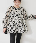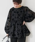 • natural couture(ナチュラルクチュール) オケージョン対応可能 / シアーフロッキープリントペプラムブラウス