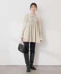 ふんわり広がるフレアスリーブで手元を華やかに演出。