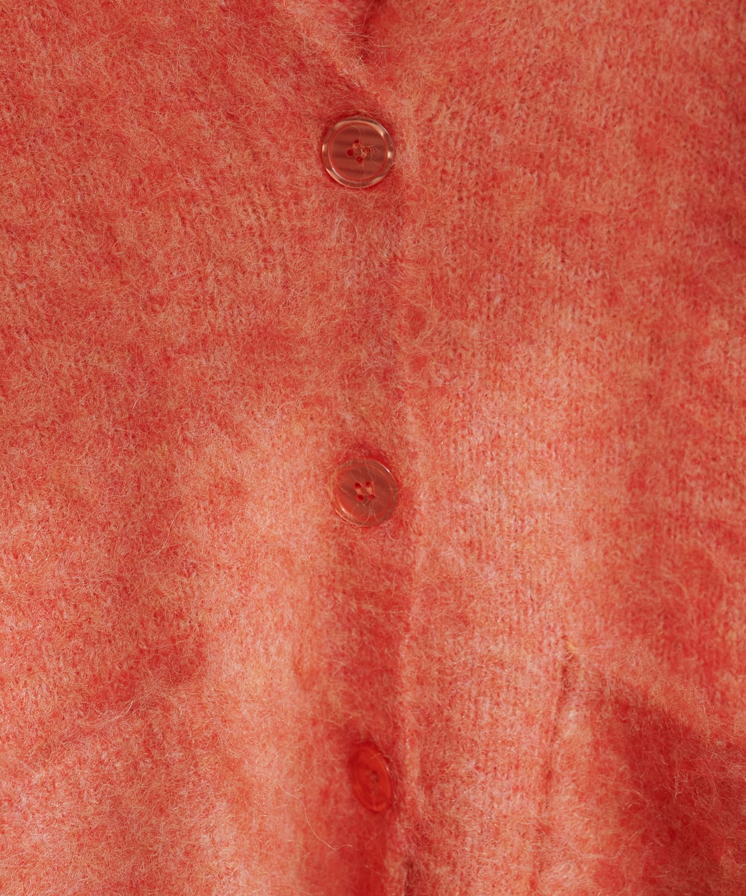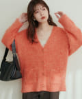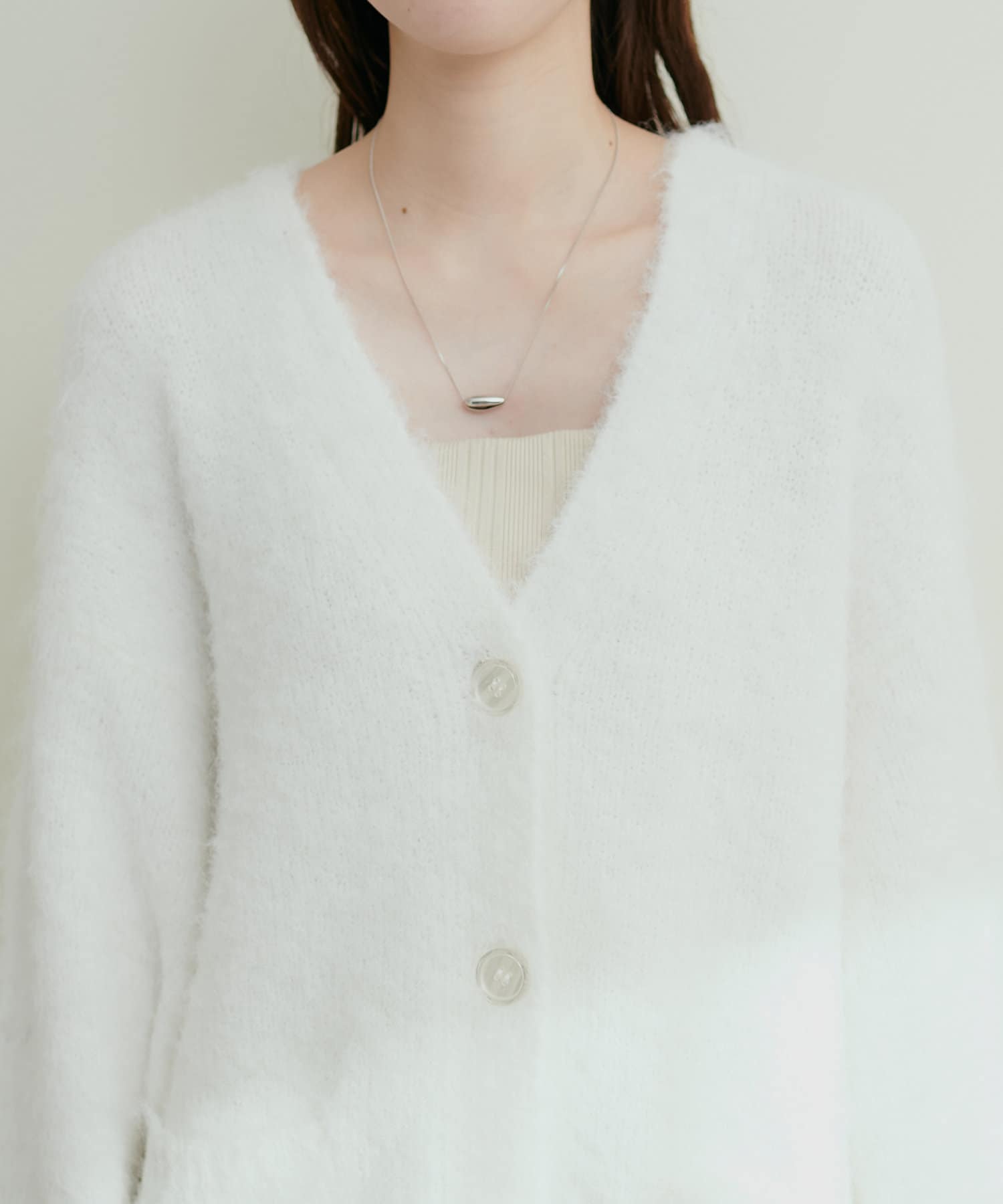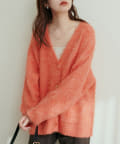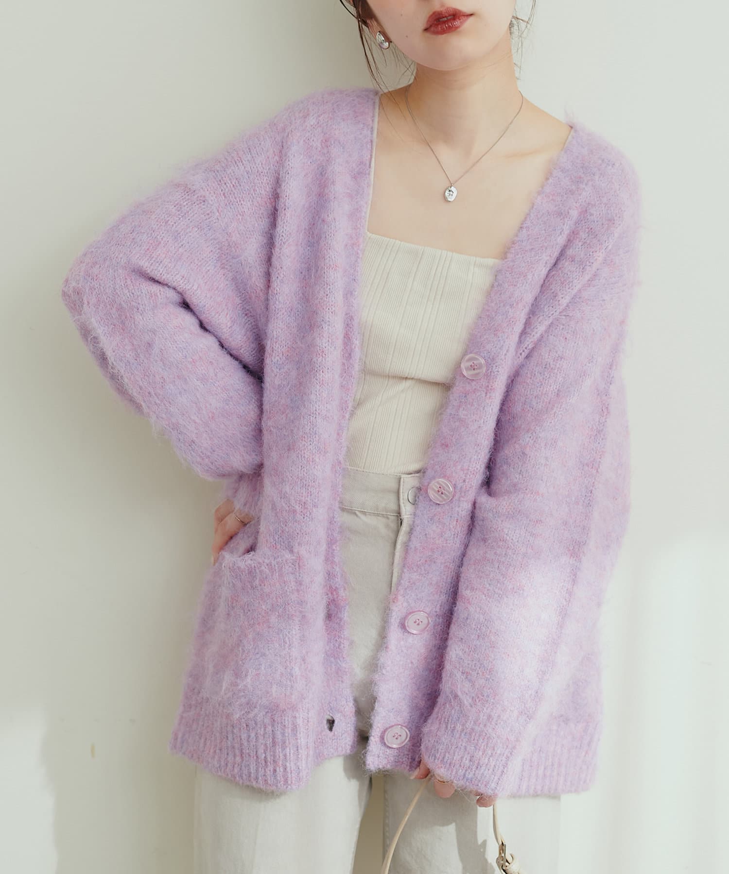 シャギー加工を入れたへアリーな表面感が特徴のカラーVネックカーディガン。