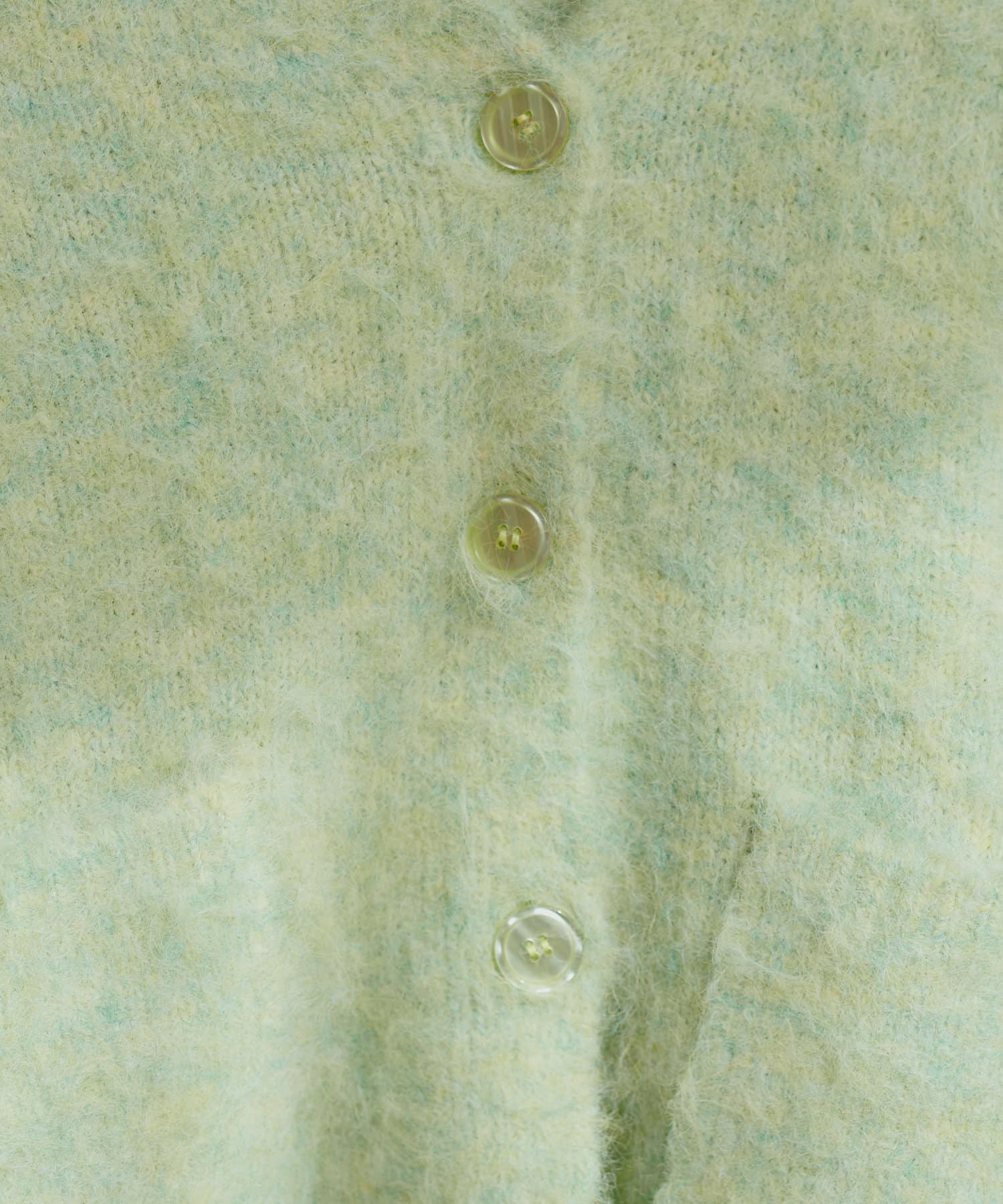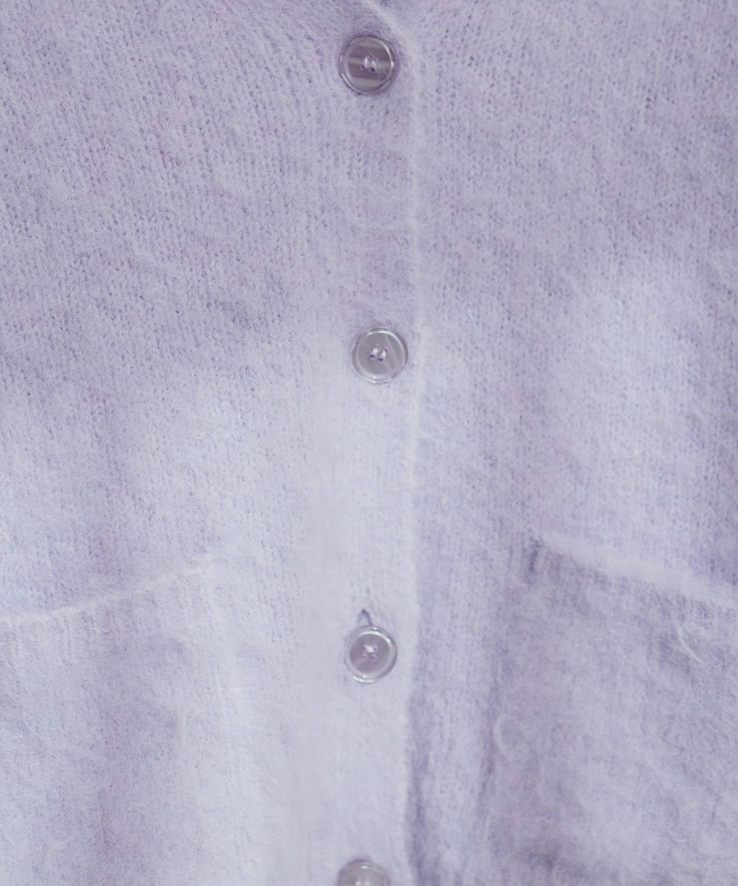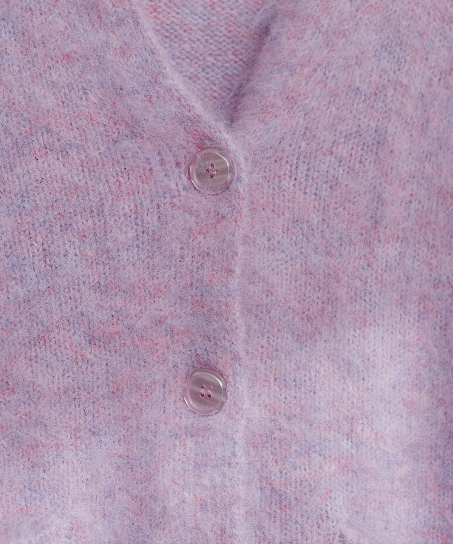 シャギー加工を入れたへアリーな表面感が特徴のカラーVネックカーディガン。