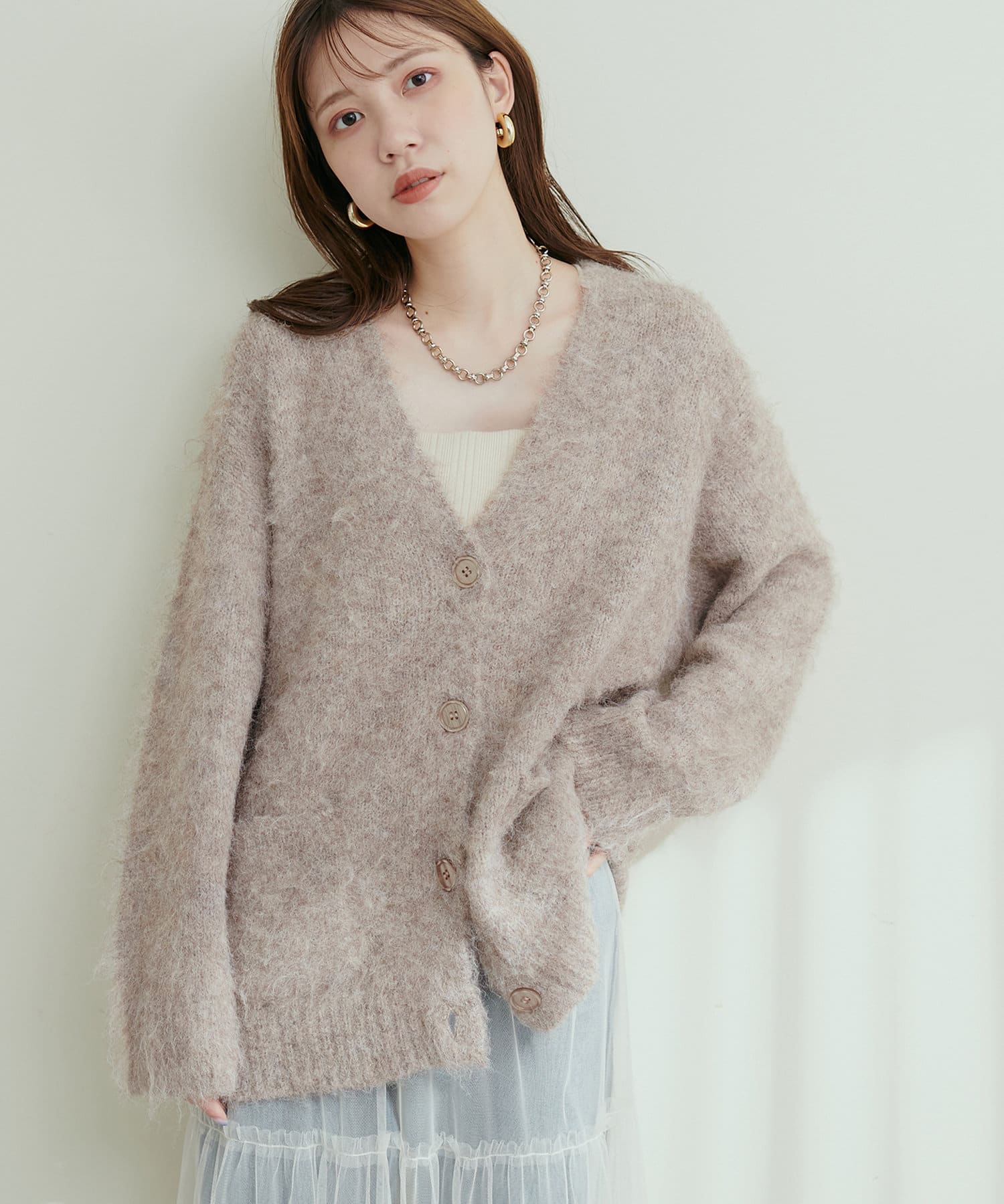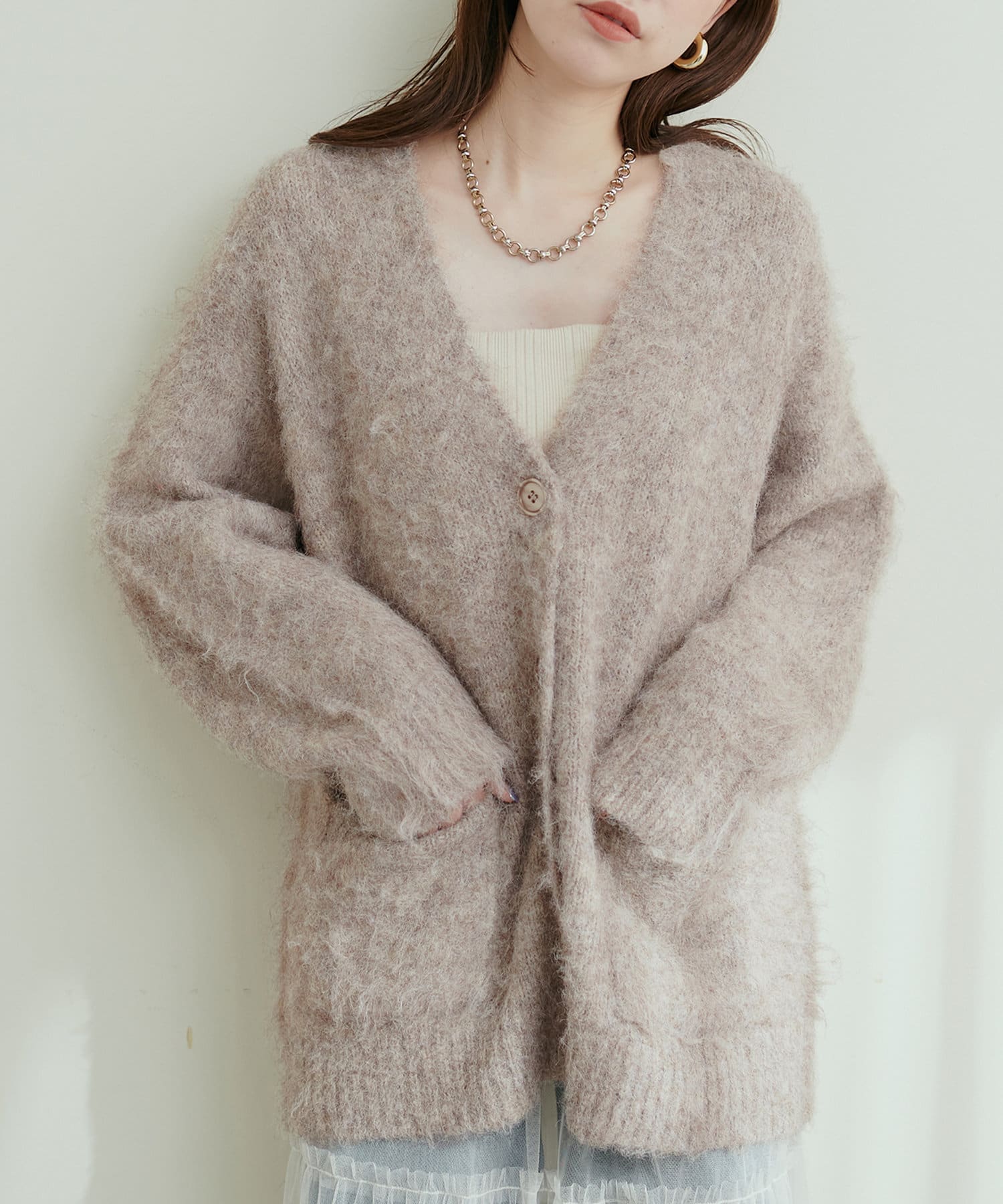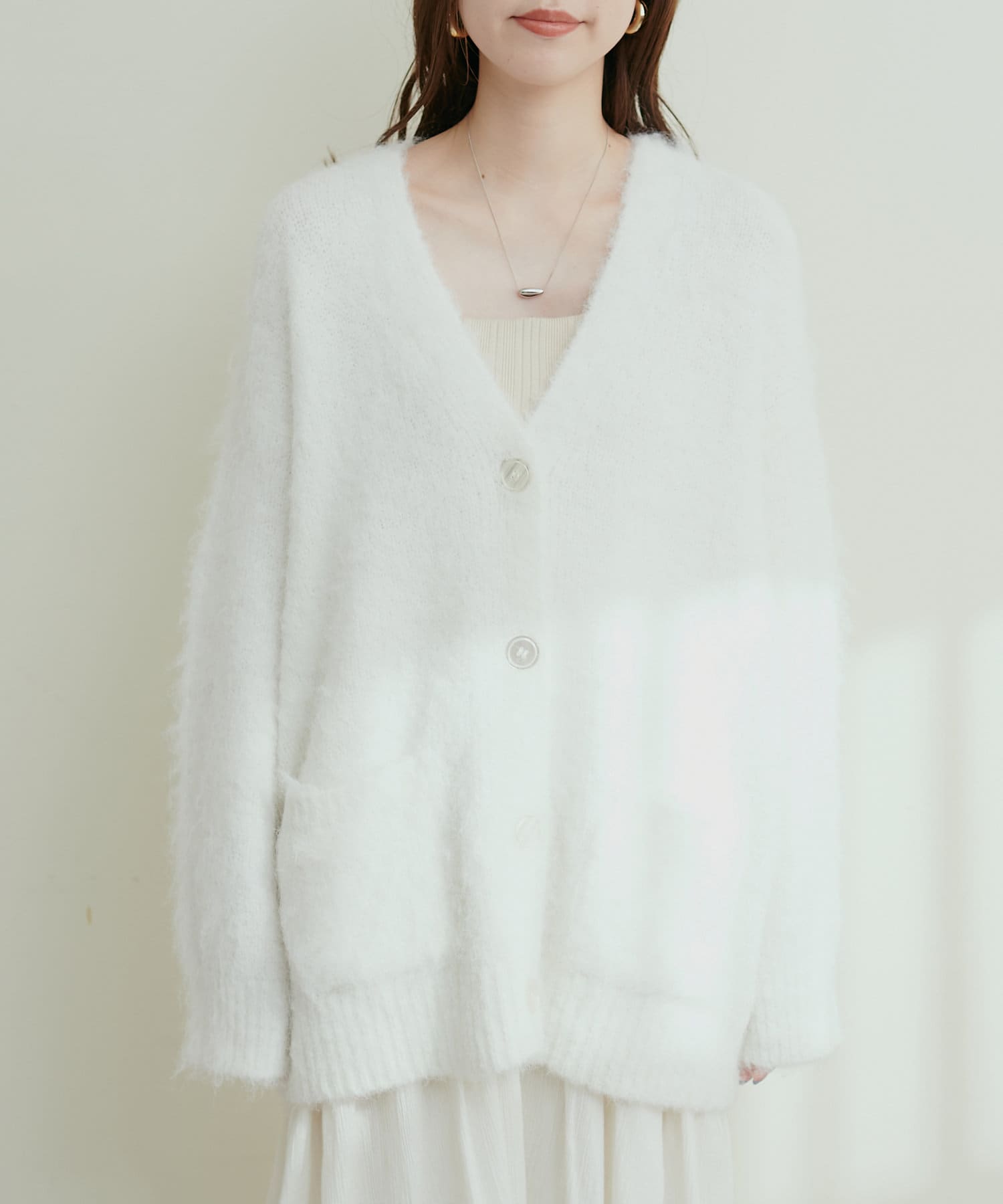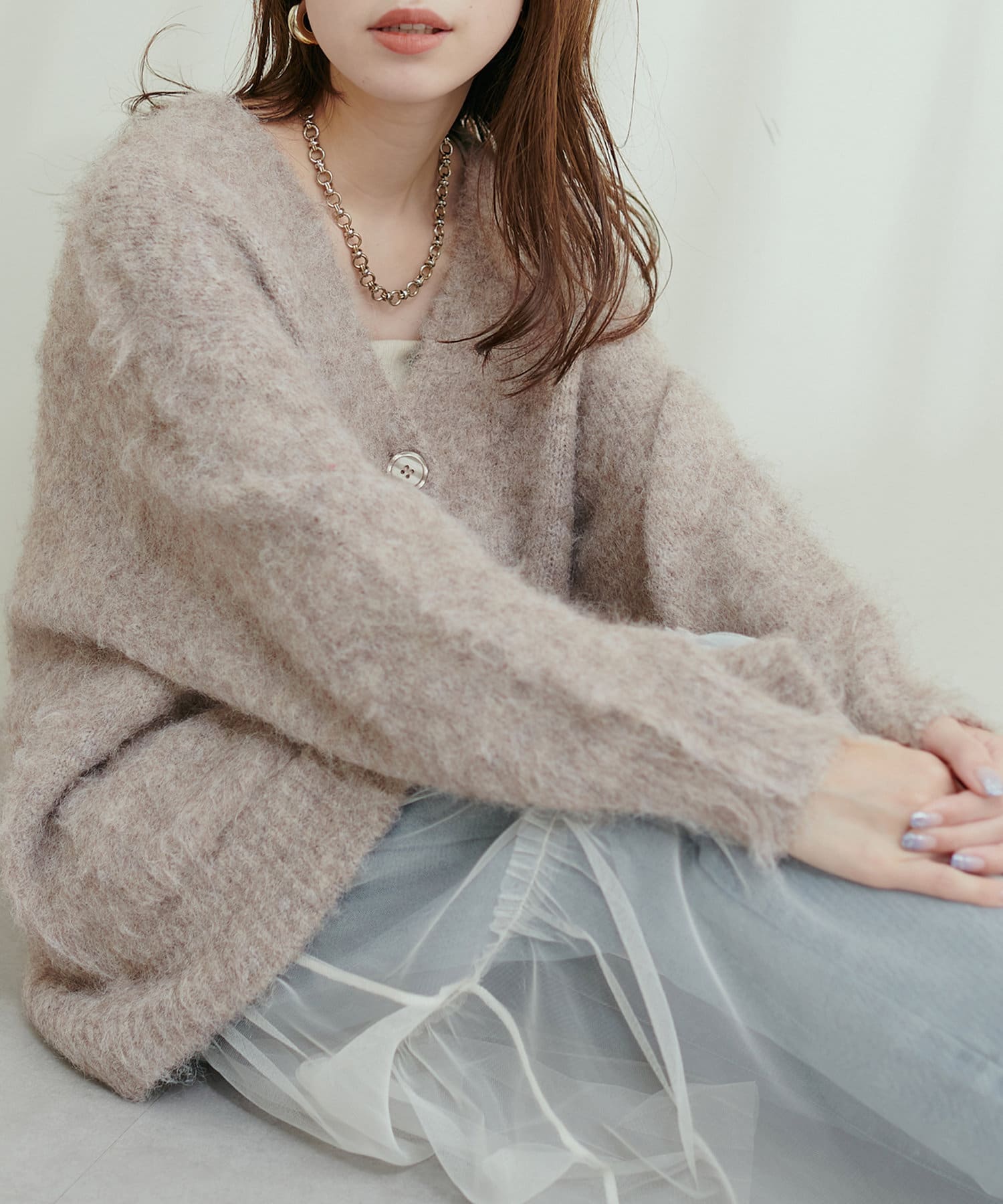 ふんわりと毛足のあるシャギーニットがシーズンムードを盛り上げるカーディガン