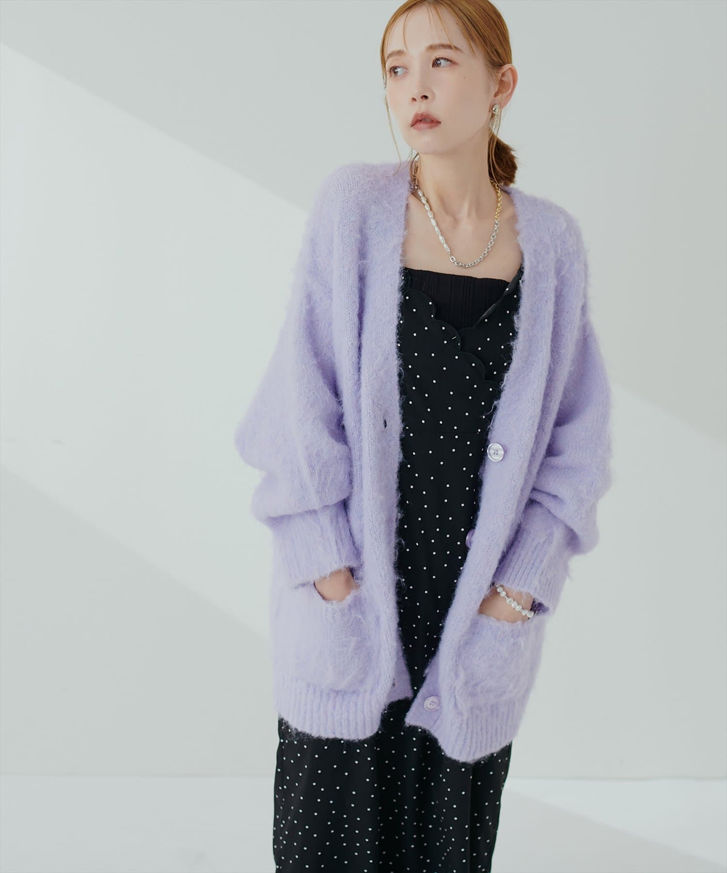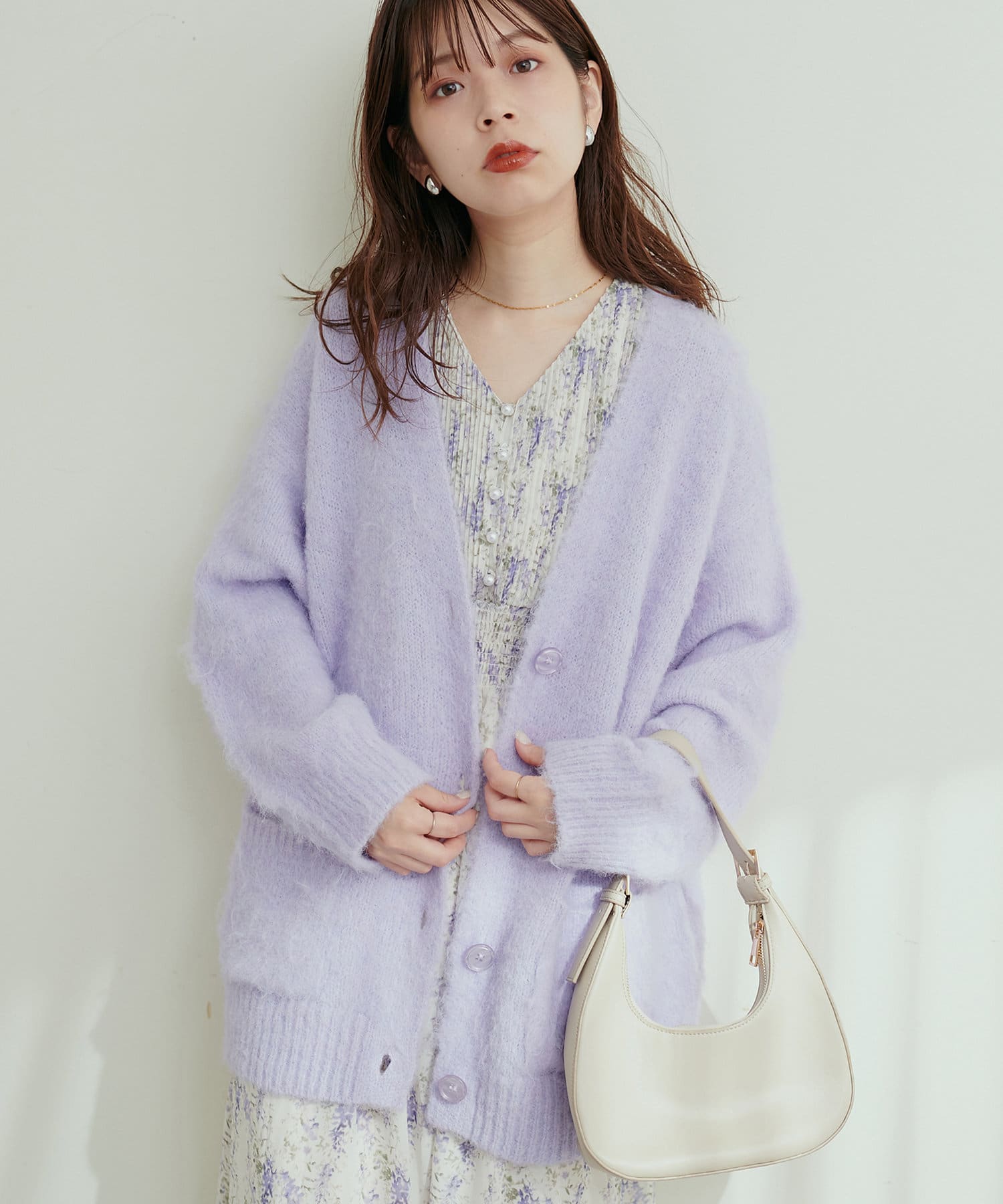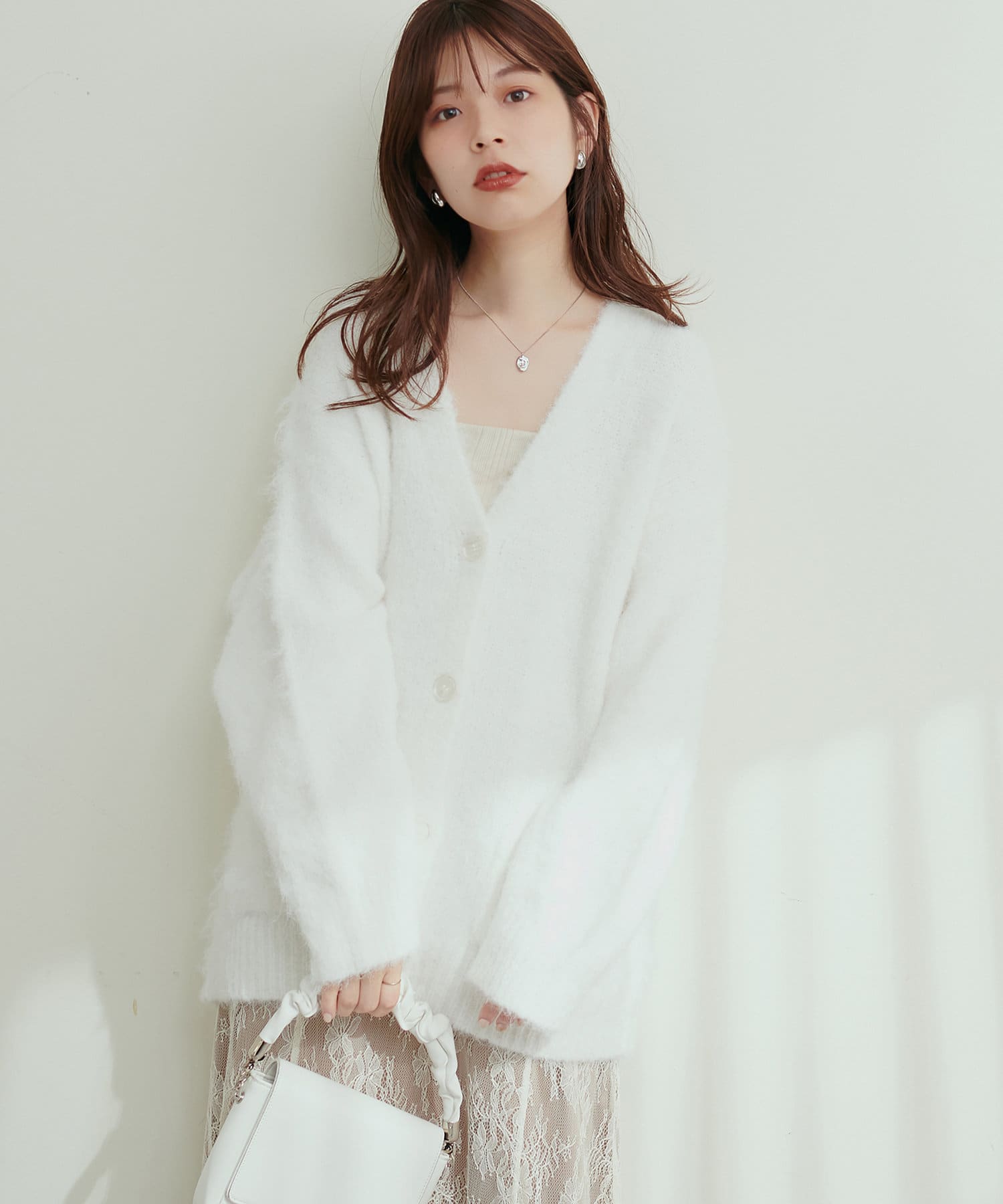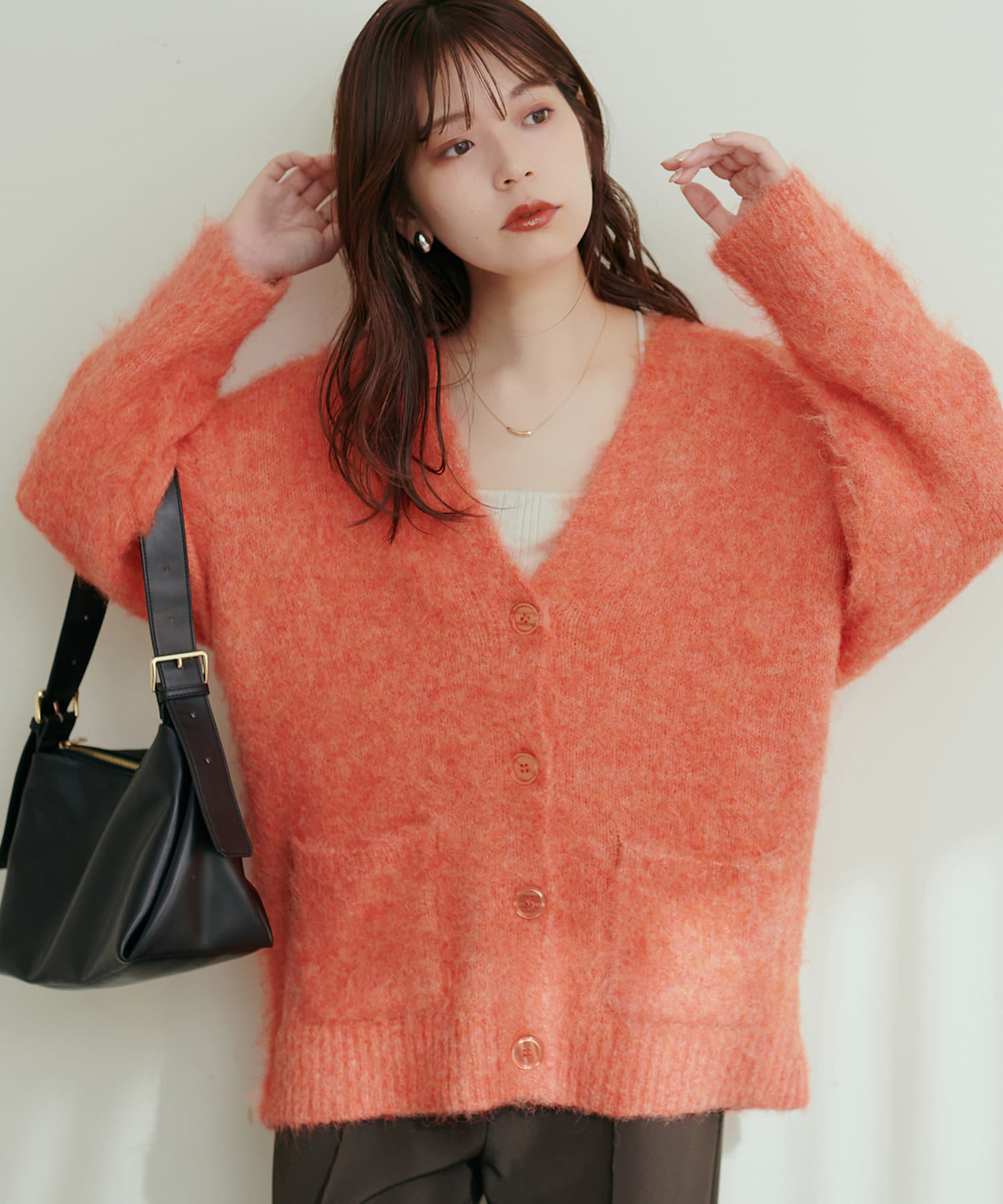 ふんわりと毛足のあるシャギーニットがシーズンムードを盛り上げるカーディガン