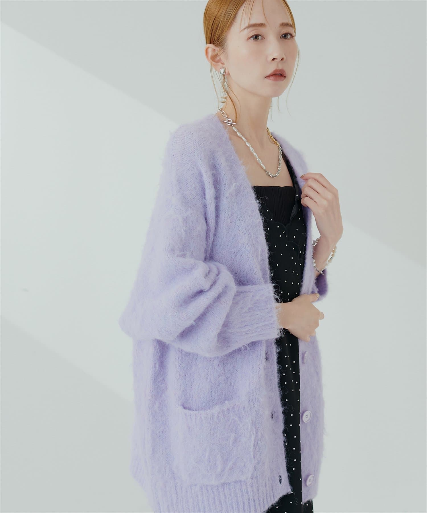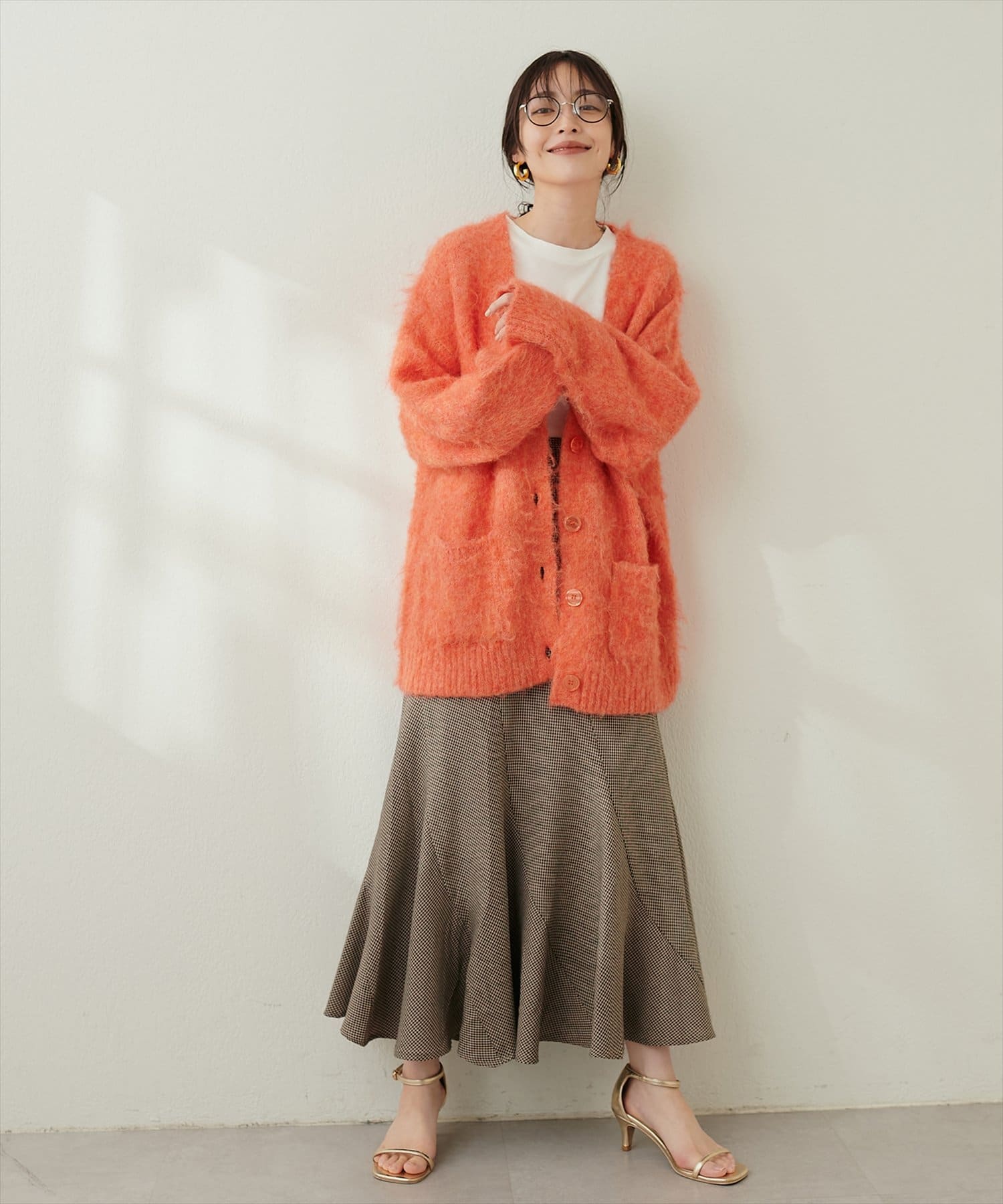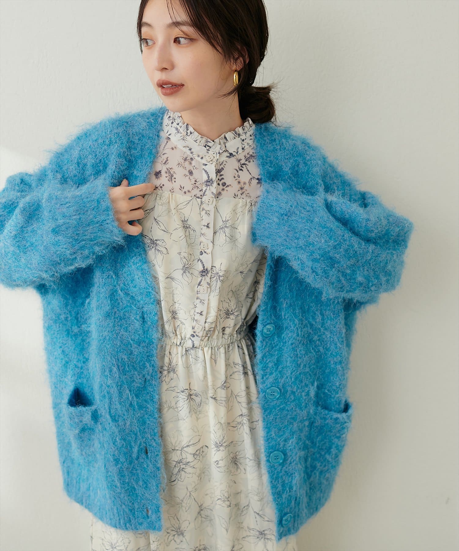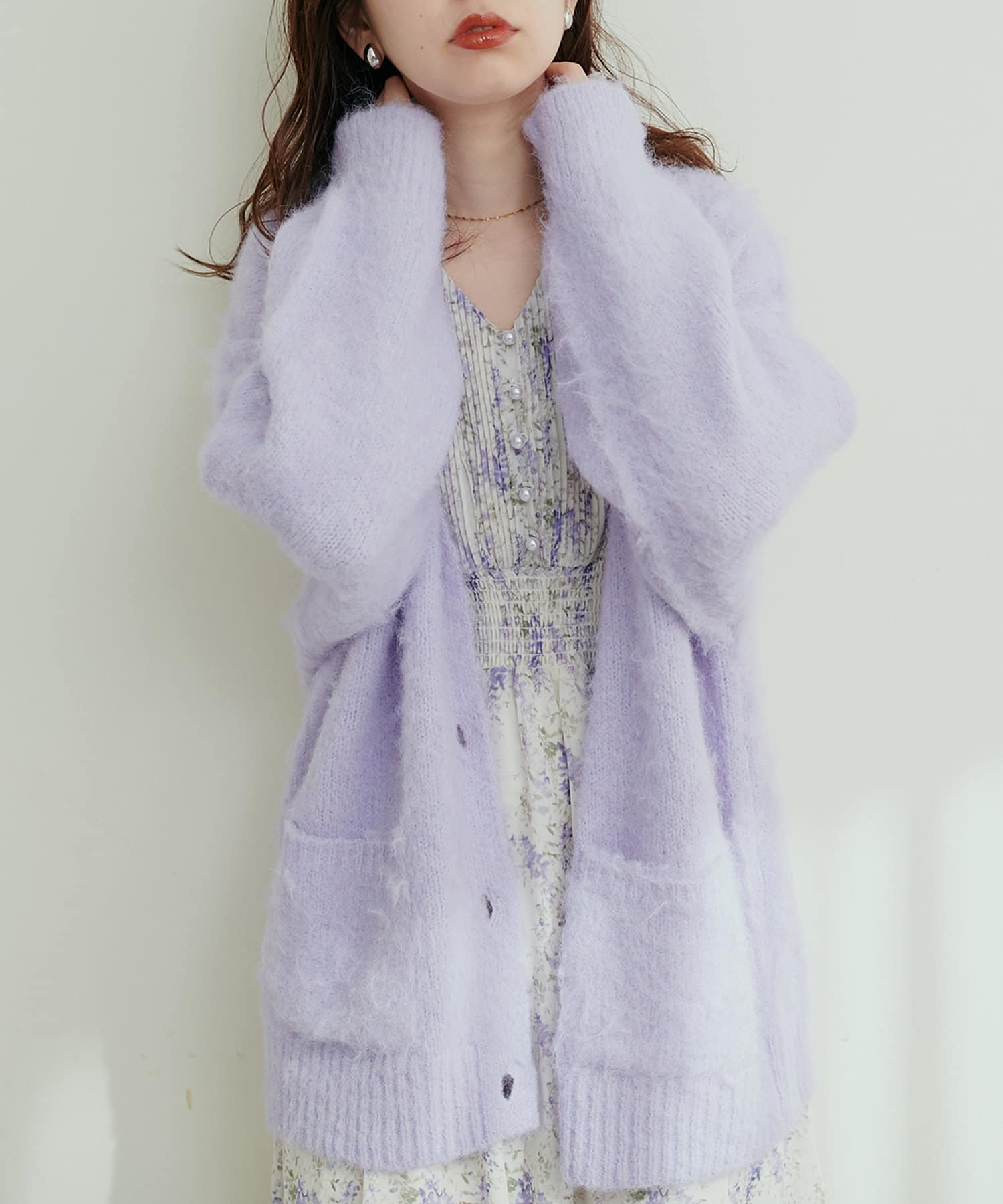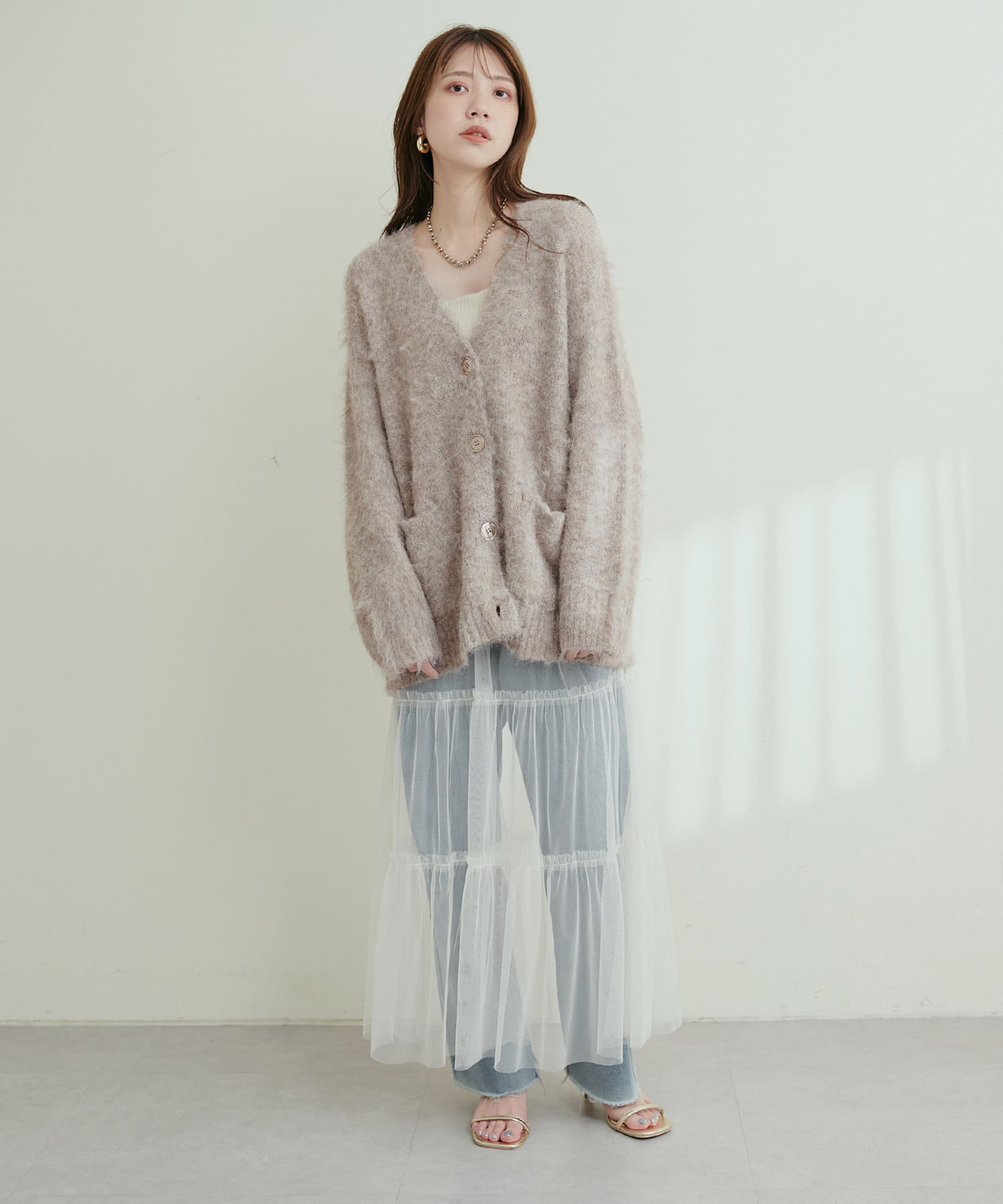 ふんわりと毛足のあるシャギーニットがシーズンムードを盛り上げるカーディガン