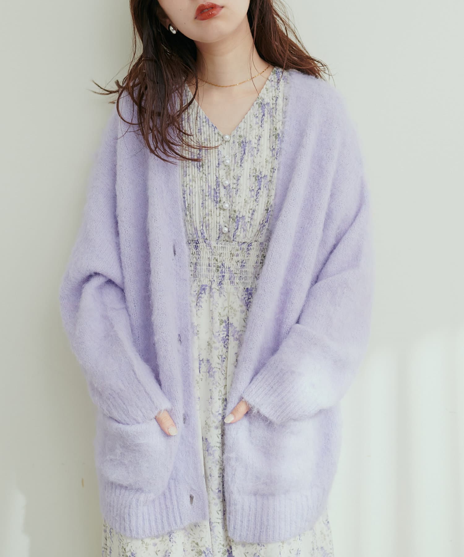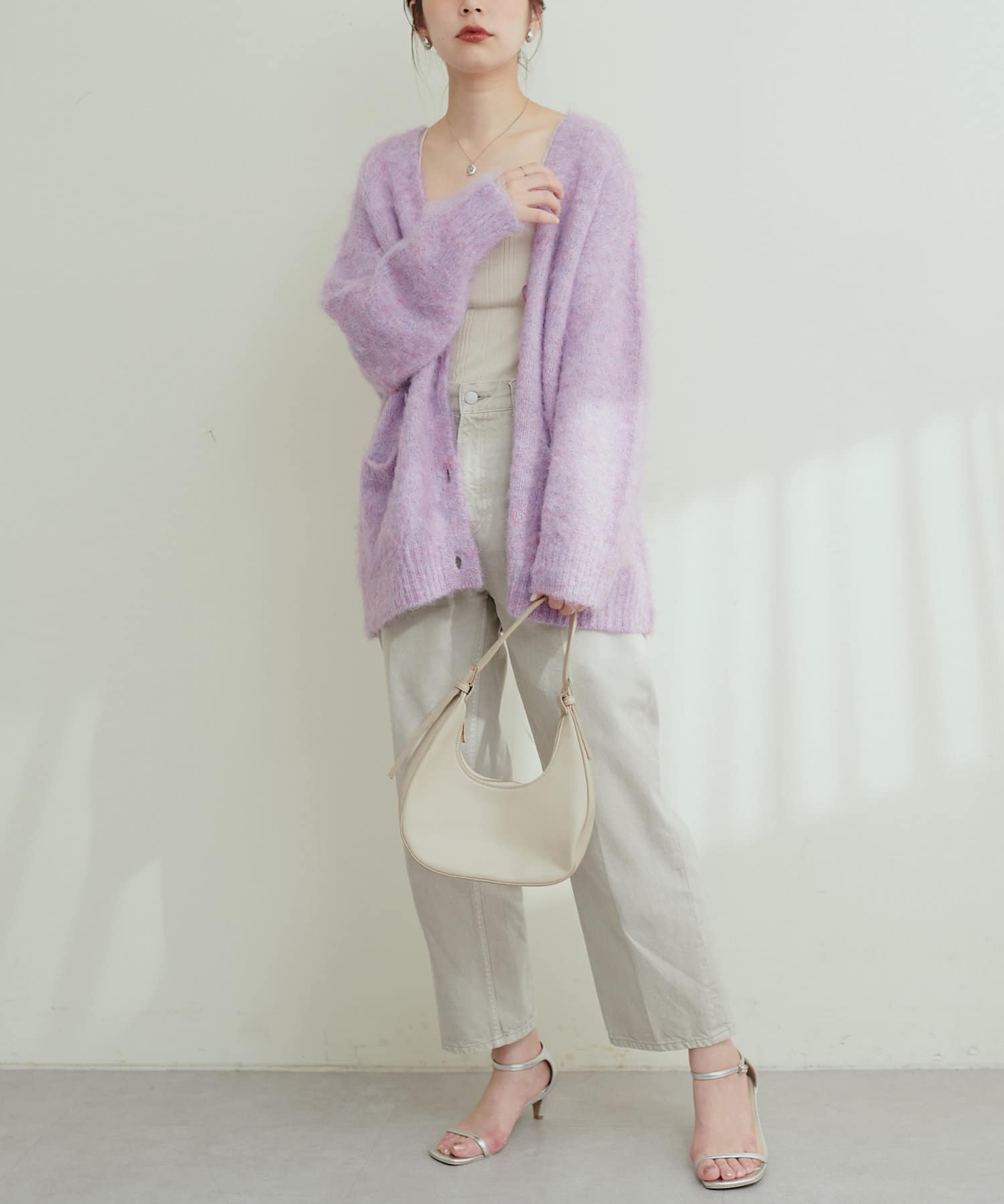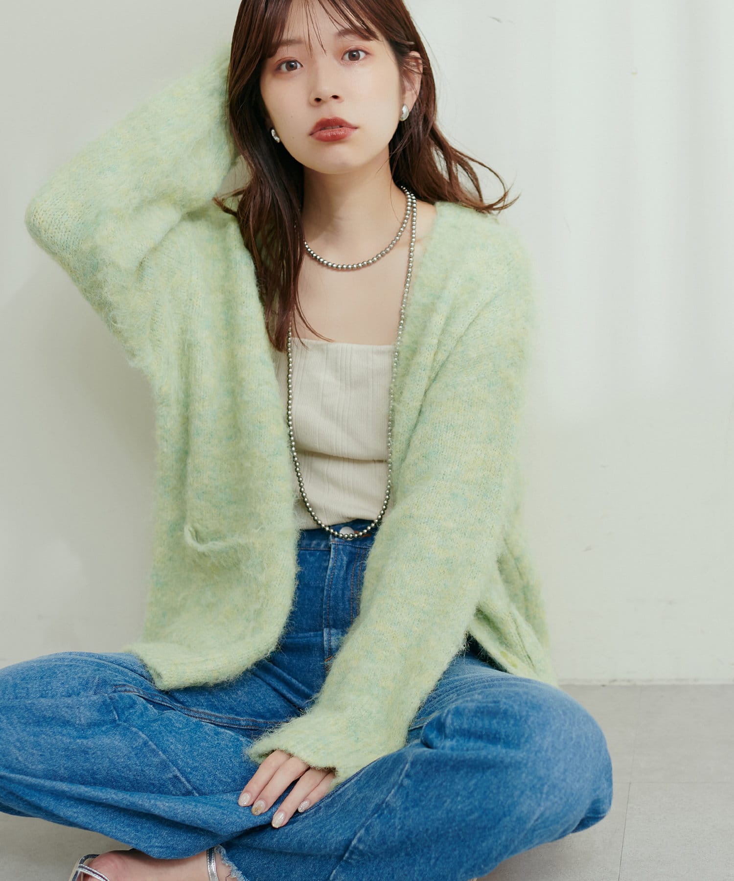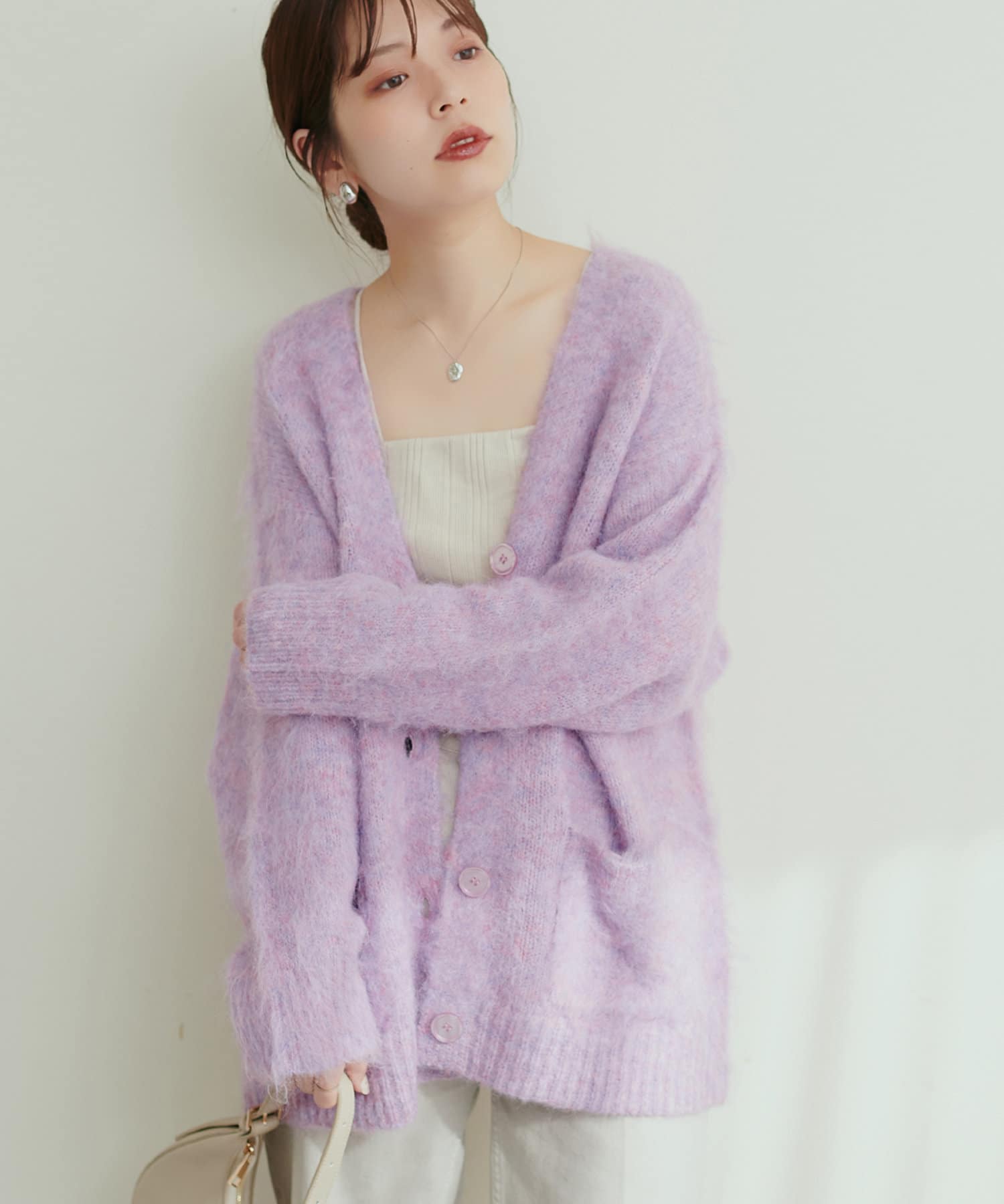 ふんわりと毛足のあるシャギーニットがシーズンムードを盛り上げるカーディガン