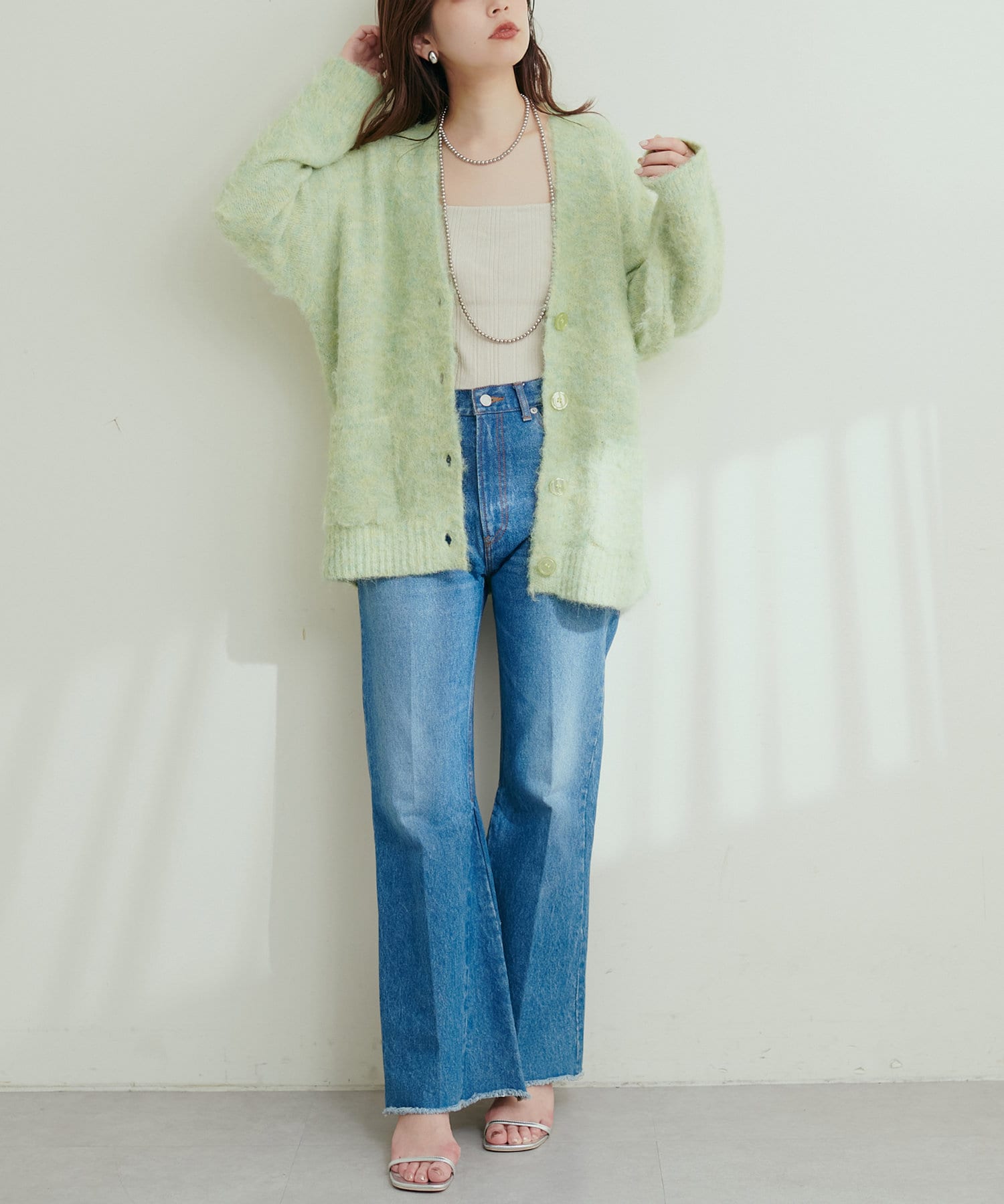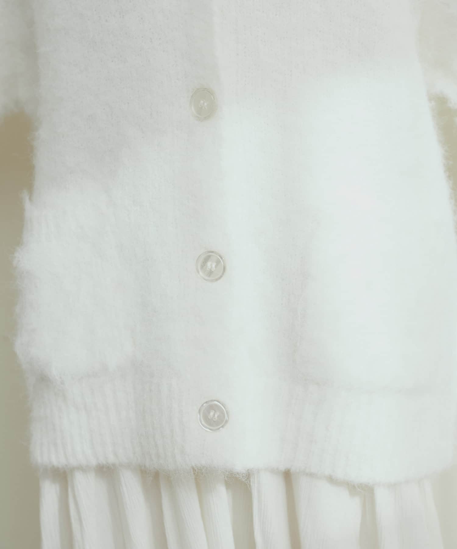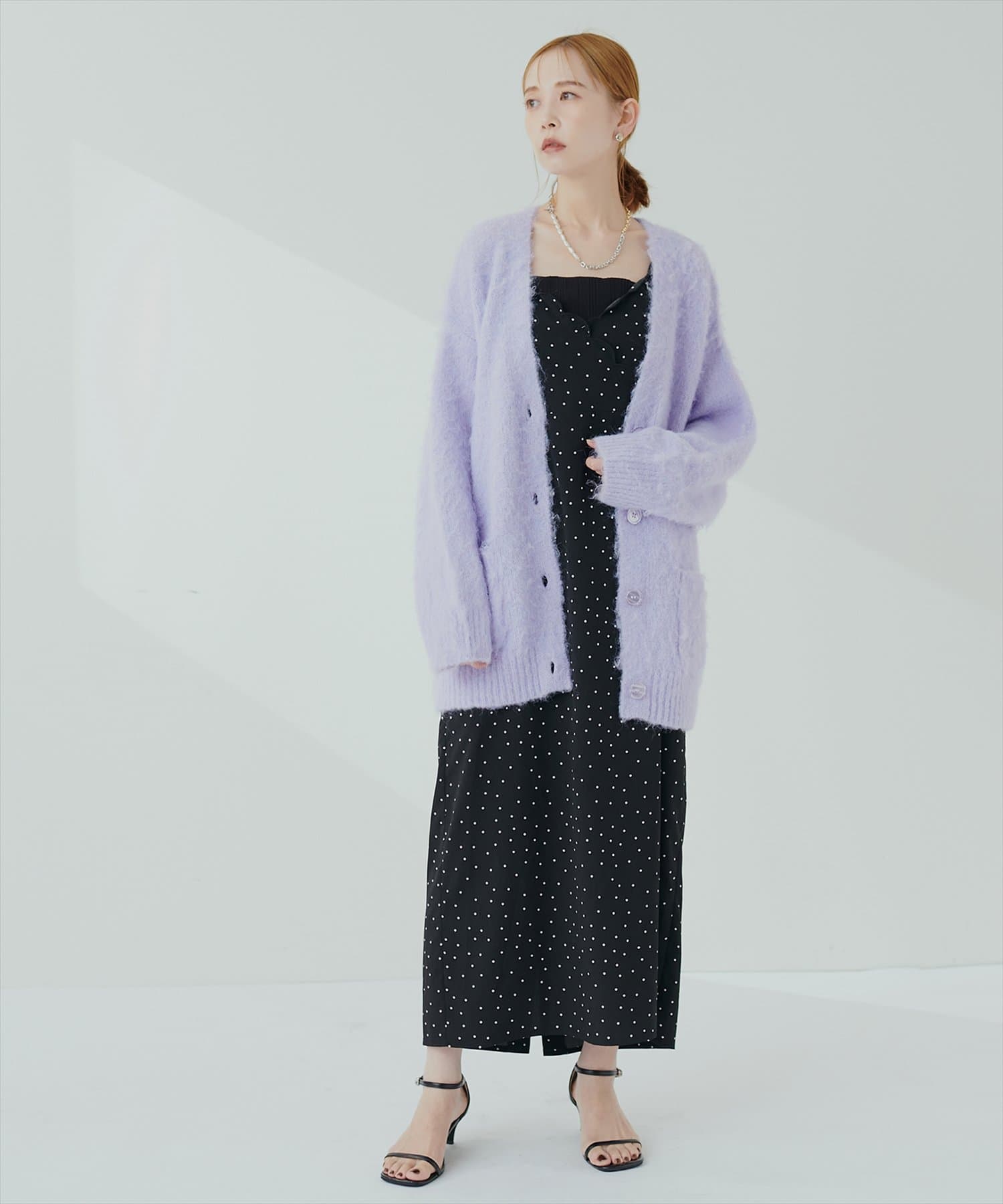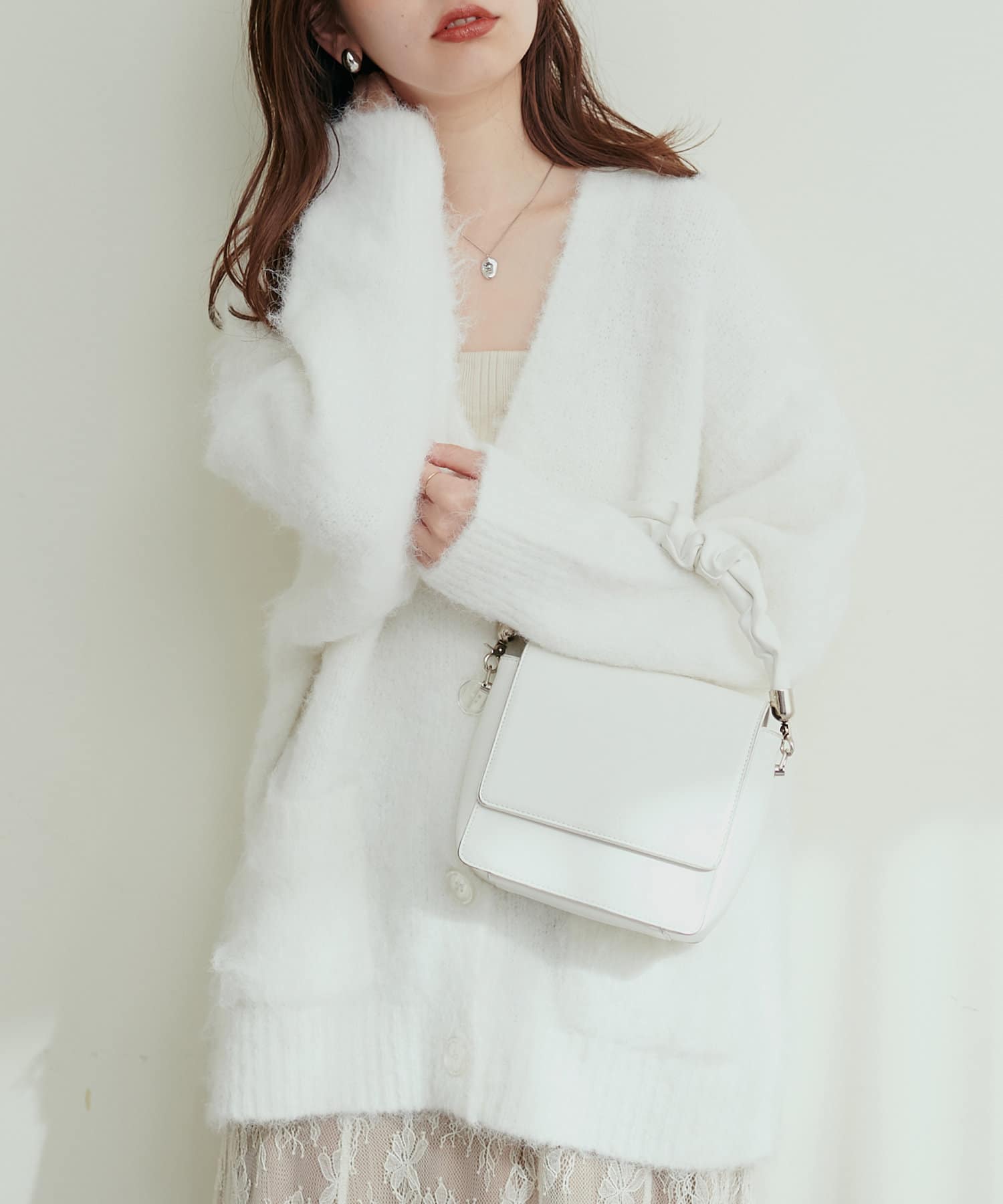 ふんわりと毛足のあるシャギーニットがシーズンムードを盛り上げるカーディガン