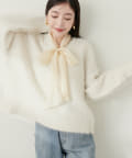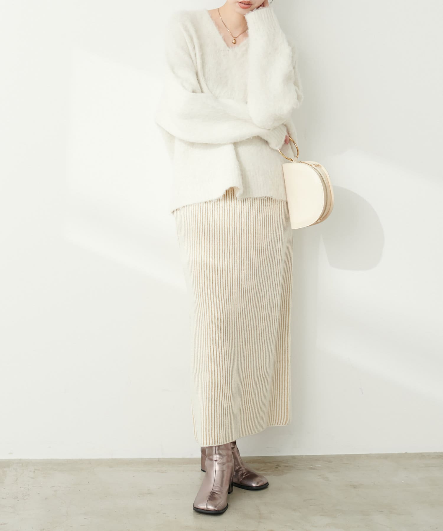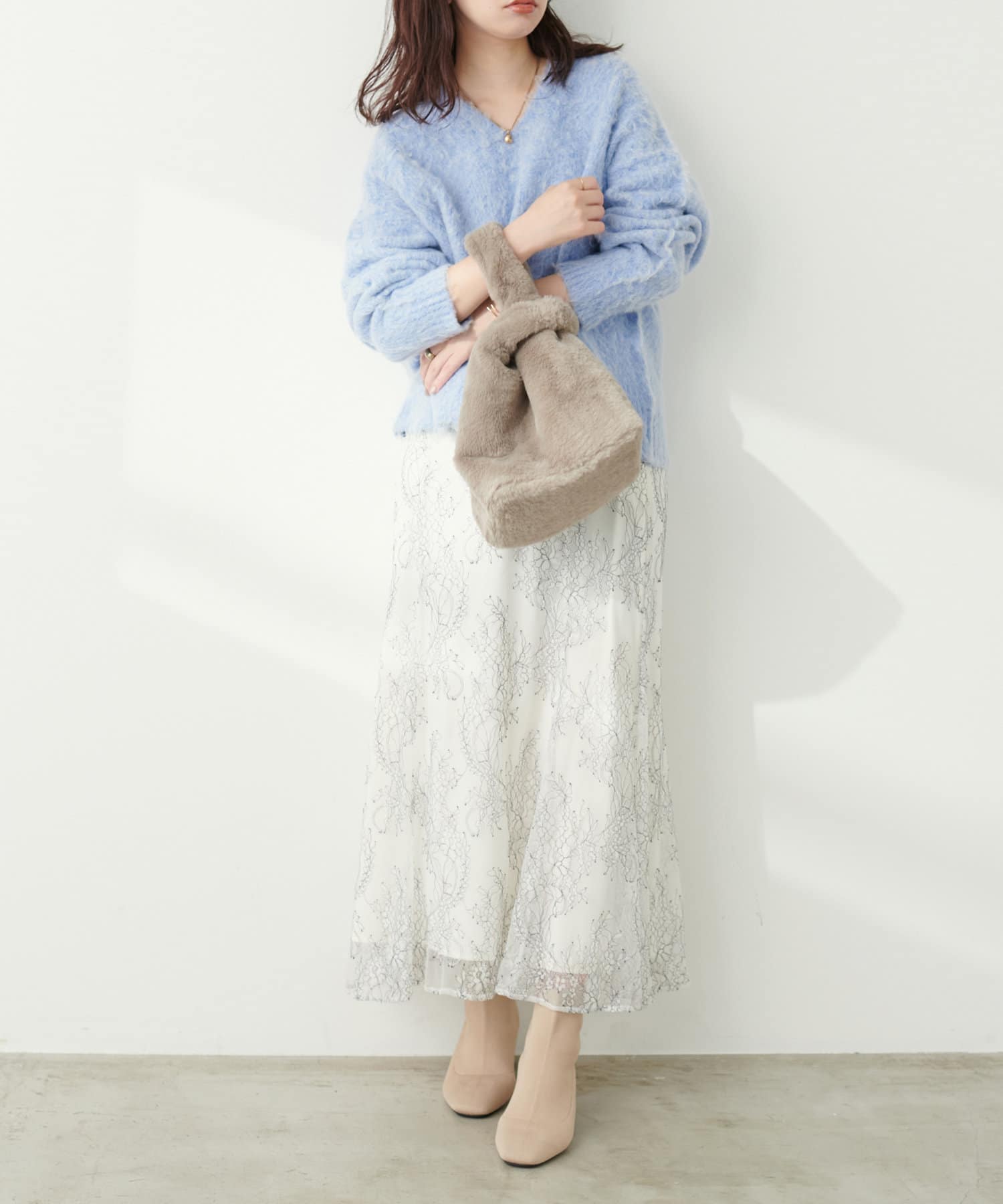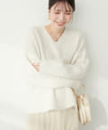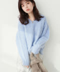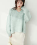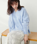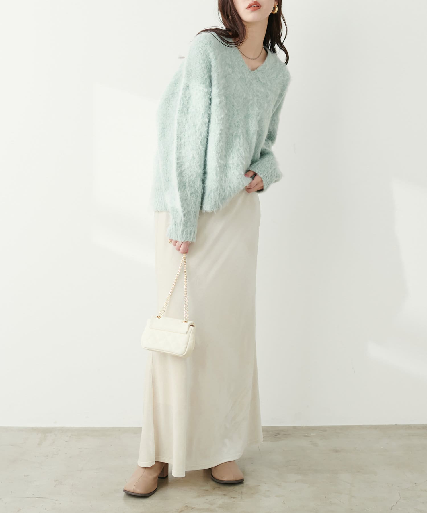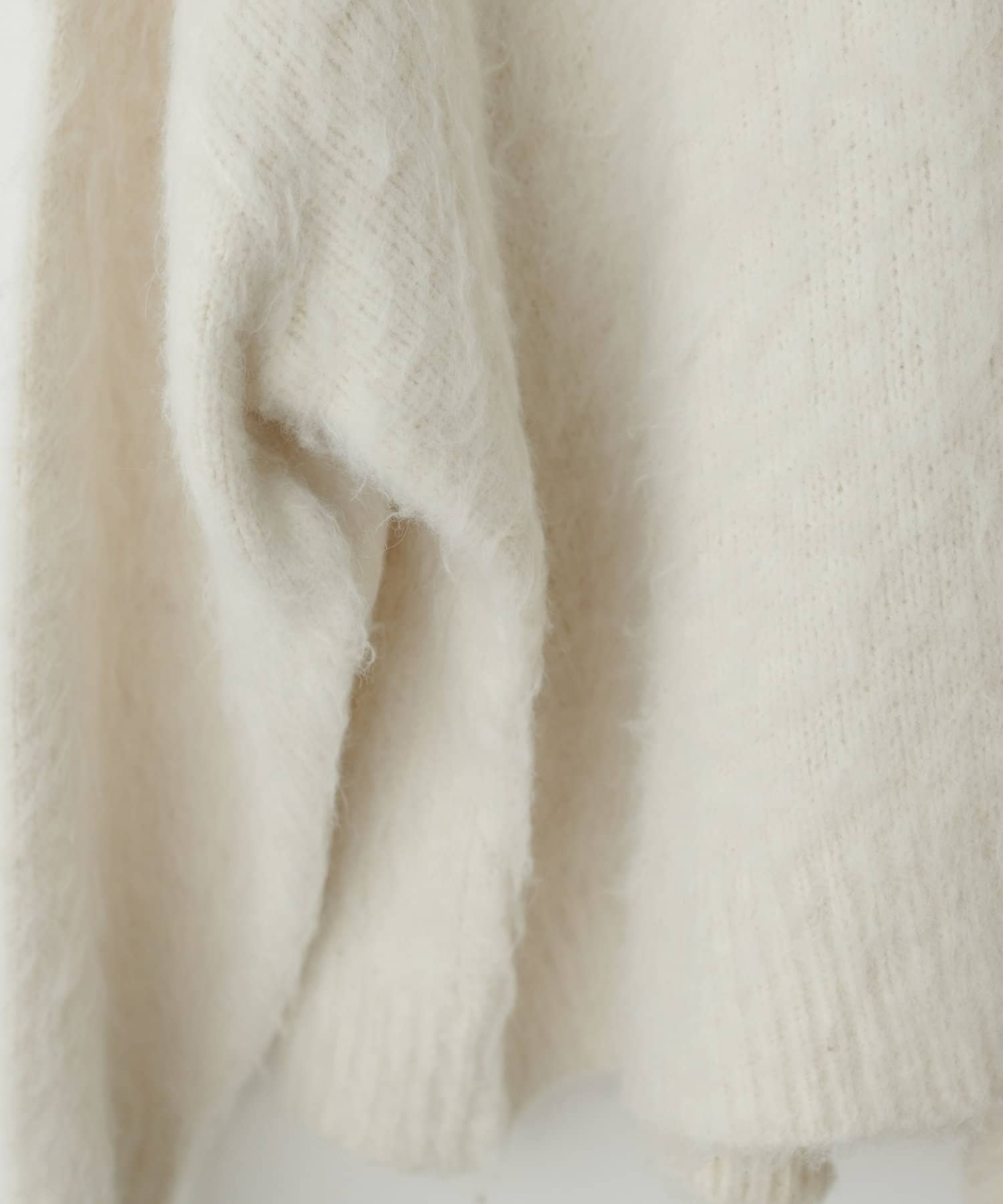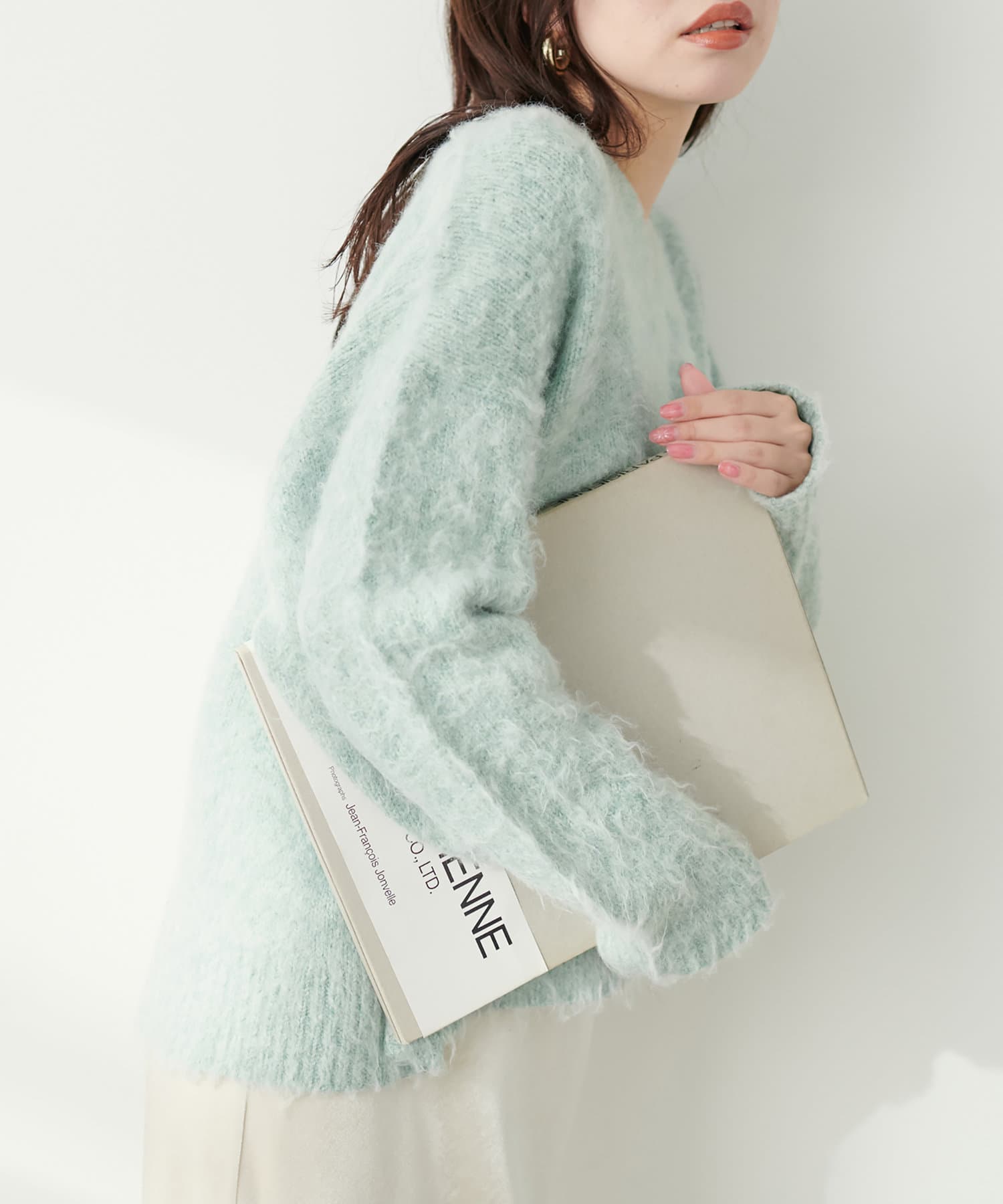 長い毛足とふわふわの肌触りが魅力のVネックニット
