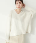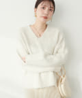 程良いラインのVネックがお顔周りをすっきりとした印象に。