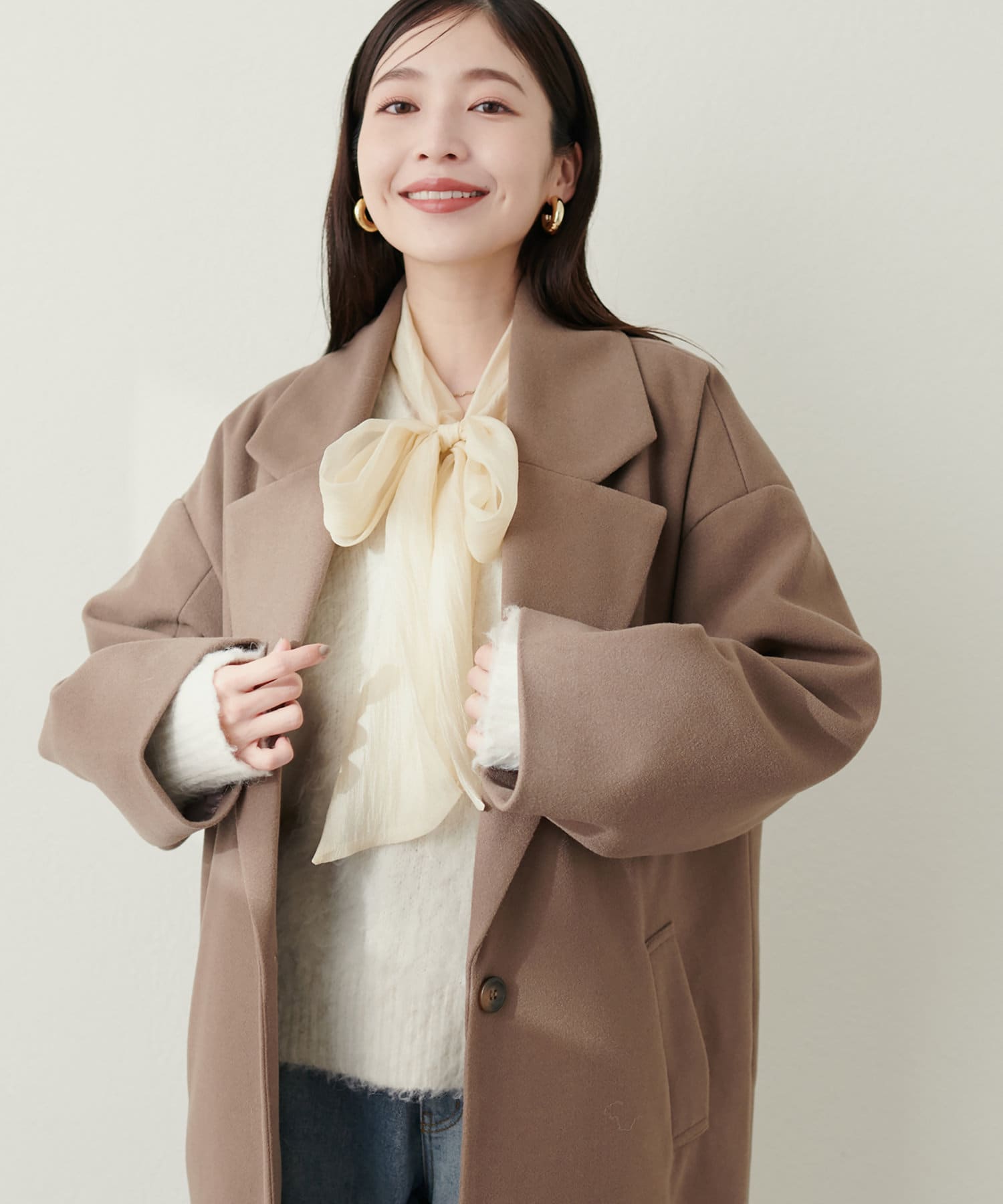 長めに設定した袖丈が袖のボリューム感やぽてっとした形を作り、シンプルな中にもこなれ感をプラスしてくれます。