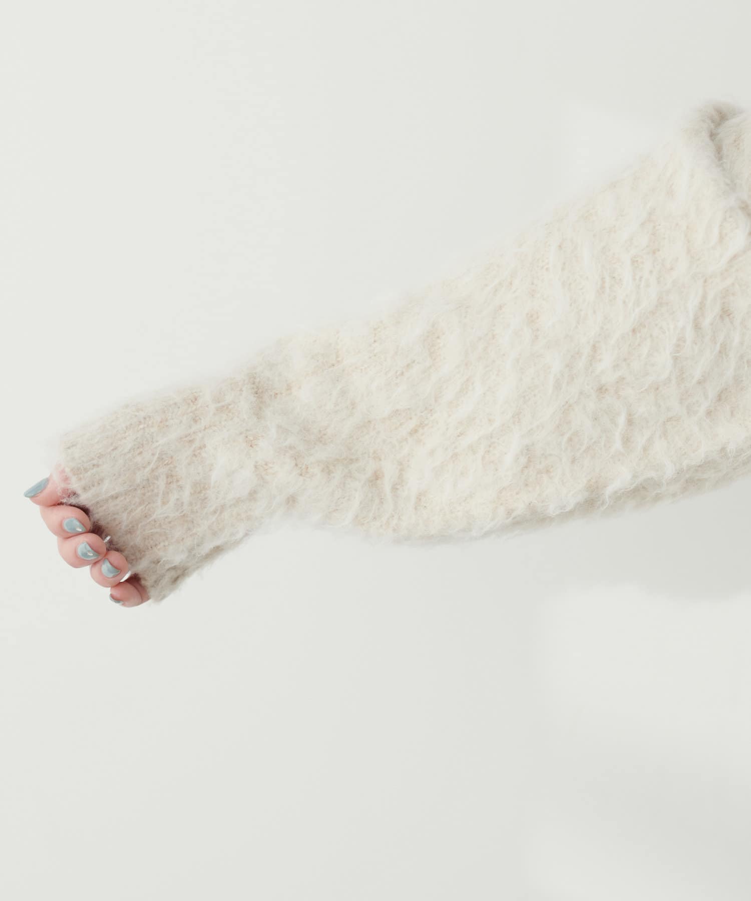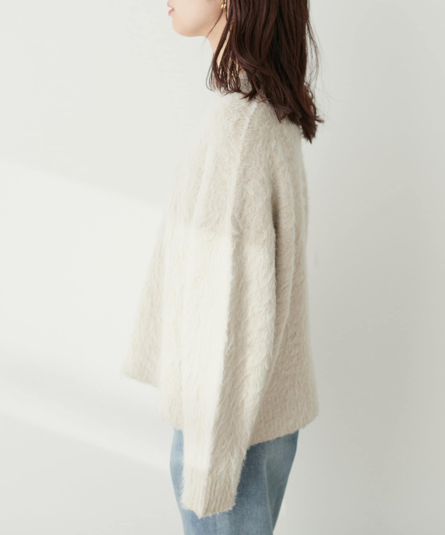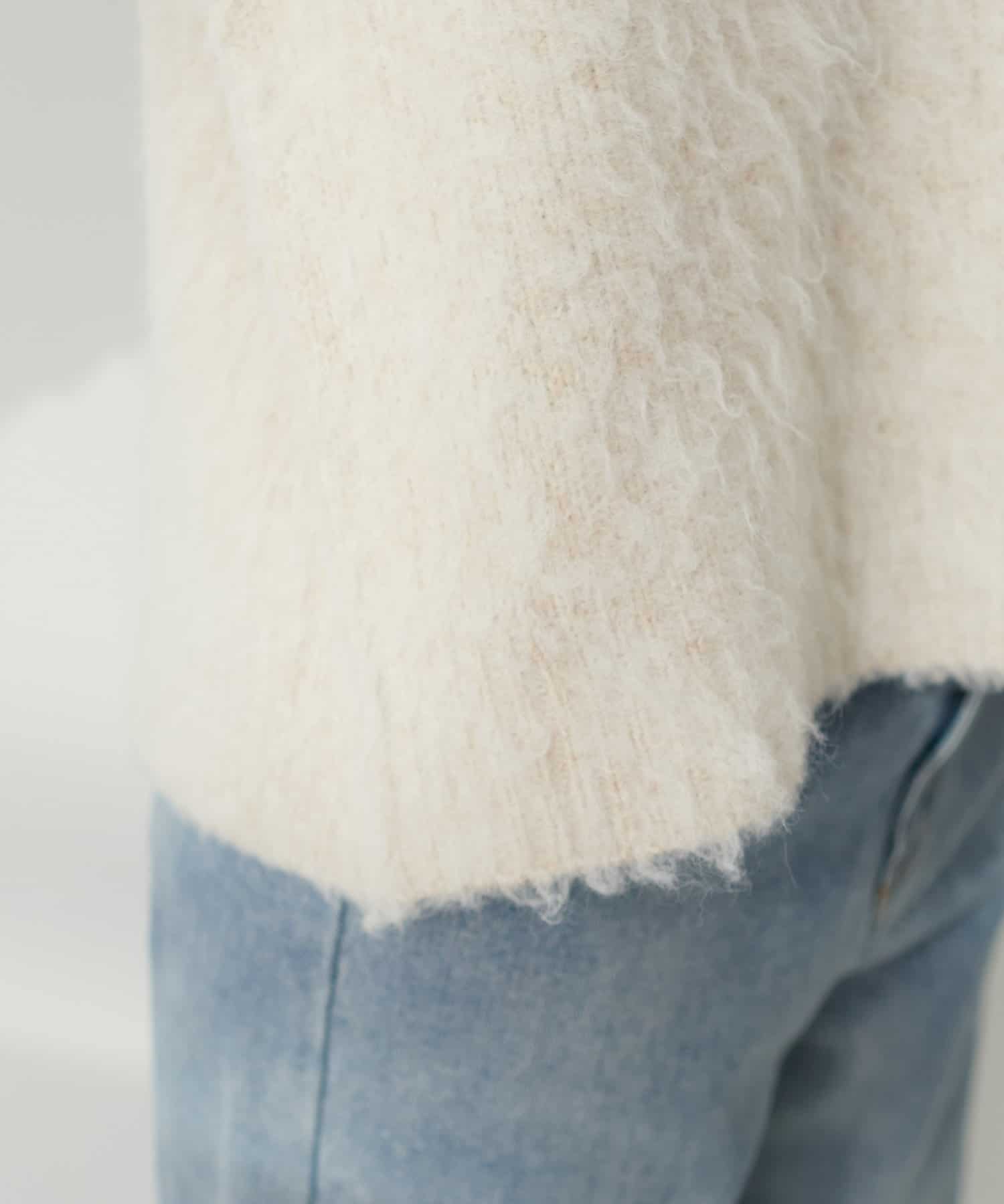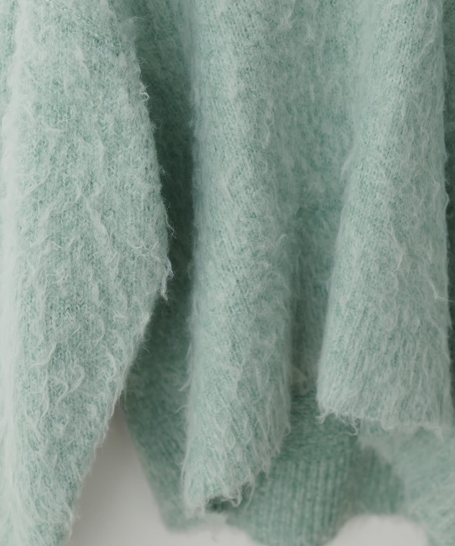柔らかく長い毛足が特徴のシャギーニットで仕立てられたトレンドライクな1着。