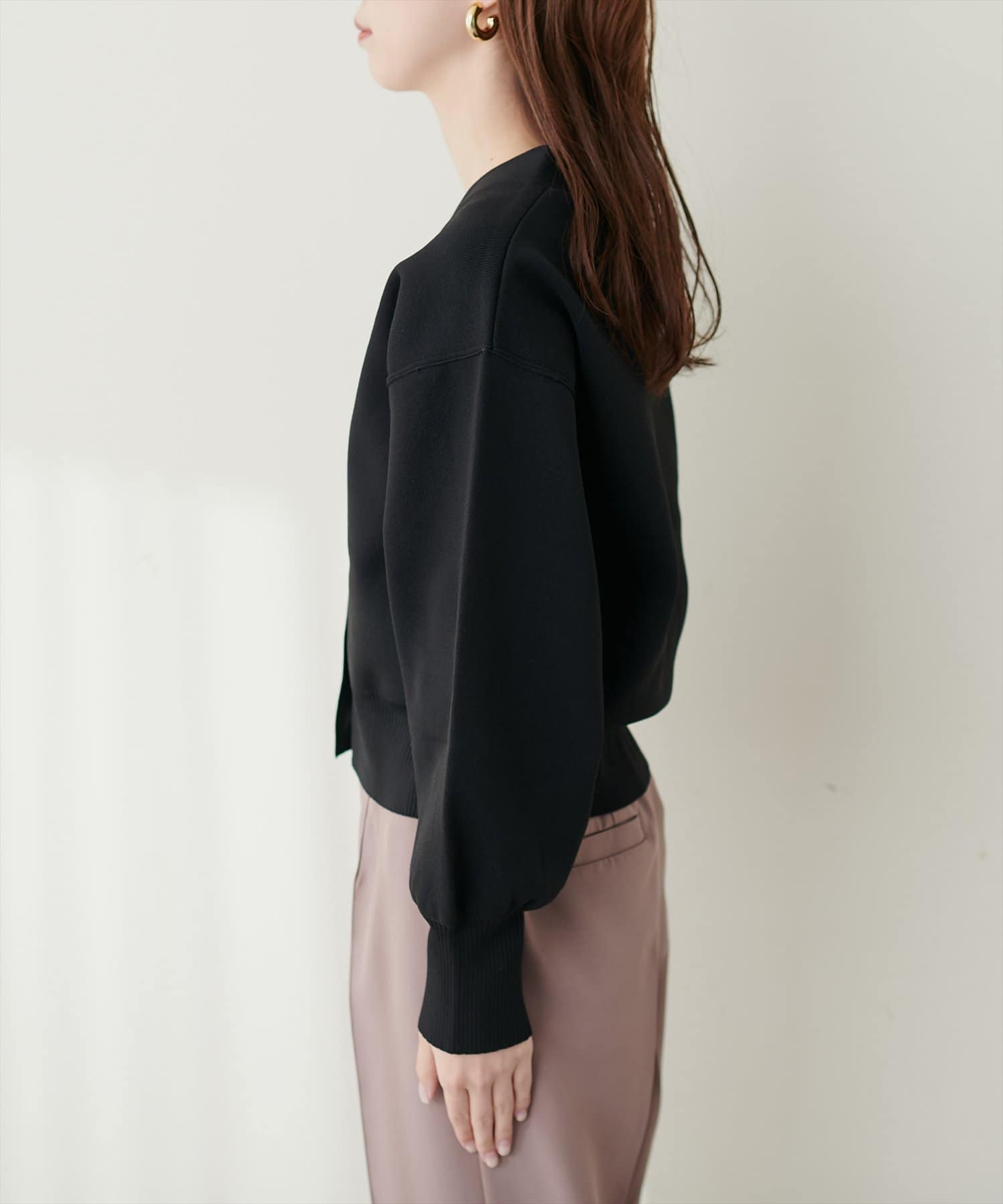 袖ぐりのアウトリンキングや、程良いボリューム感のあるシルエットが羽織るだけでオシャレな印象。