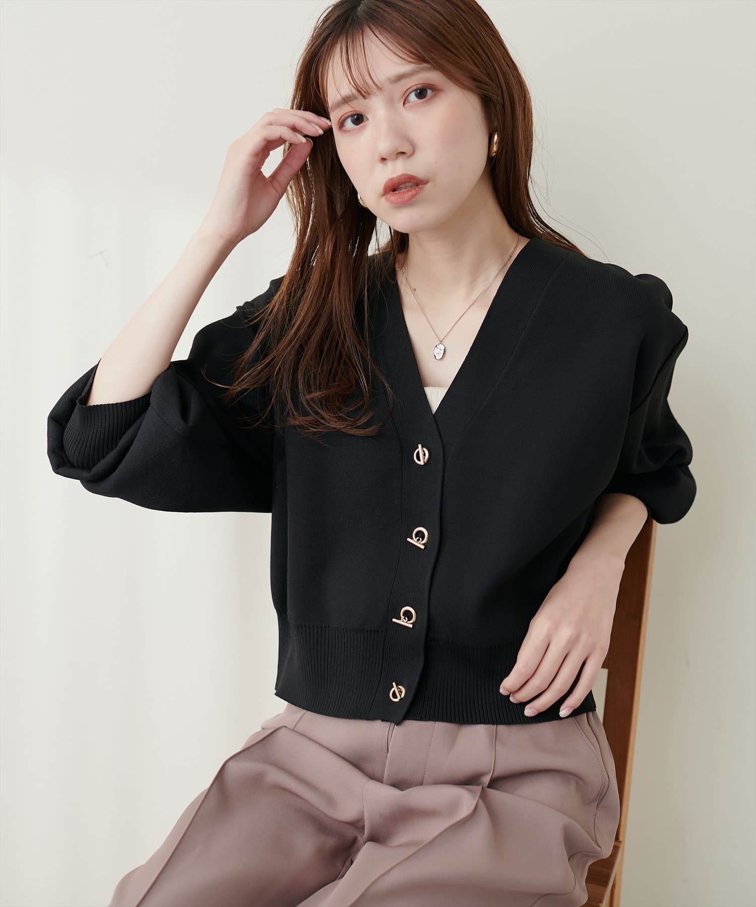 0322050150 WEB限定カラーあり/プチプラハトメバー釦おしゃれカーディガン