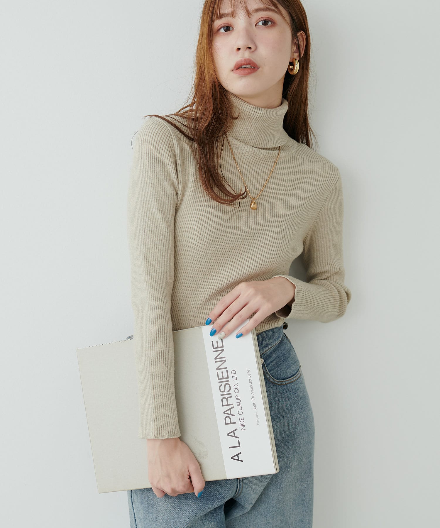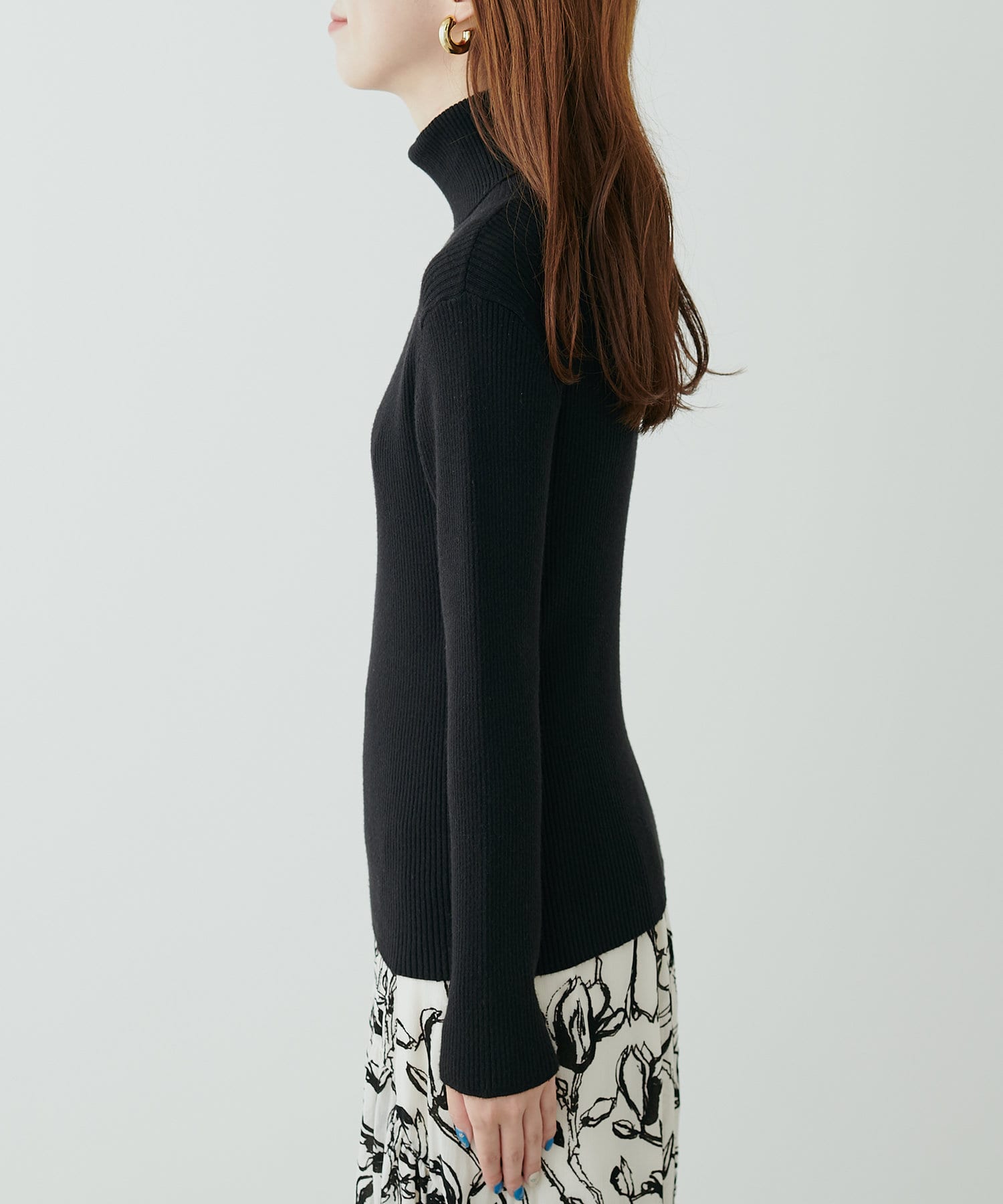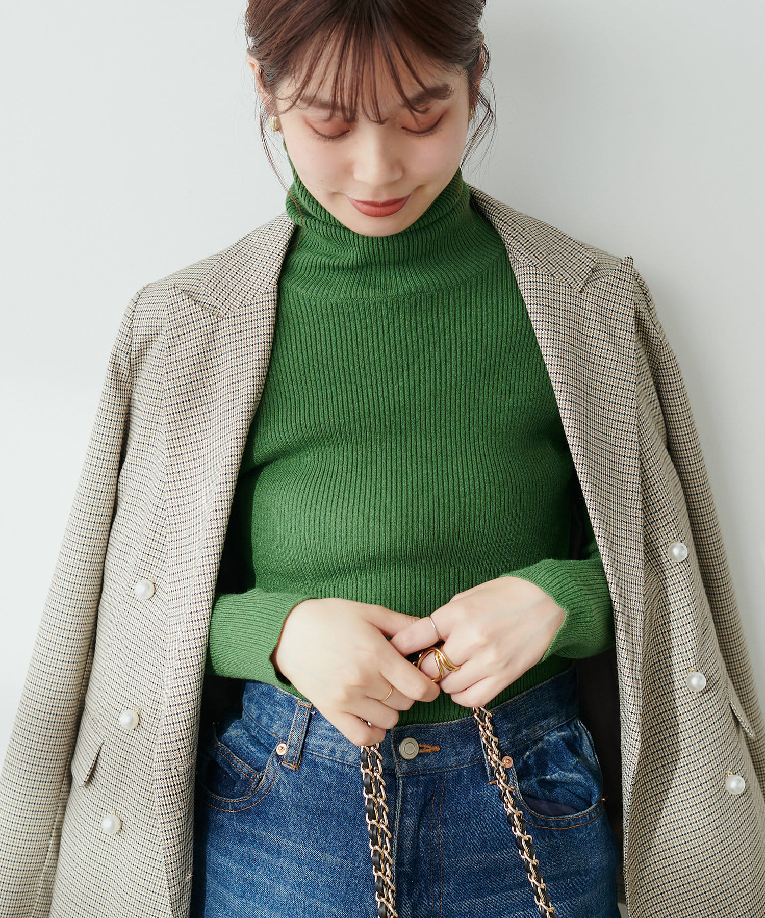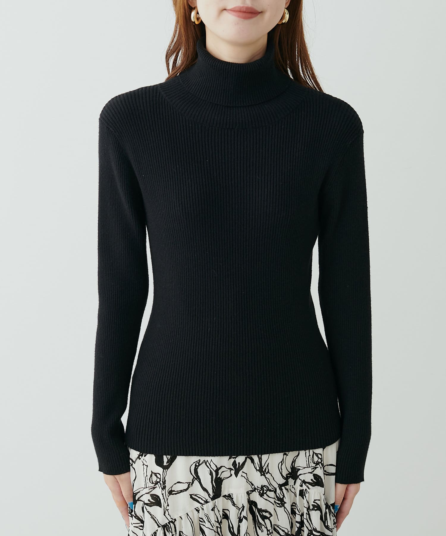 すっきりシンプルなデザインで着回しのきくリブタートルネック。
