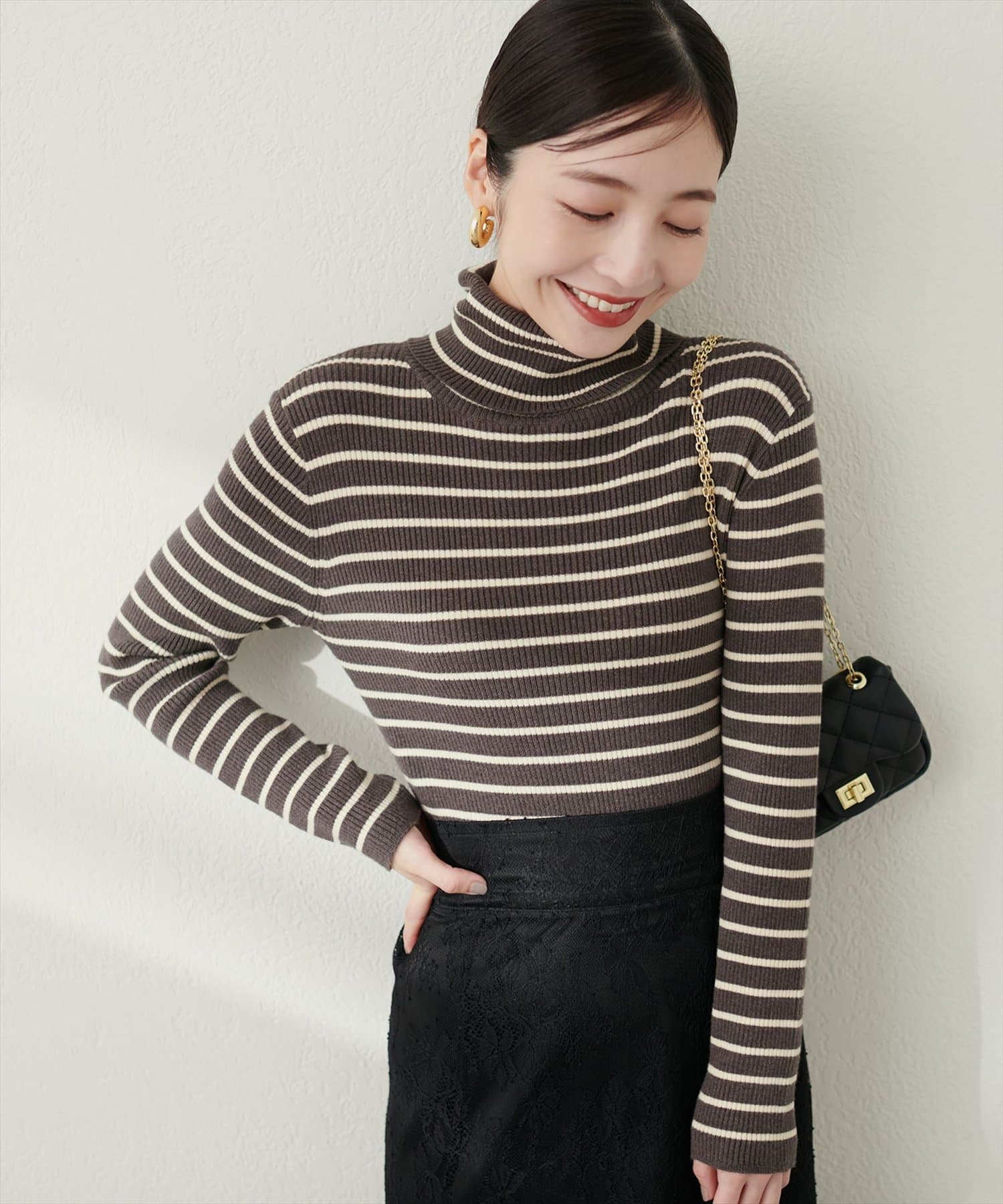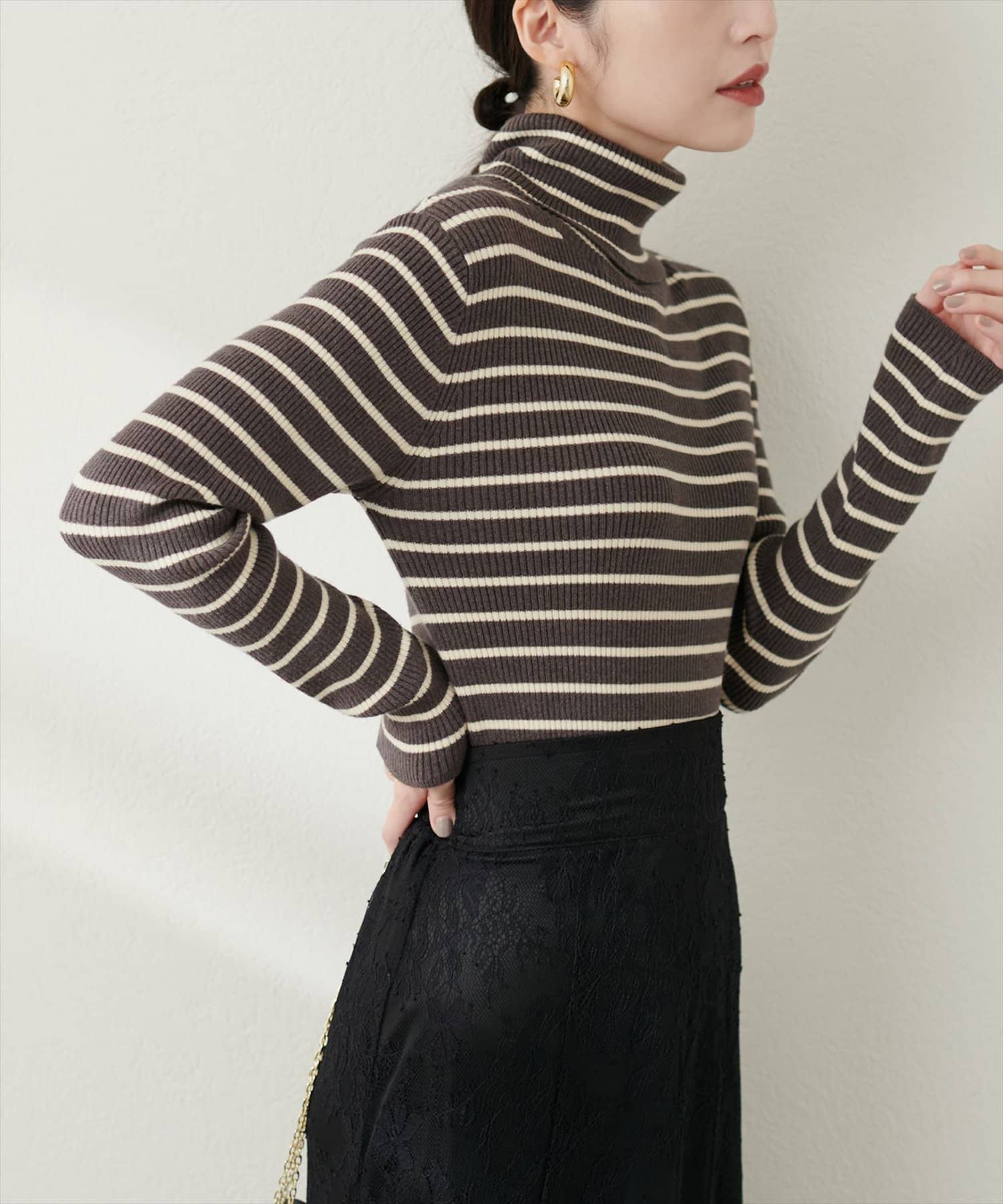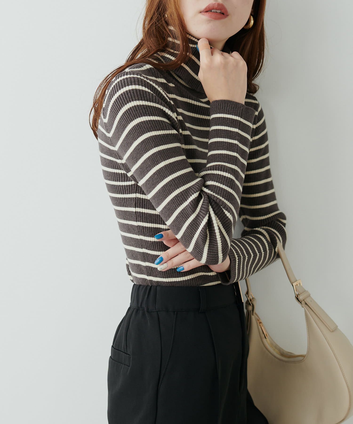 すっきりシンプルなデザインで着回しのきくリブタートルネック。