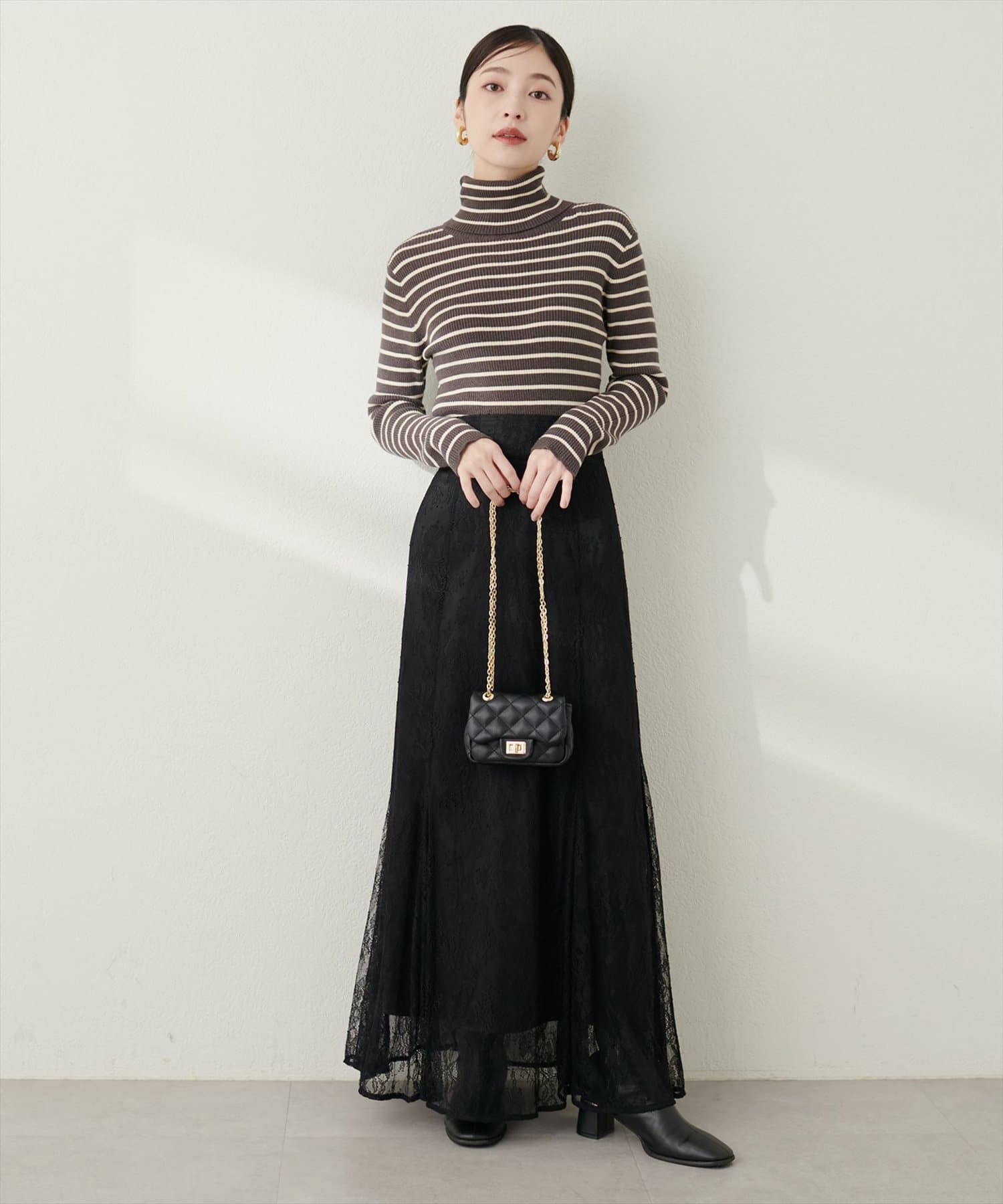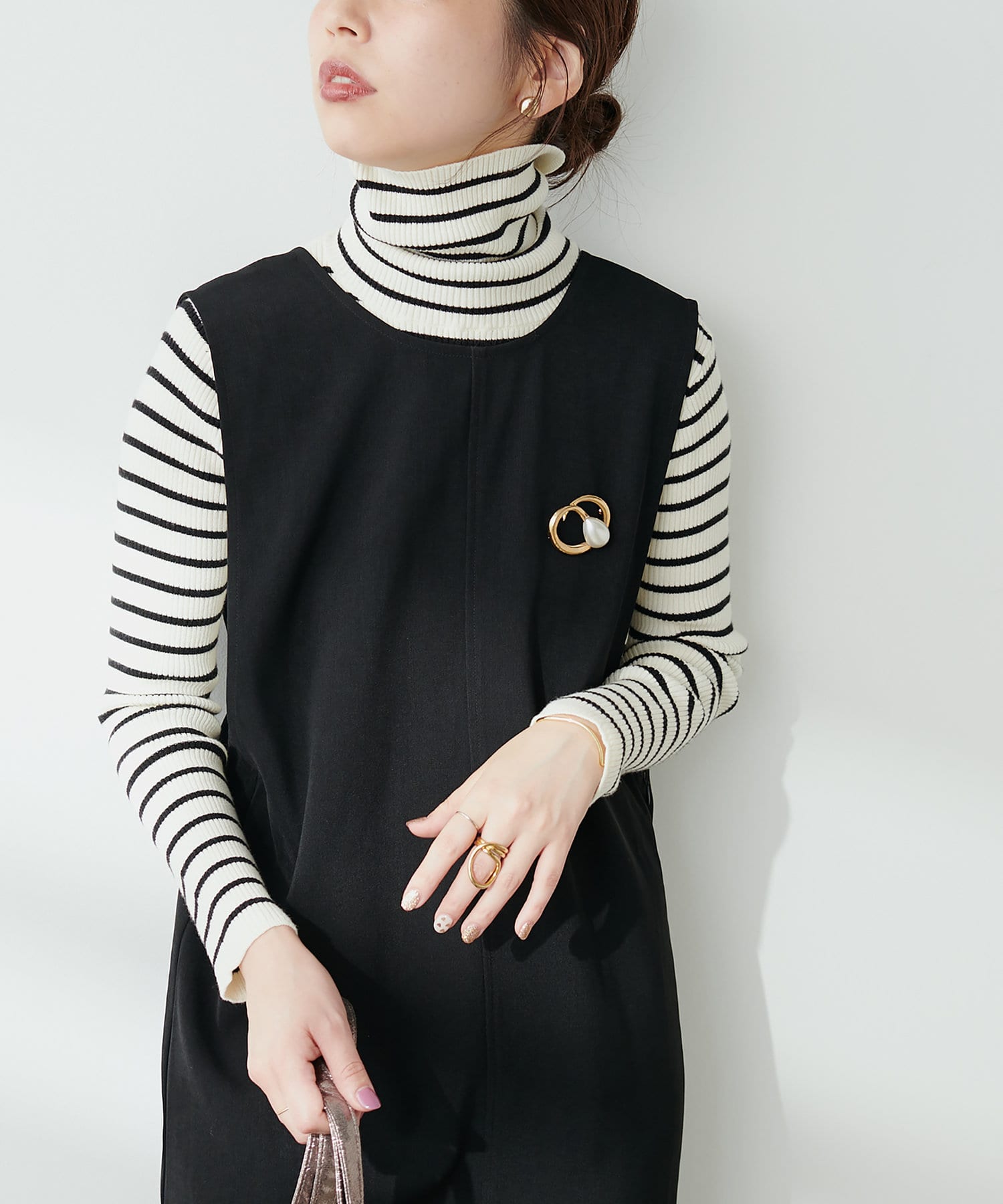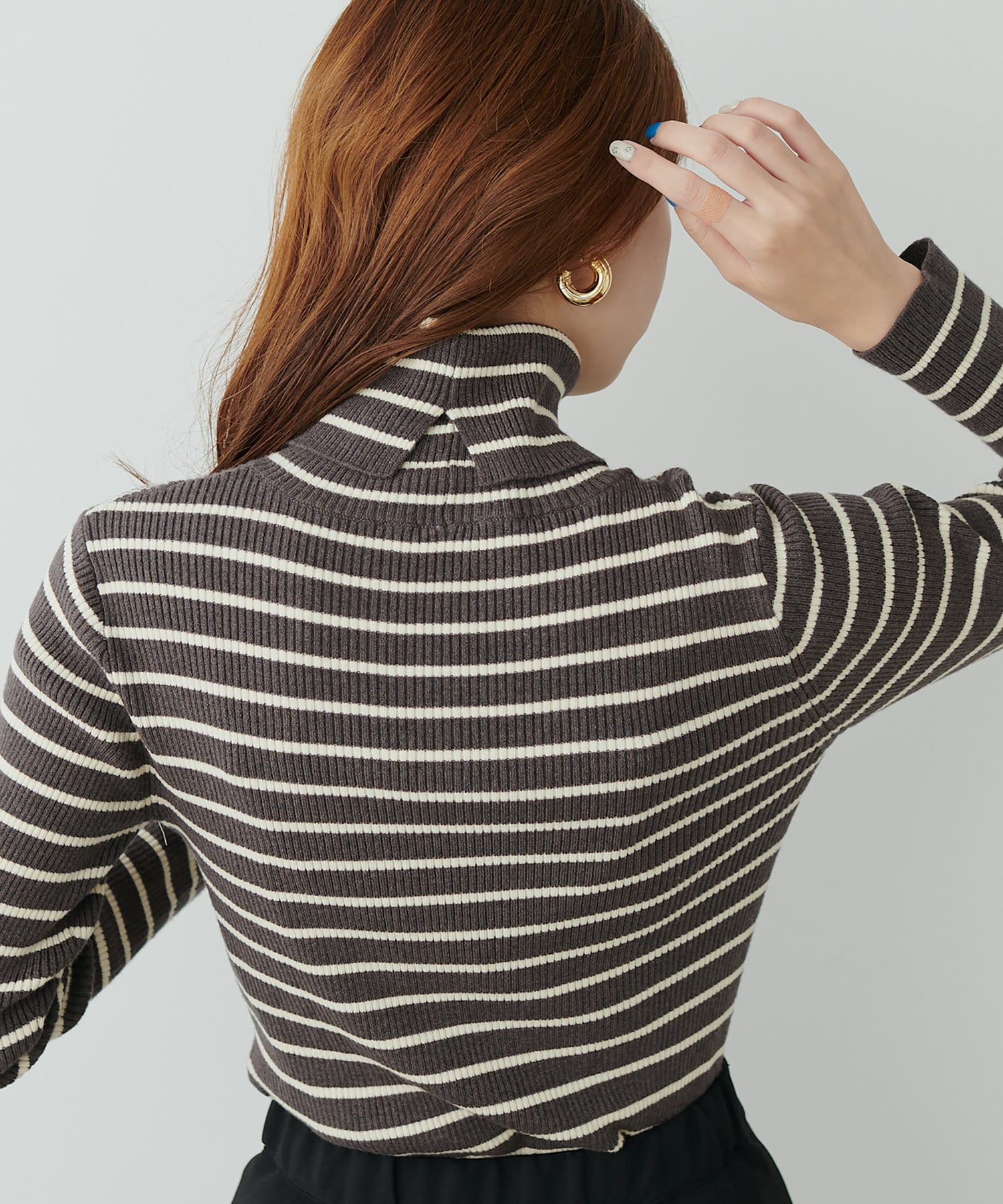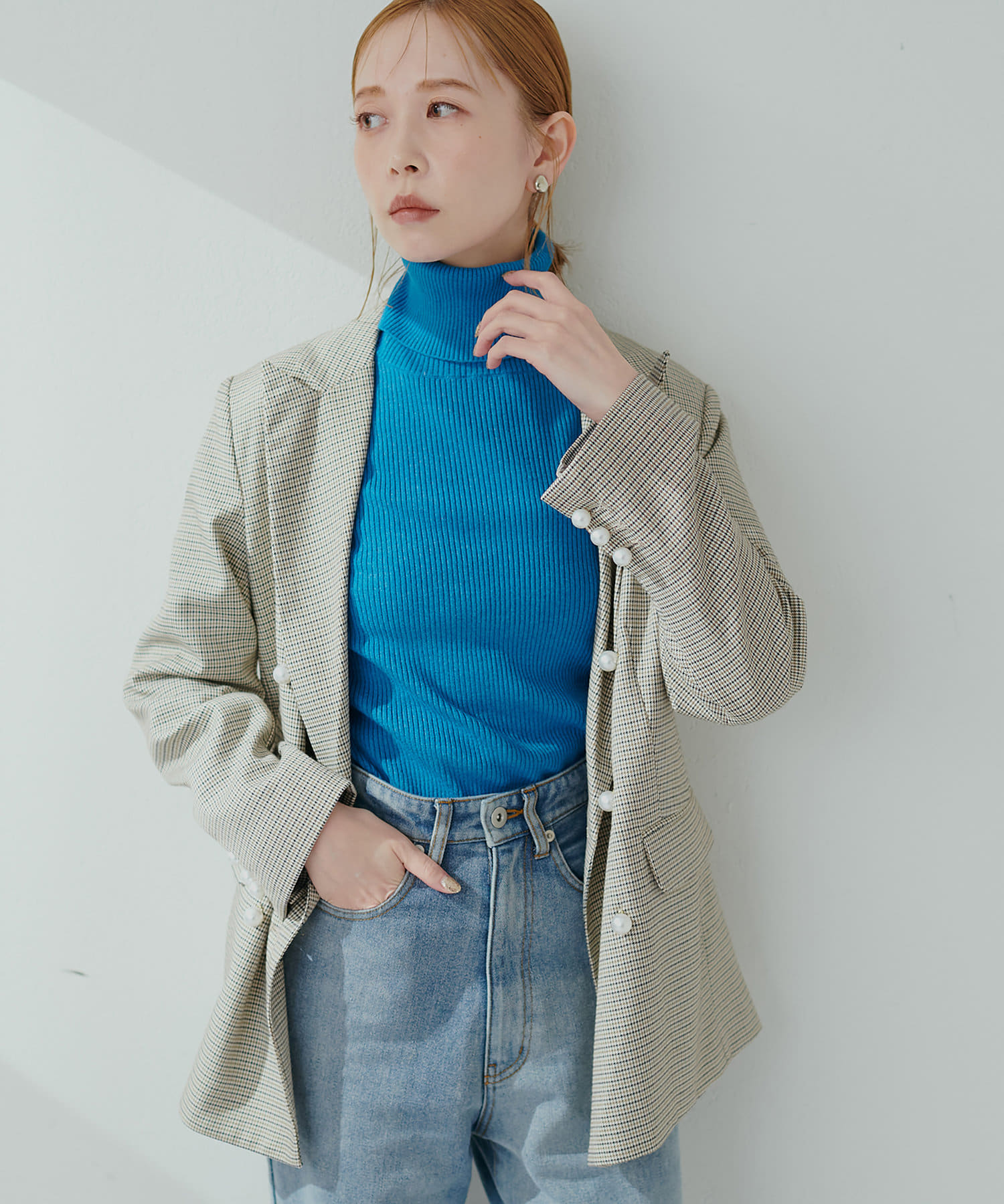 すっきりシンプルなデザインで着回しのきくリブタートルネック。