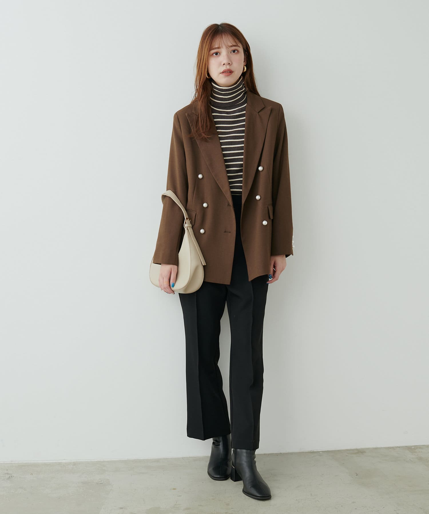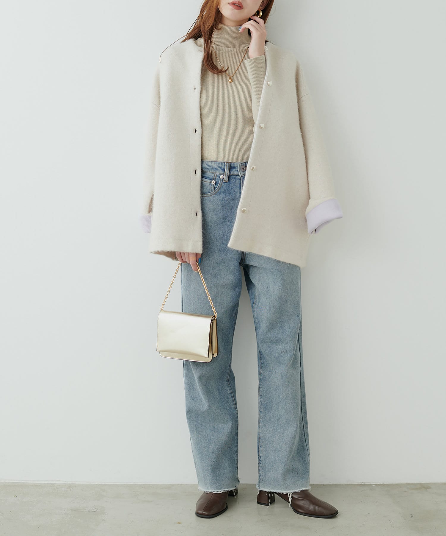 シンプルなデザインなので、ボトムスのテイストを選ばず着回しできます。