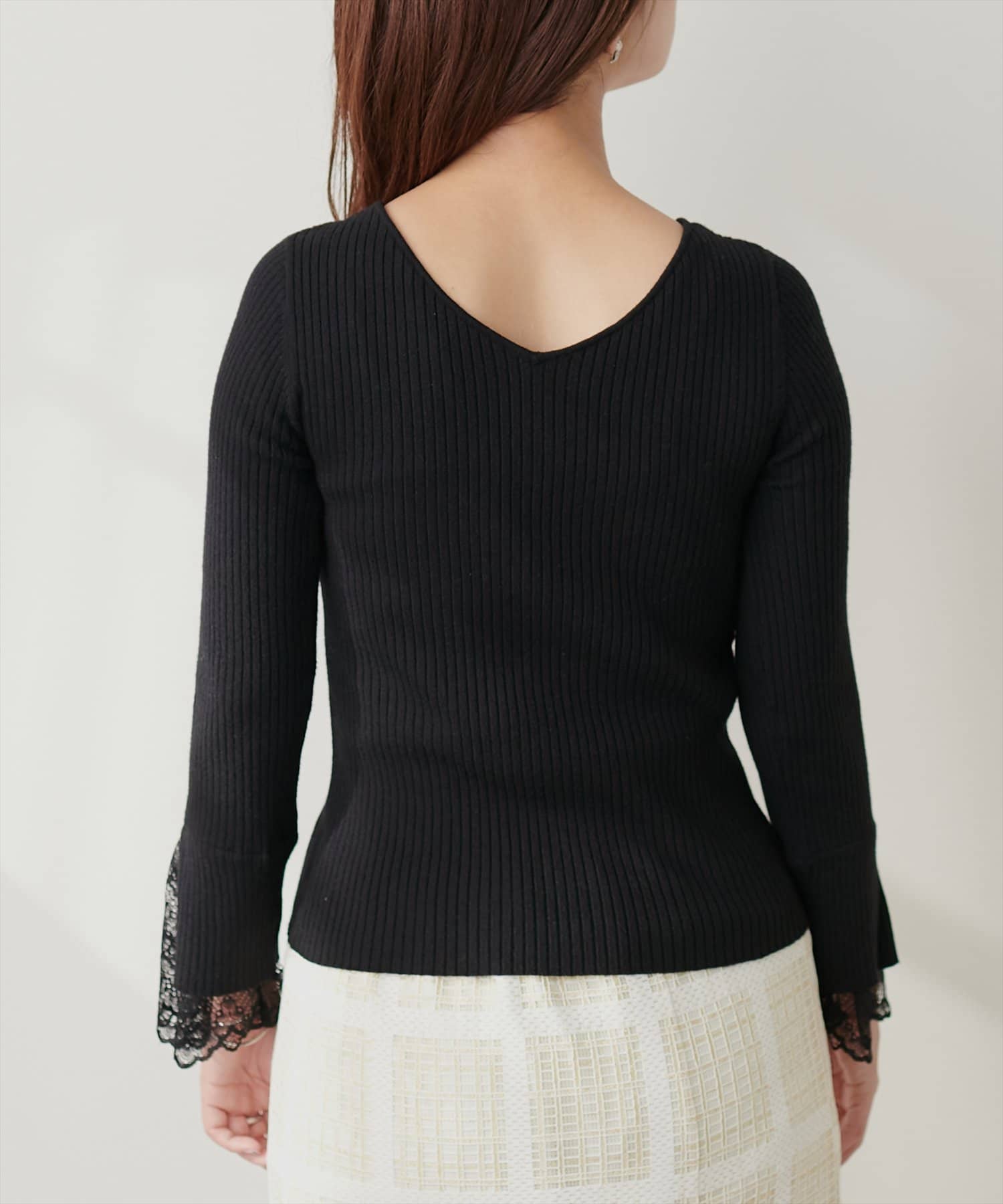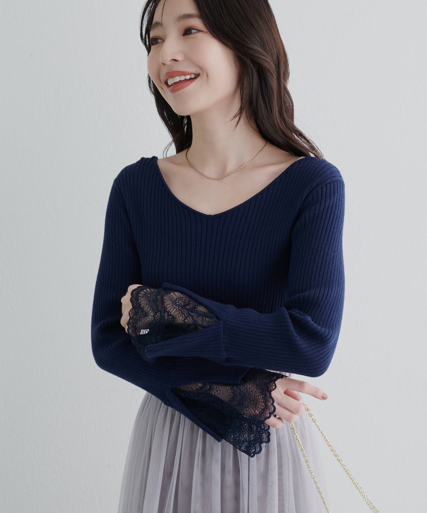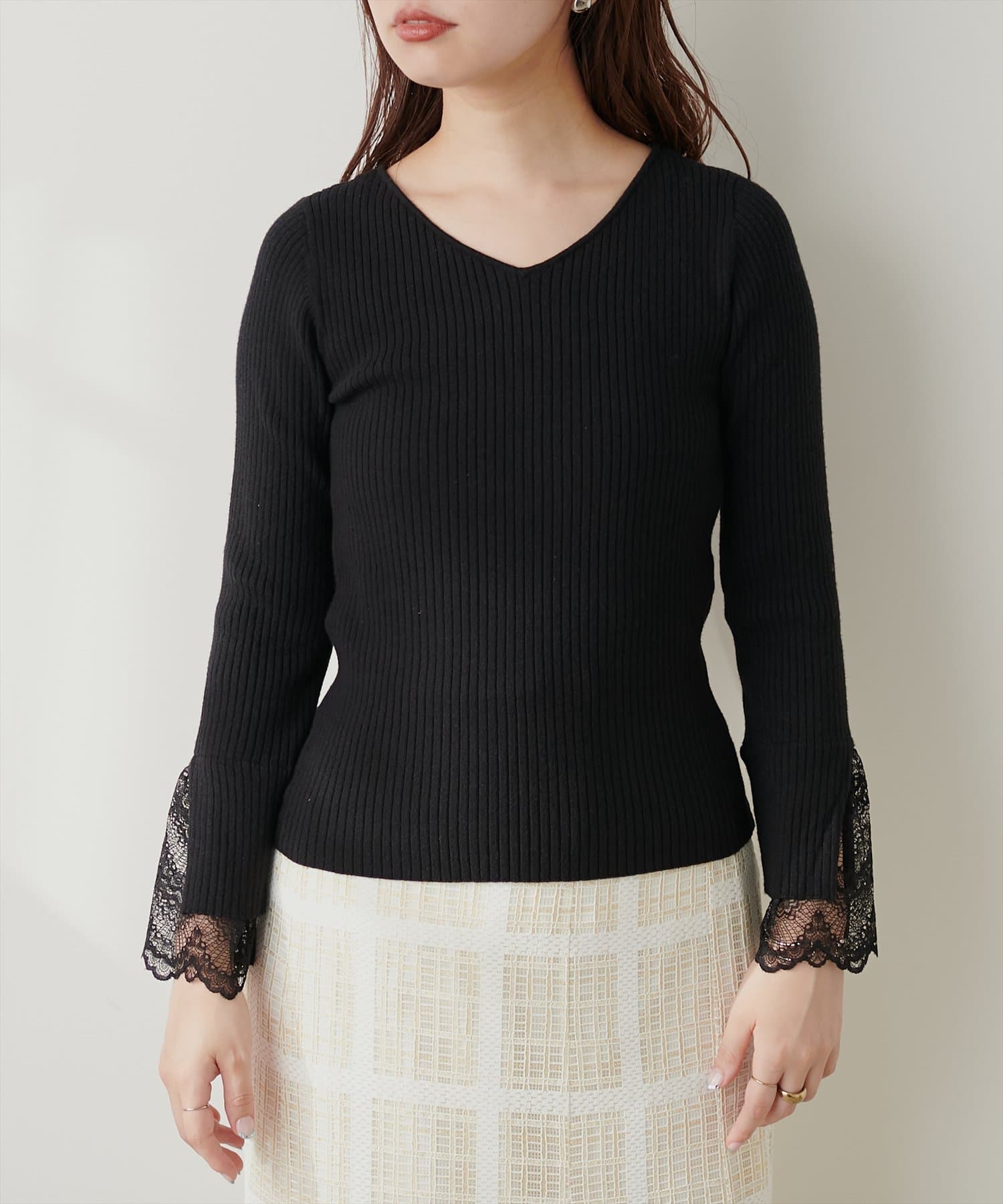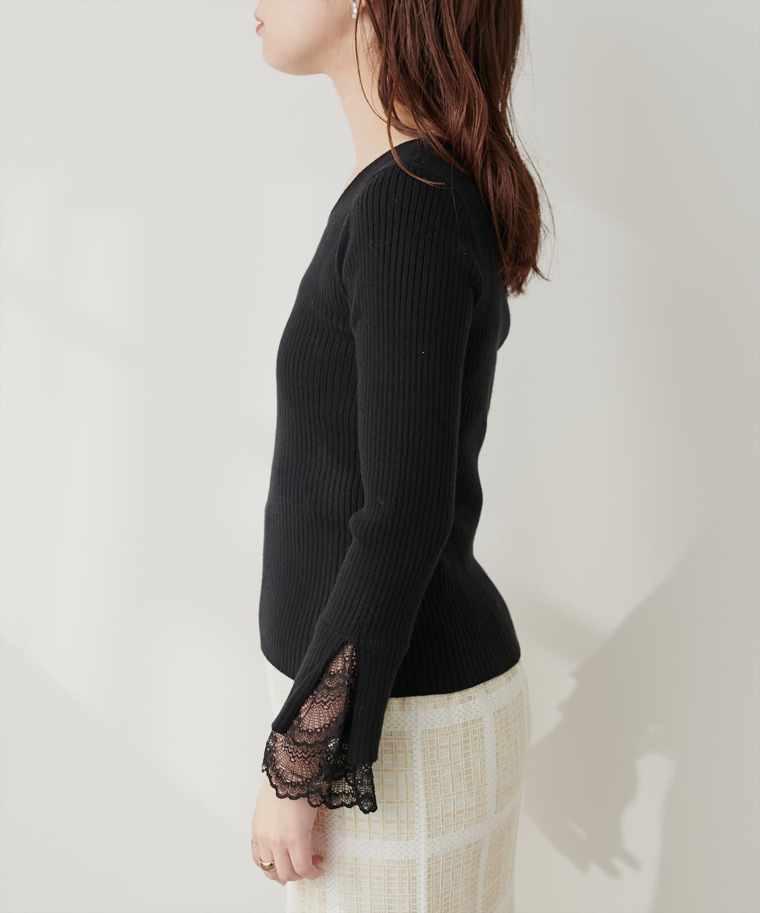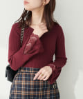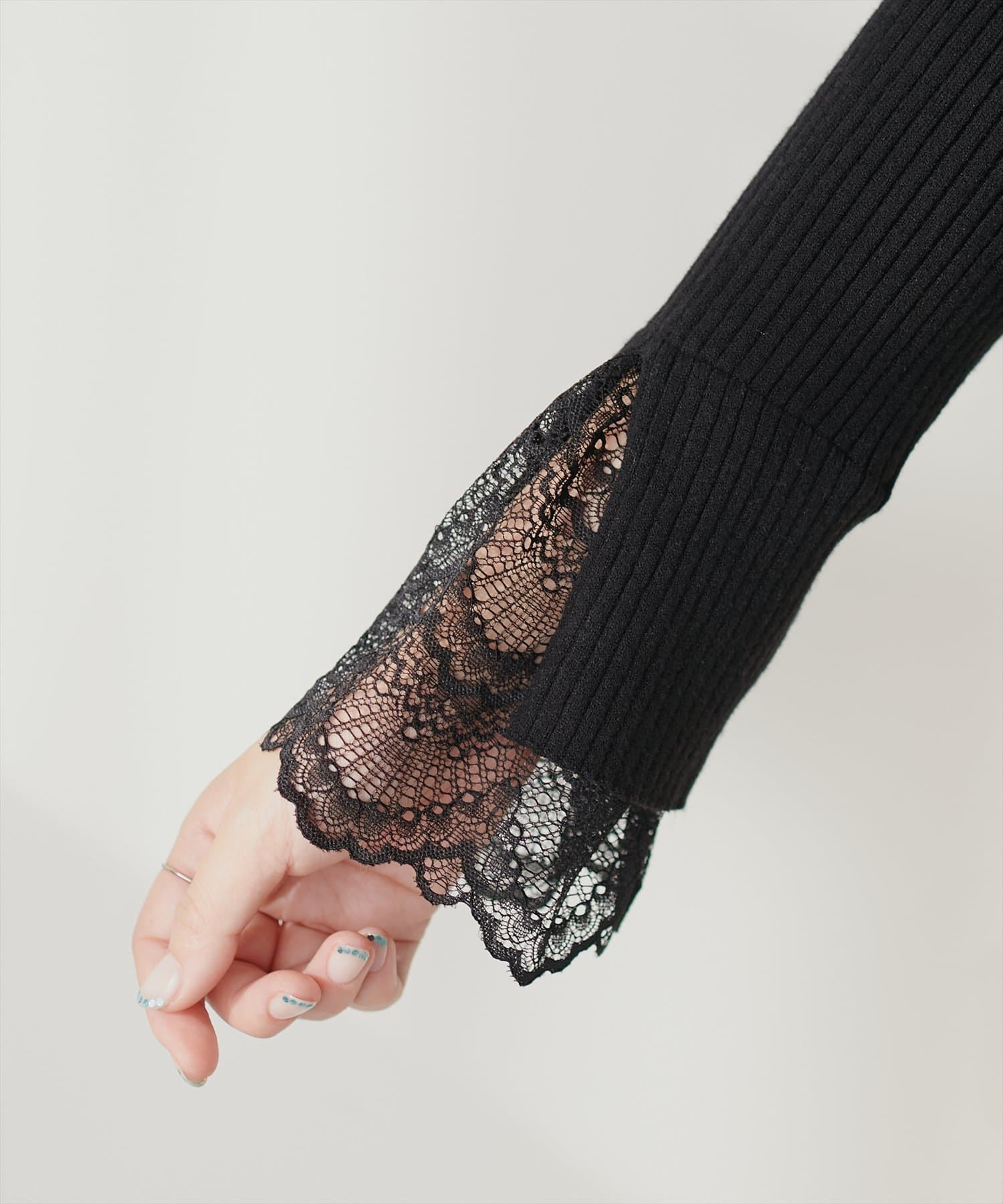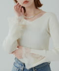 前後2WAY袖口レースリブニット