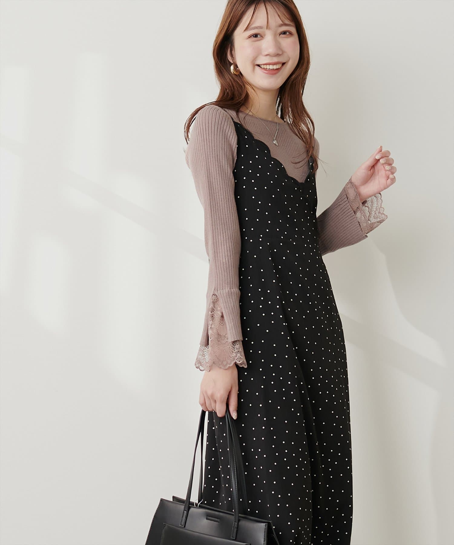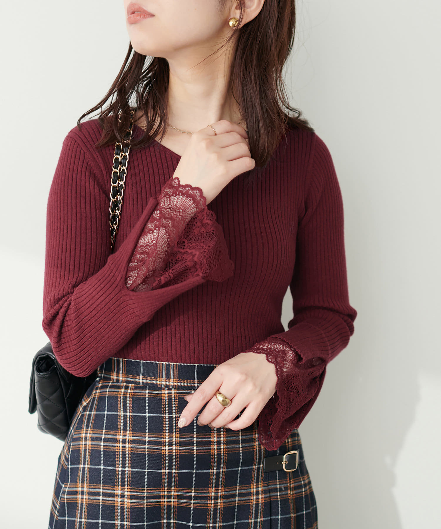 冬の季節はアウターの袖からレースがのぞくレイヤードもおすすめです。