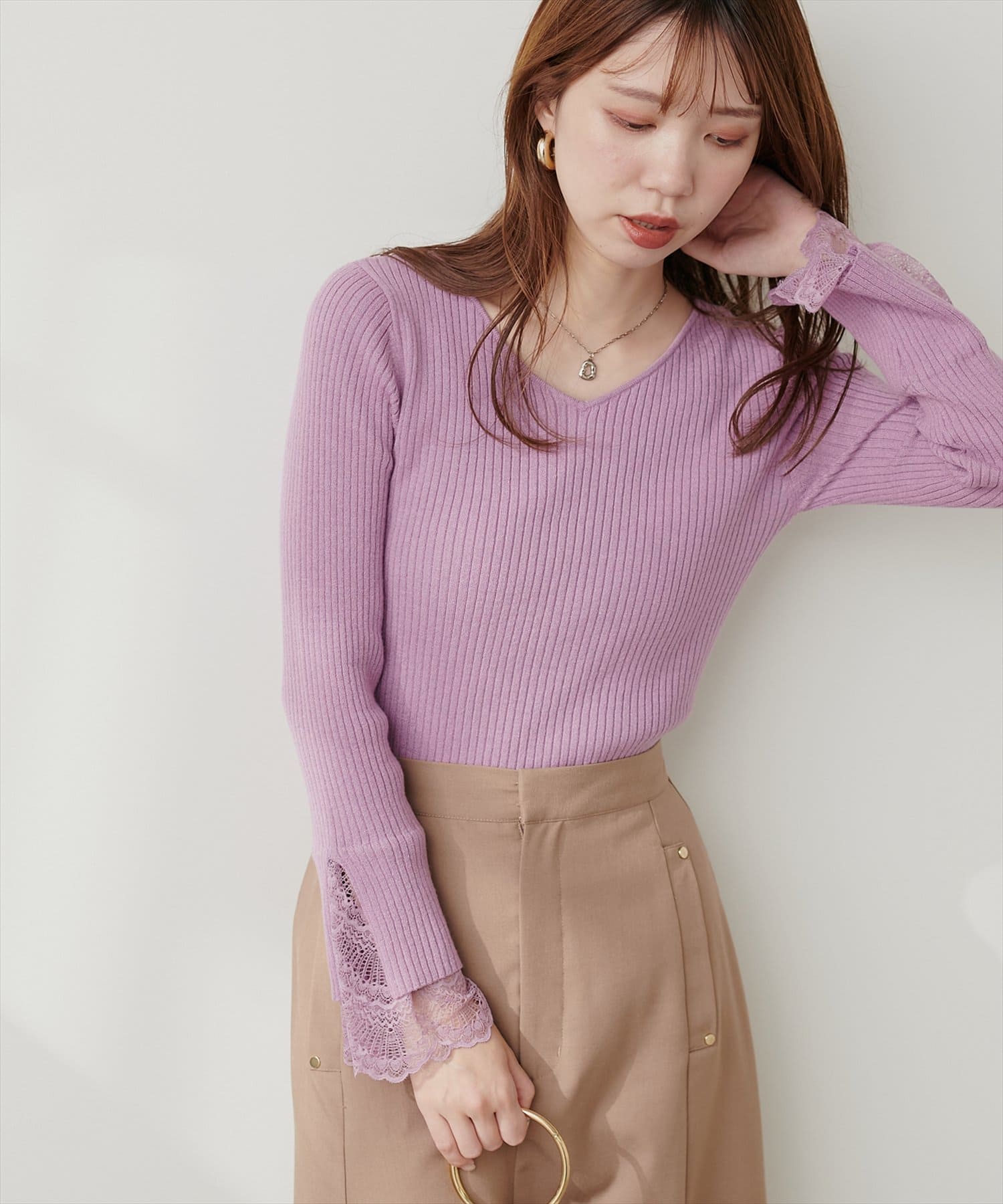 大人気の袖口レースリブニットに新色登場!