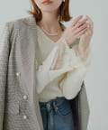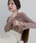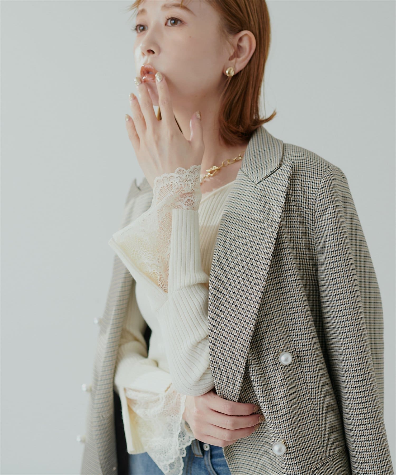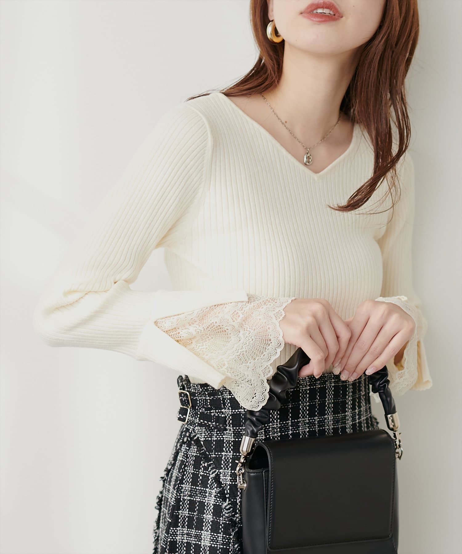 ニットの袖口には大きく切り込みをいれ、内側のレースでほんのり甘さもプラス。