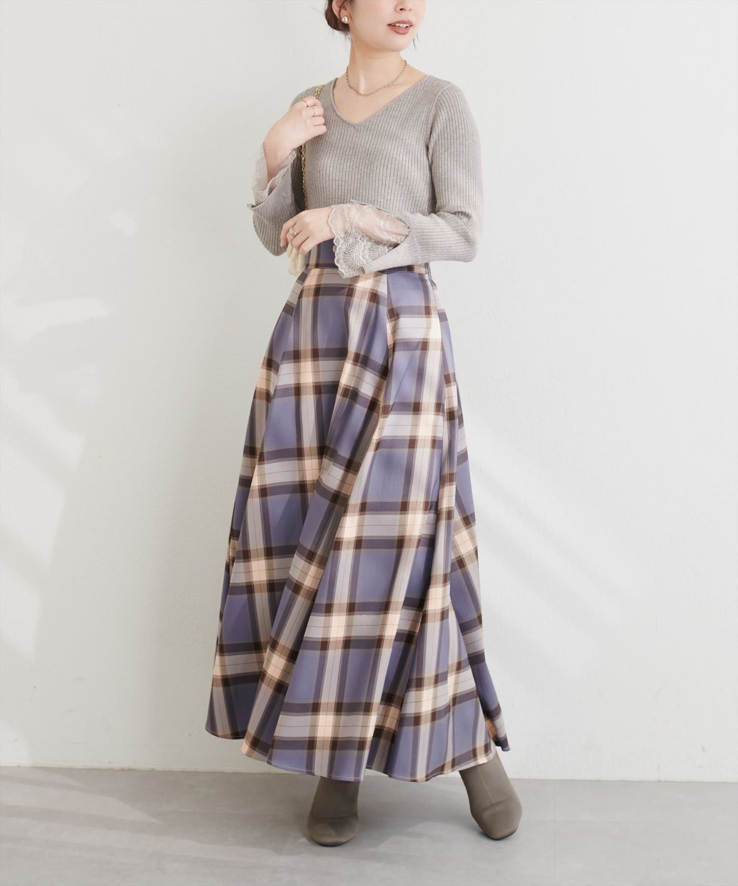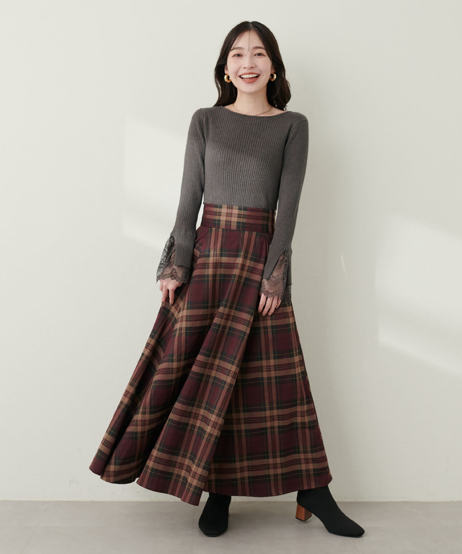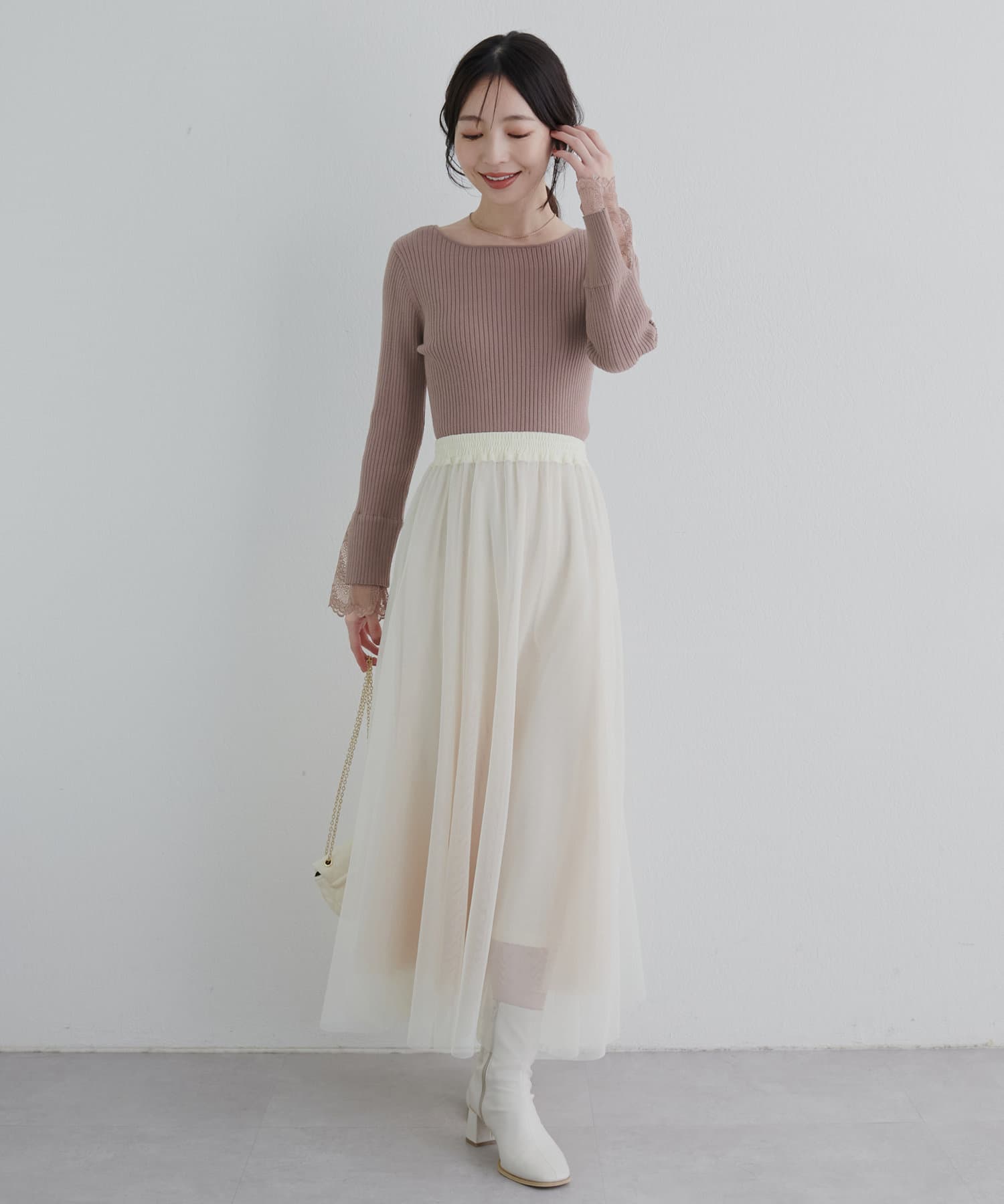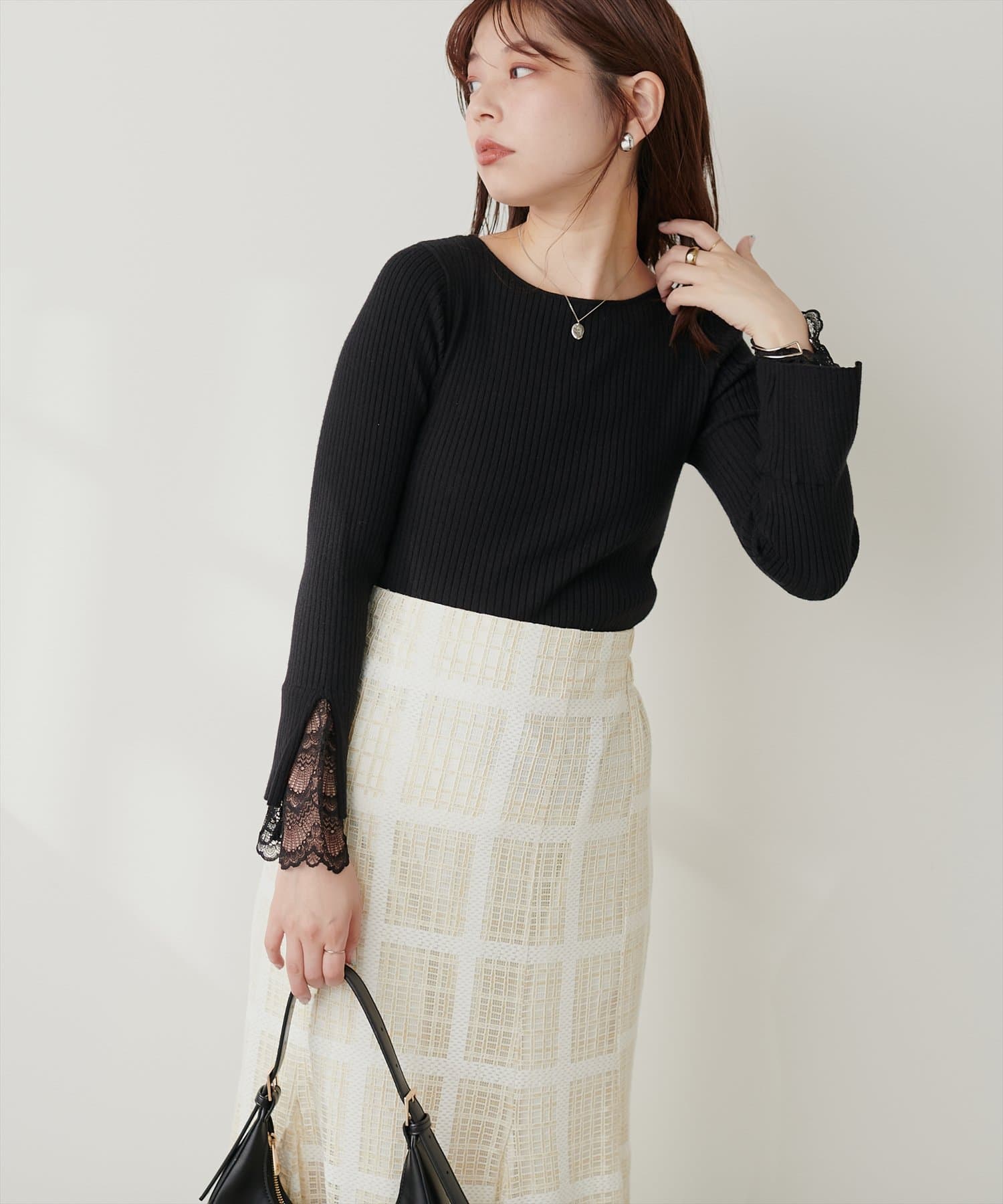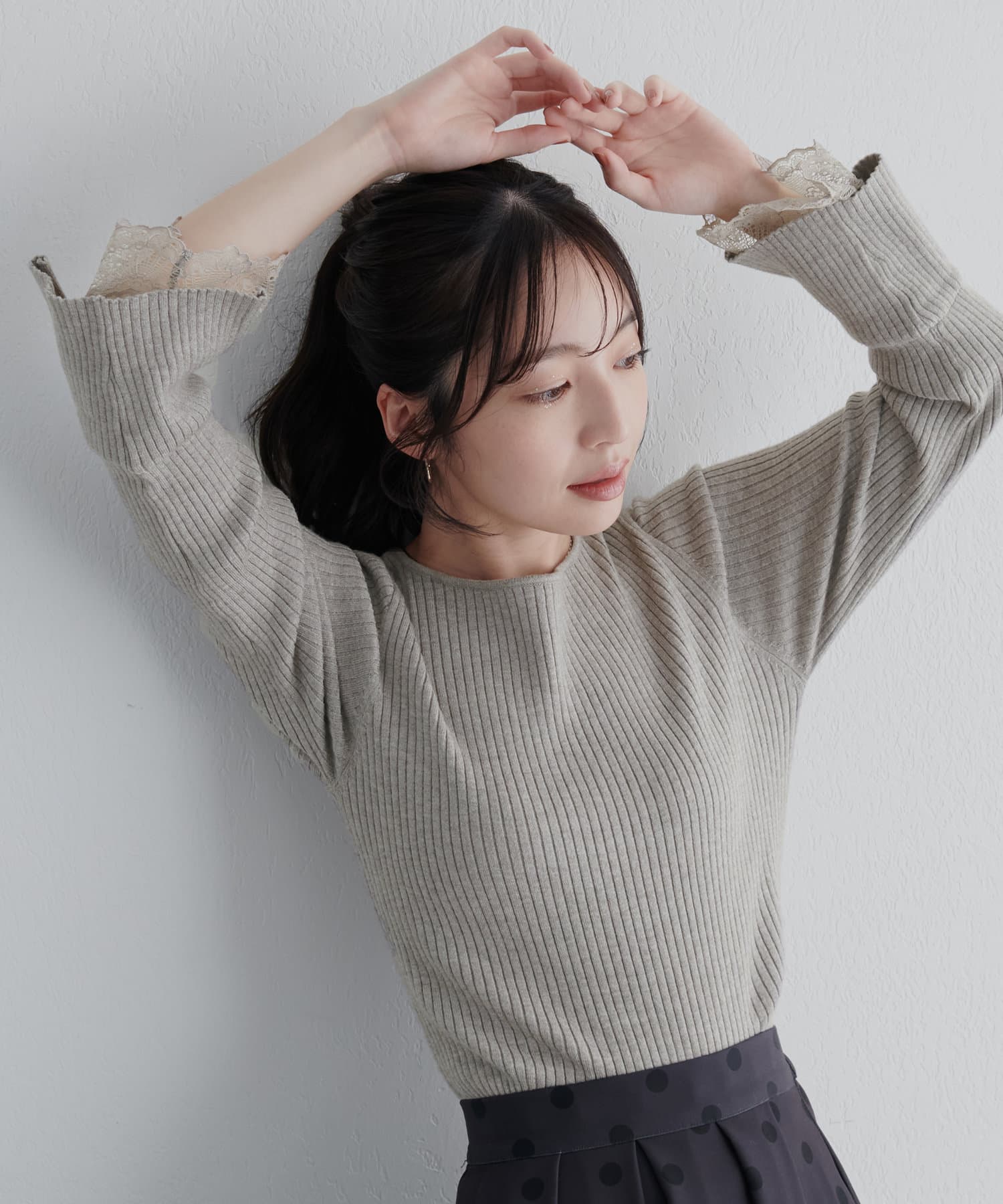 natural couture(ナチュラルクチュール) 前後2WAY袖口レースリブニット