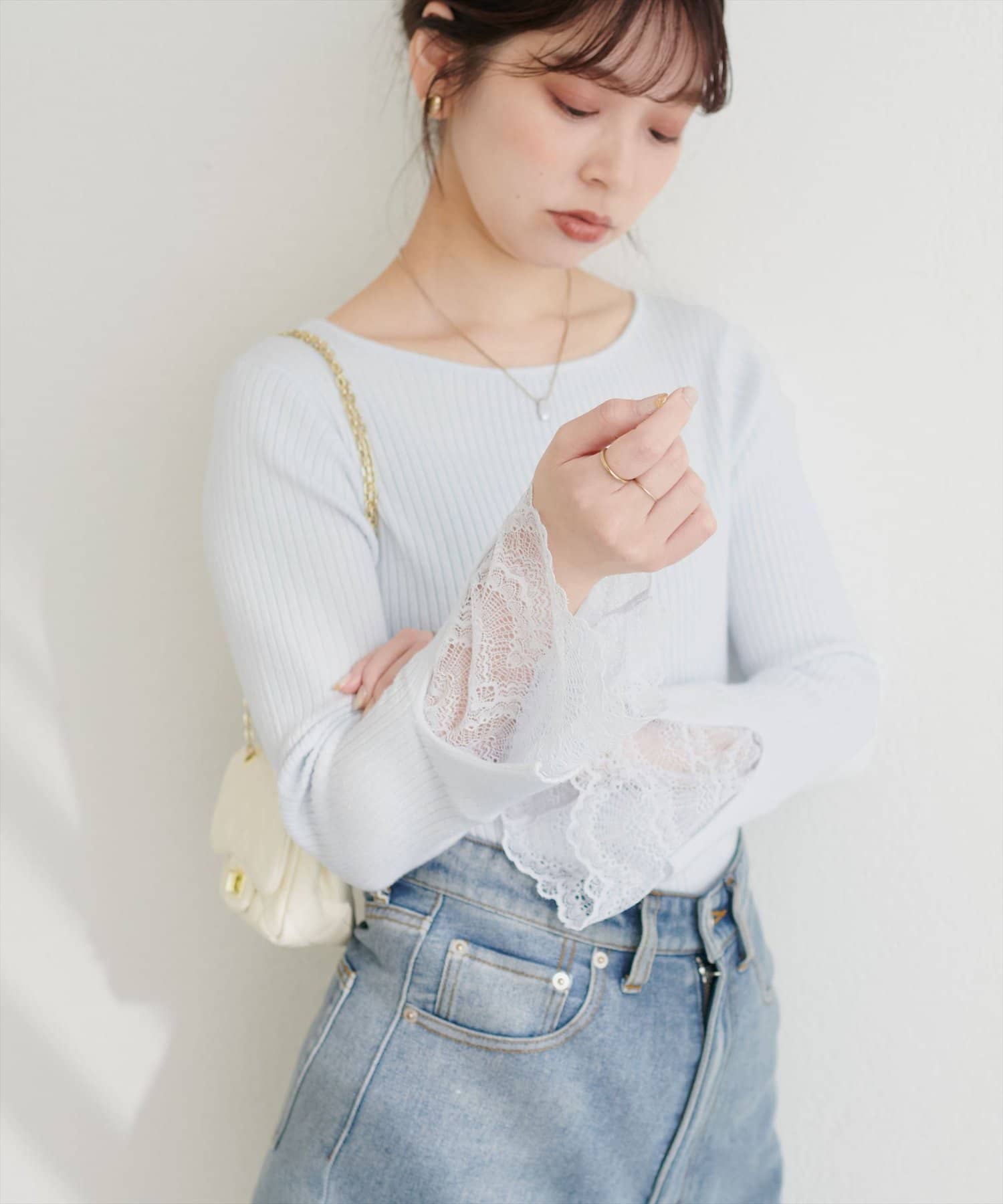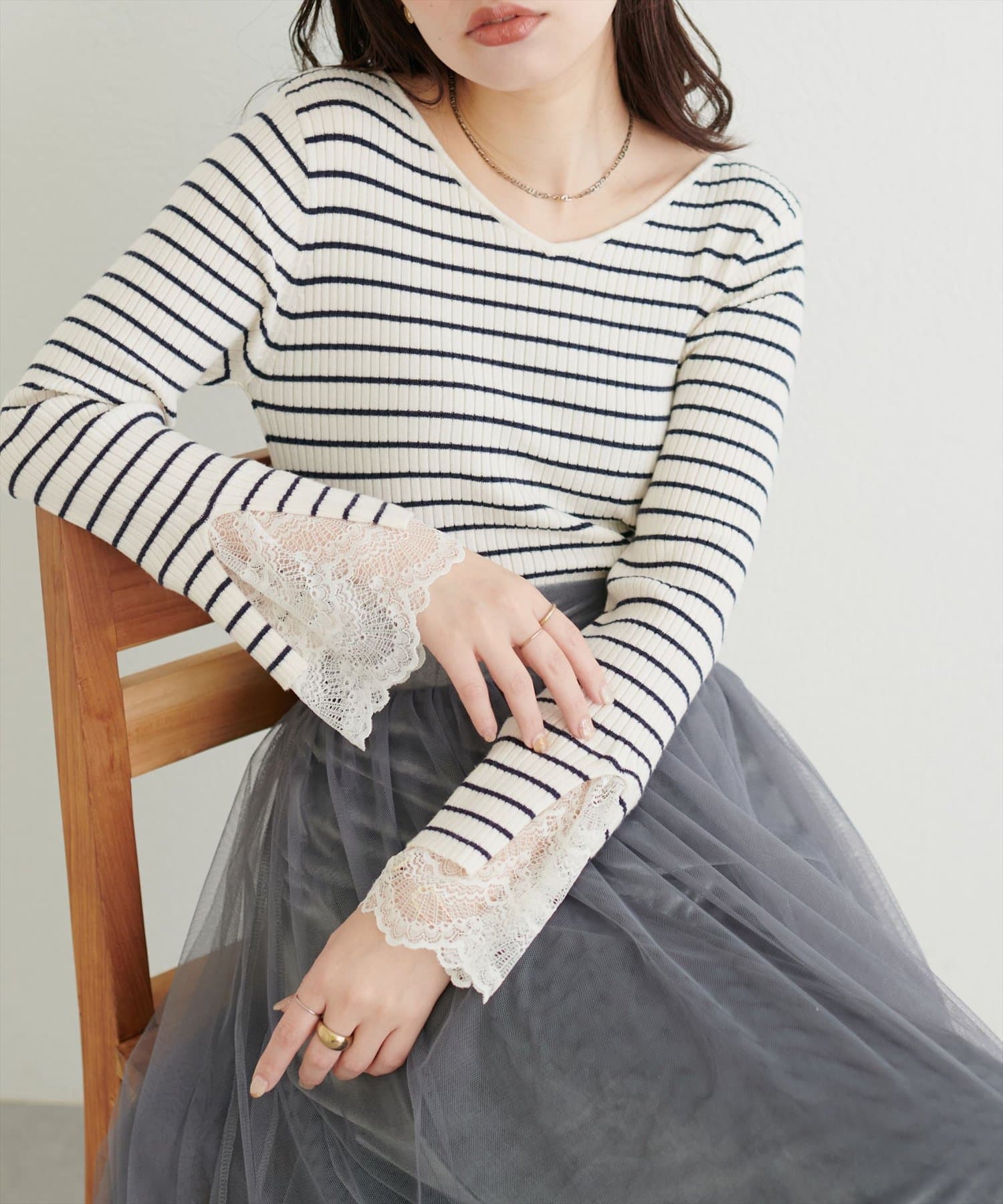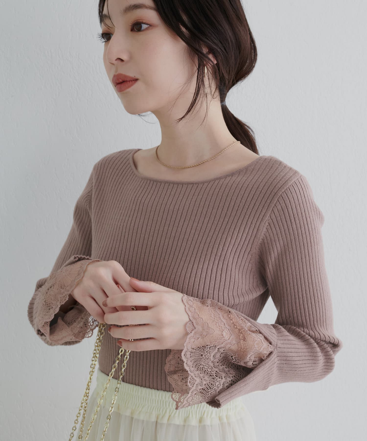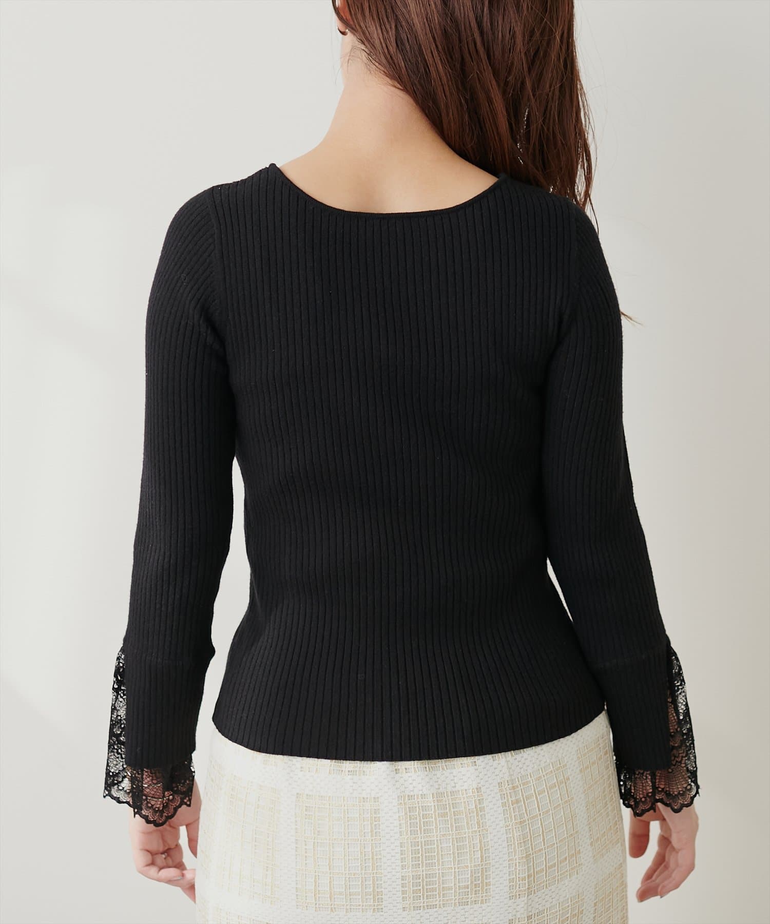 • natural couture(ナチュラルクチュール) 前後2WAY袖口レースリブニット