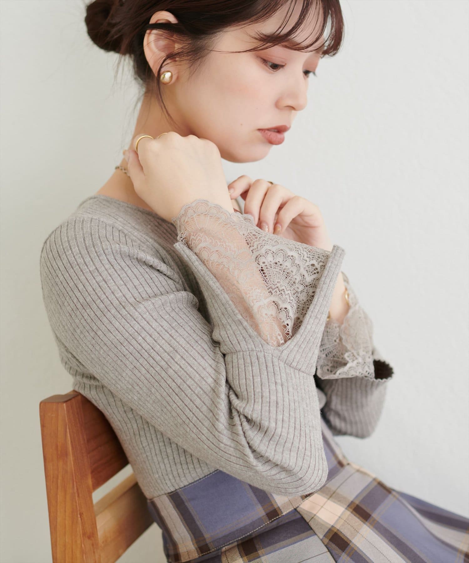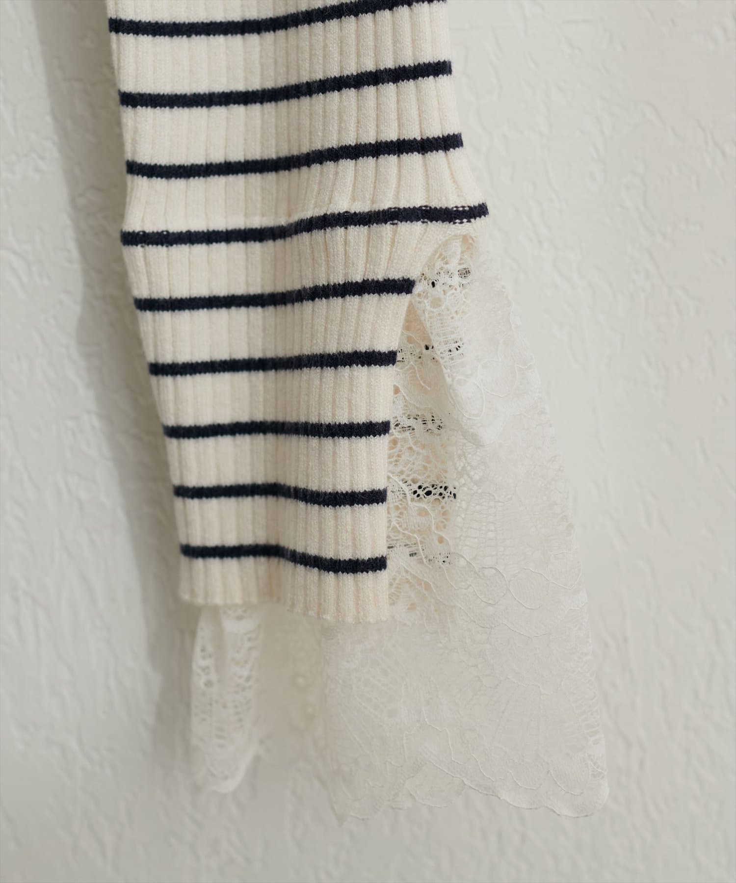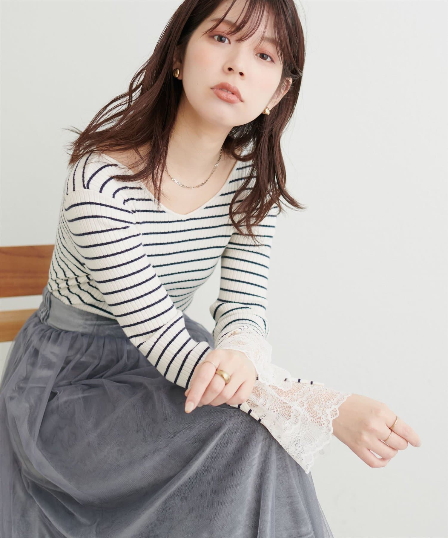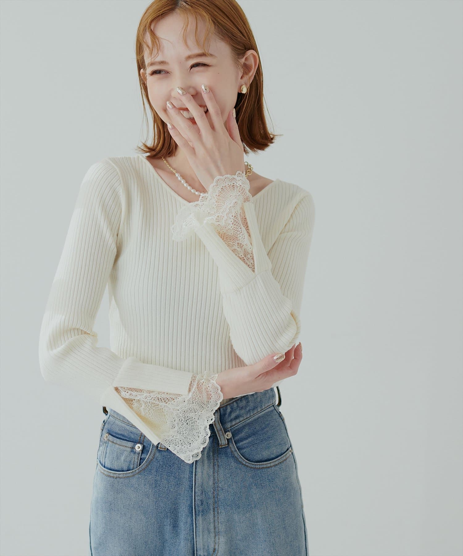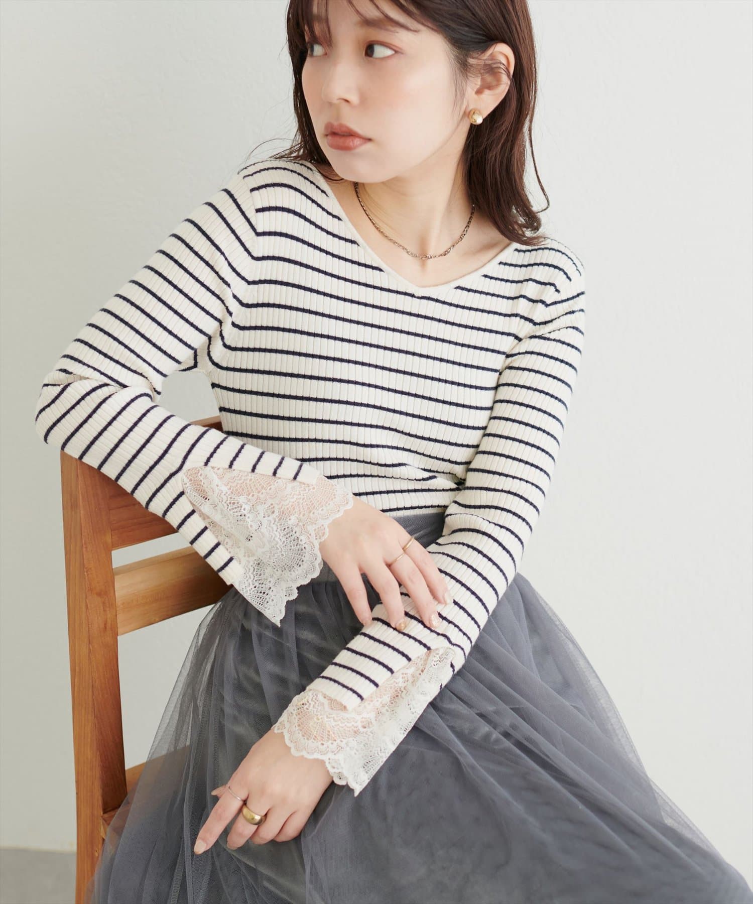 • natural couture(ナチュラルクチュール) 前後2WAY袖口レースリブニット