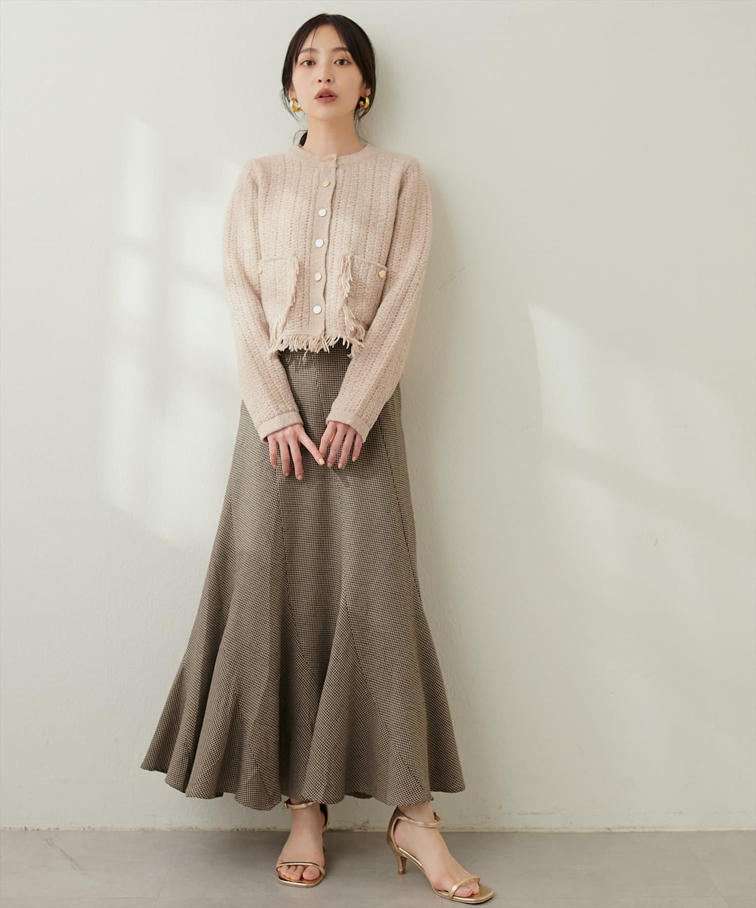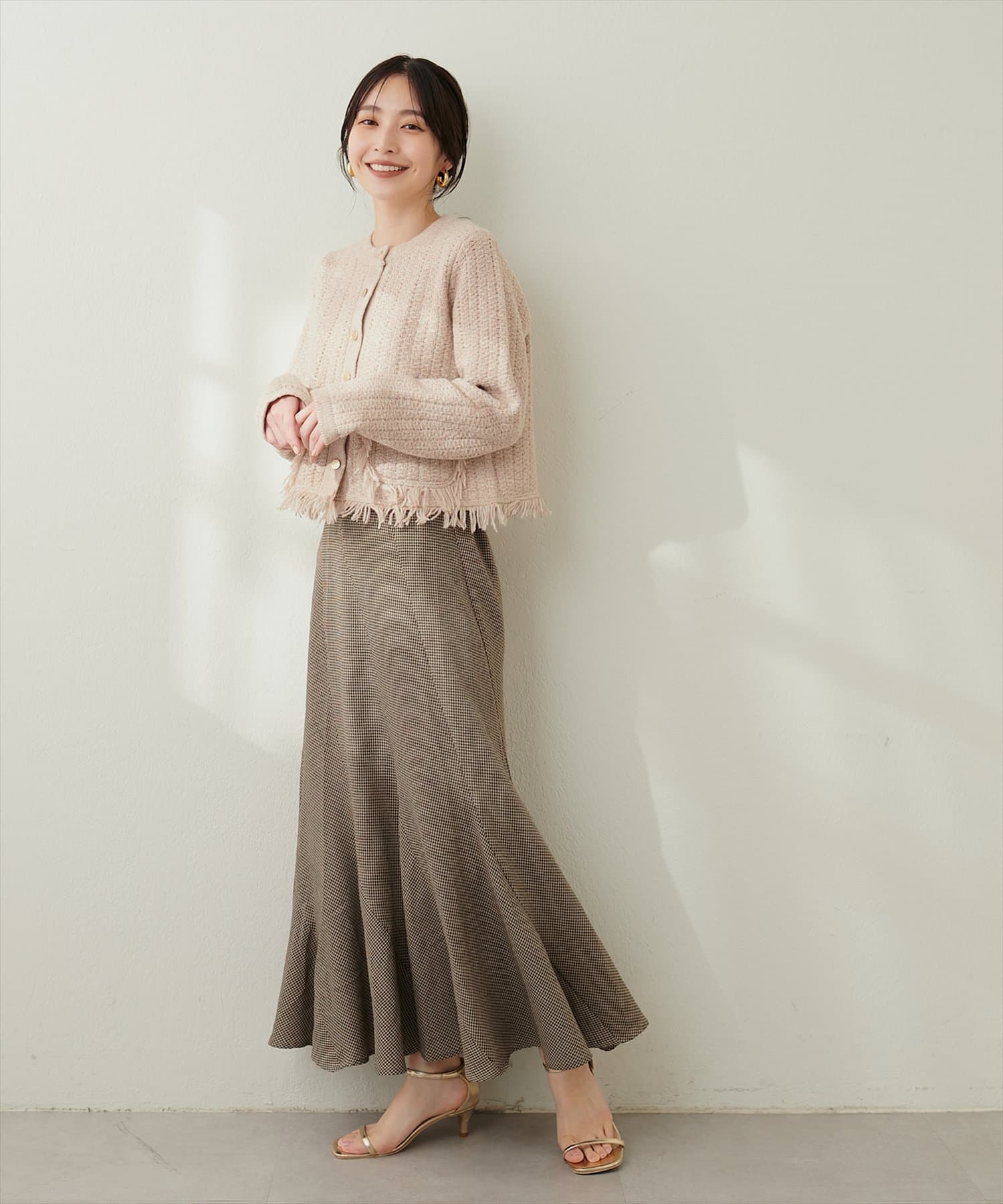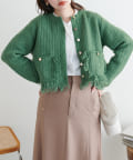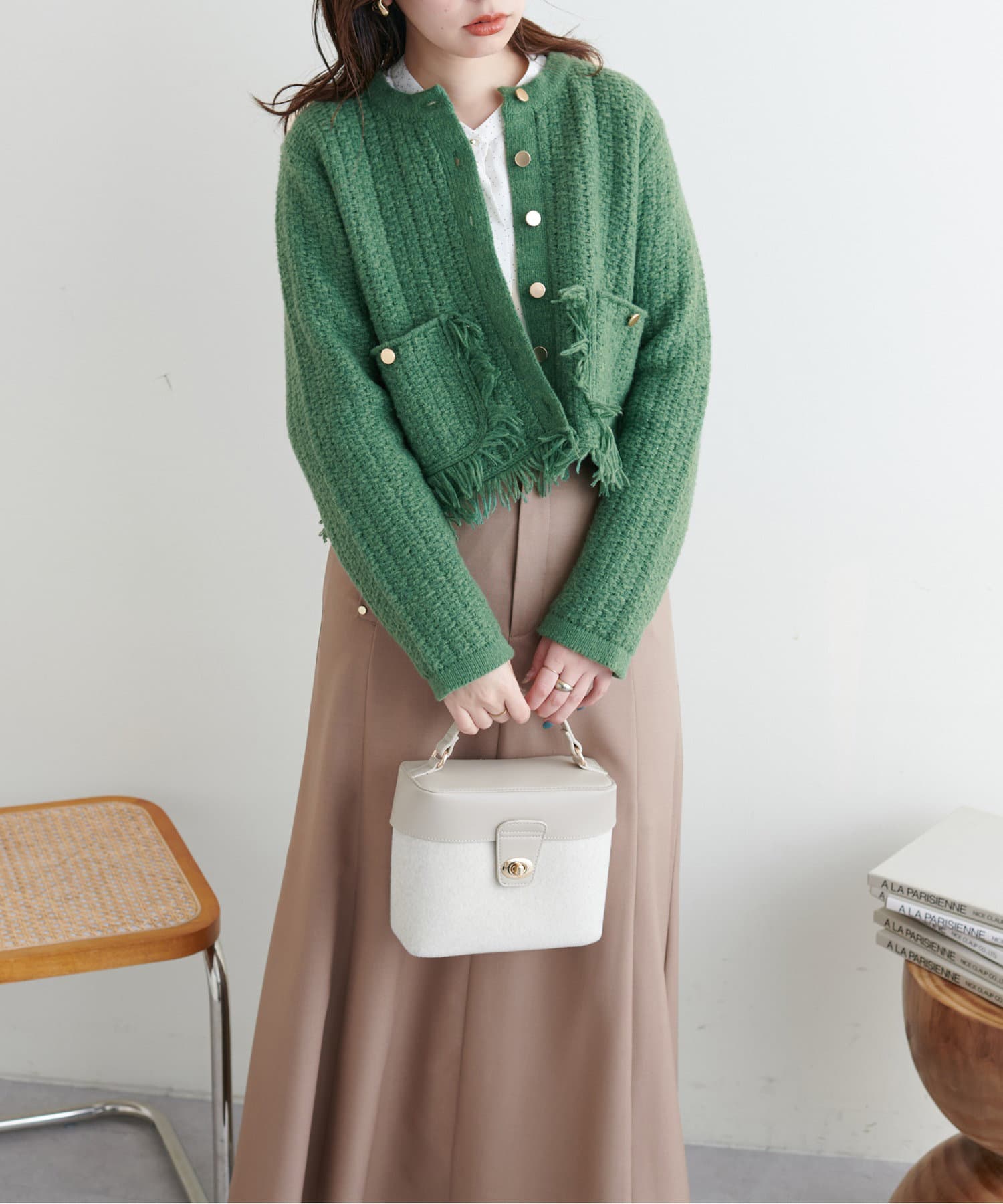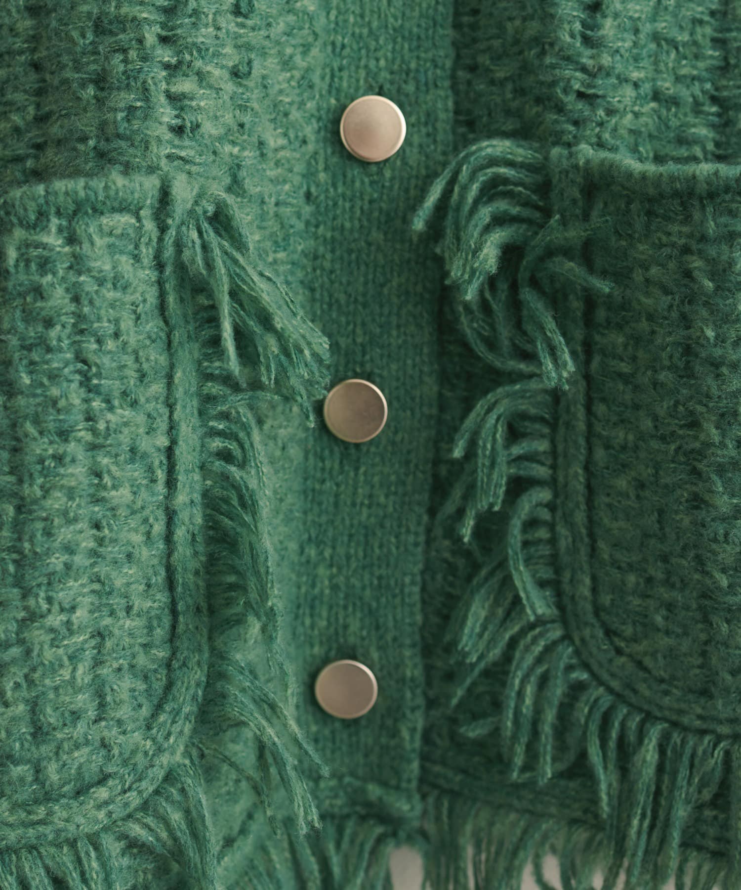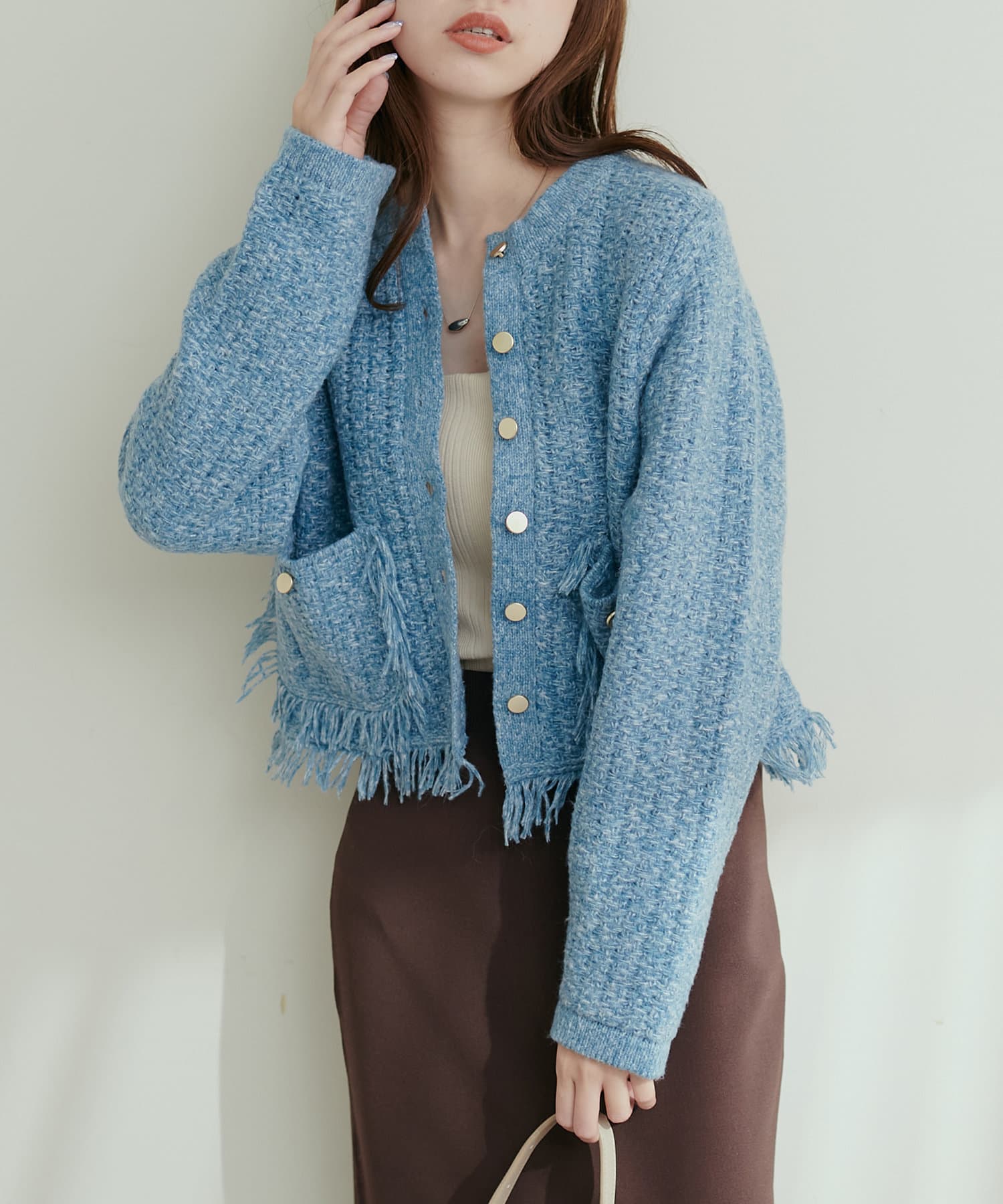贅沢なフリンジとぎゅっとつまった編地が可愛いカーディガン。