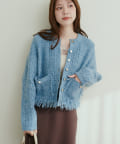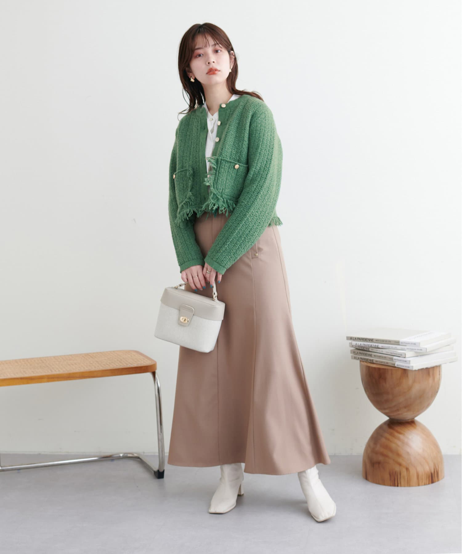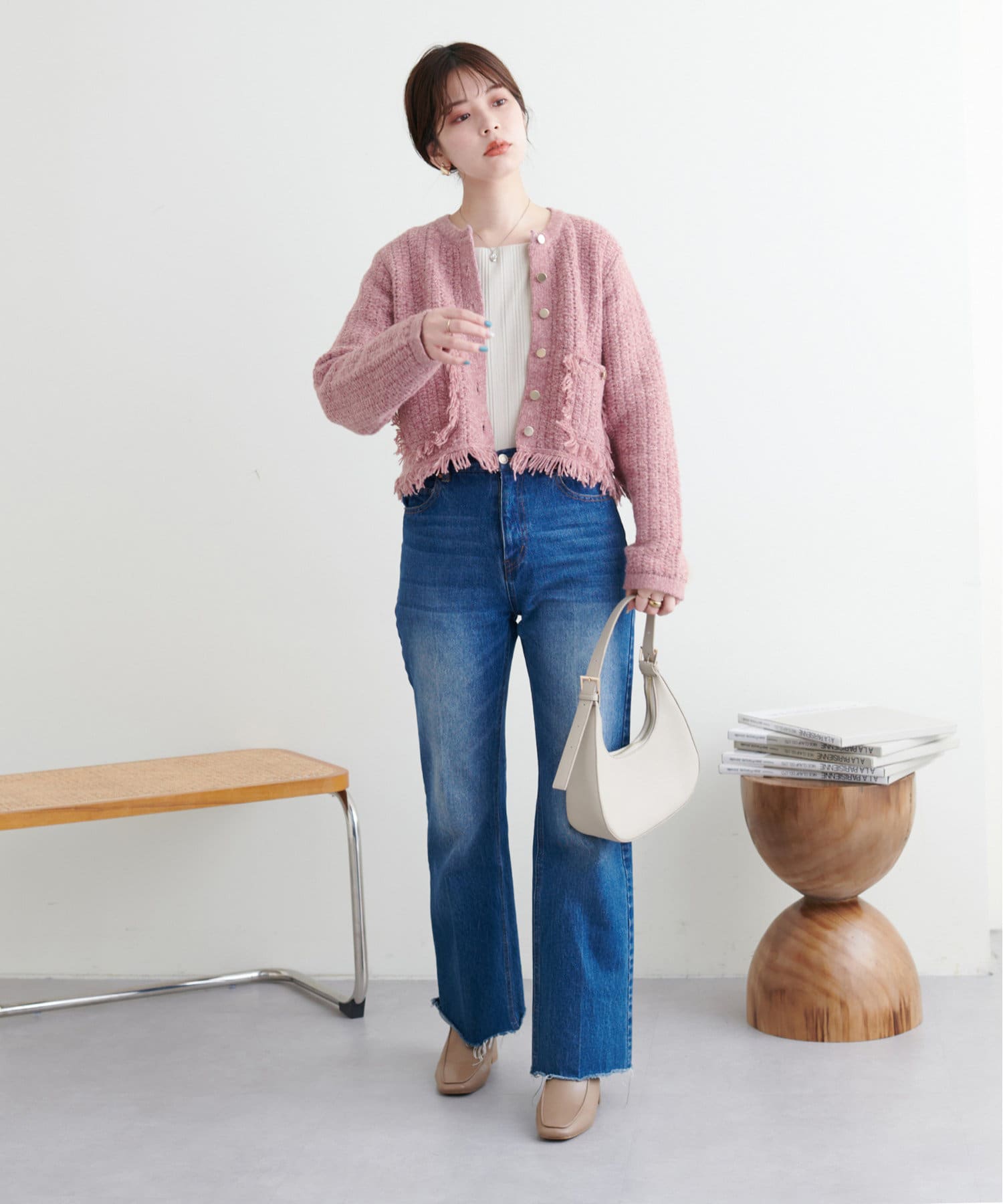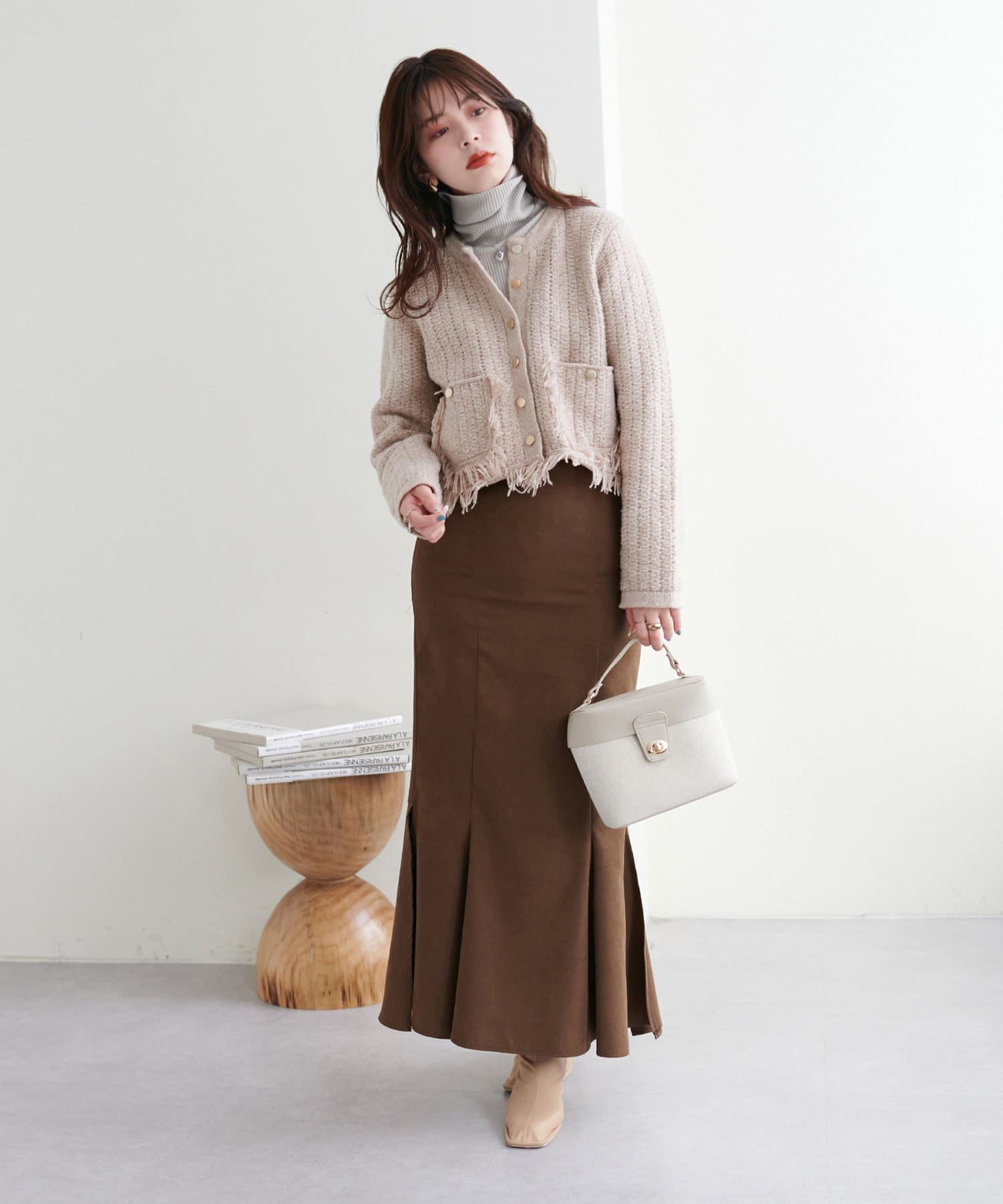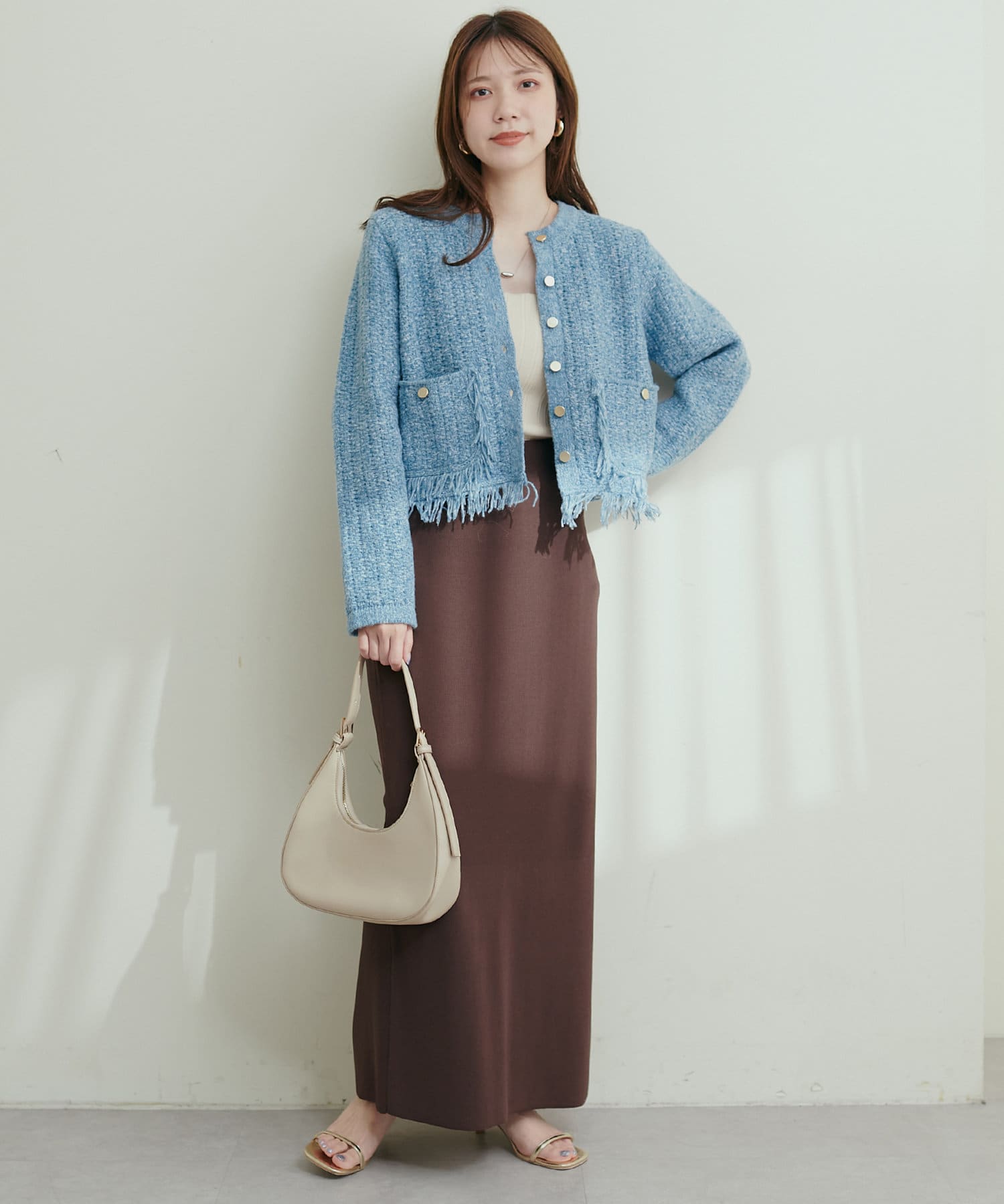贅沢なフリンジとぎゅっとつまった編地が可愛いカーディガン。