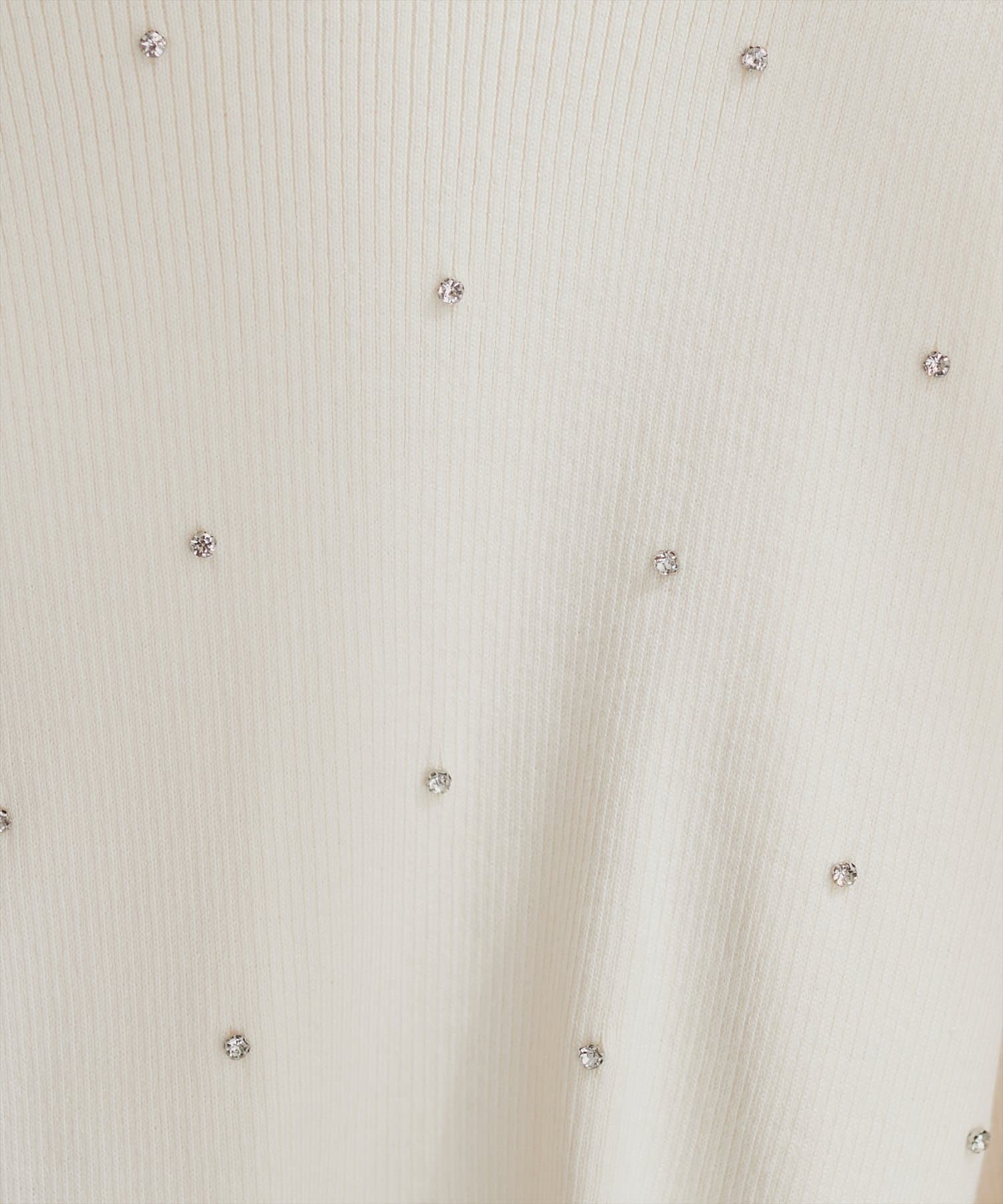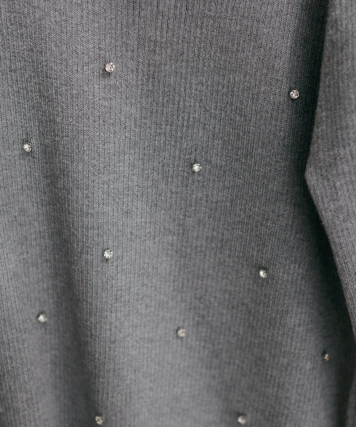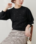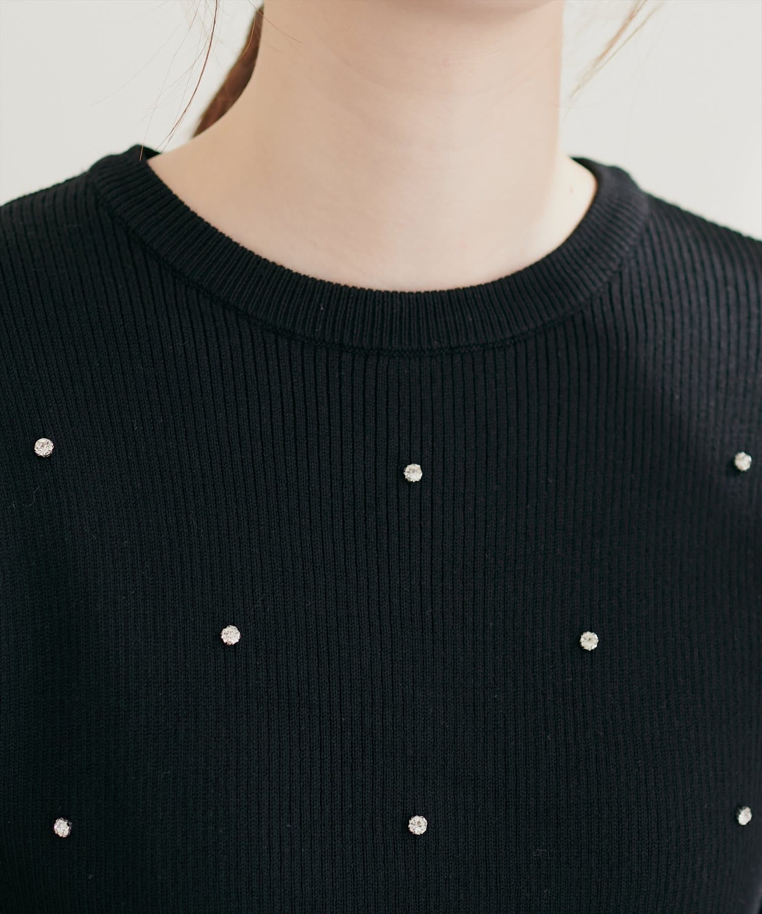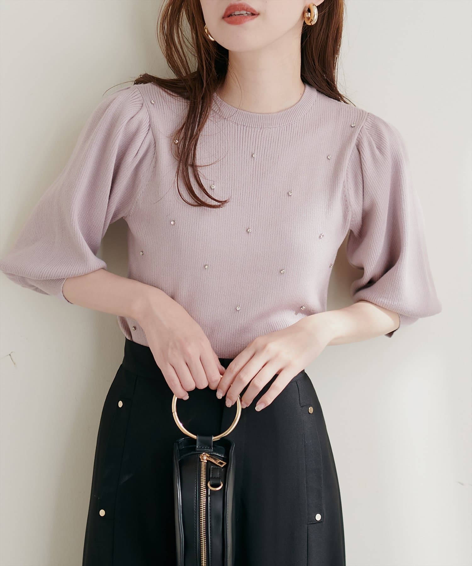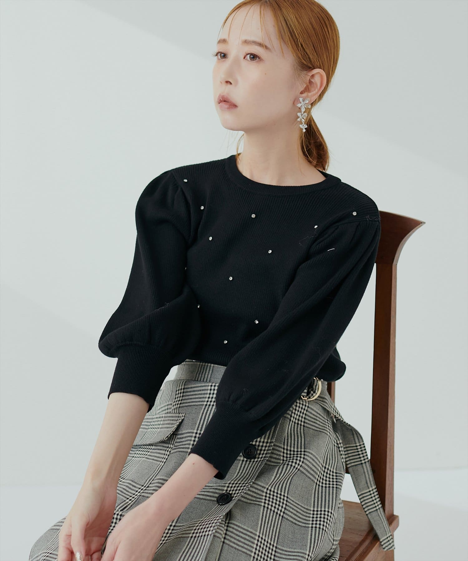 繊細なビジューが散りばめられた、秋に映える7分袖ニット。