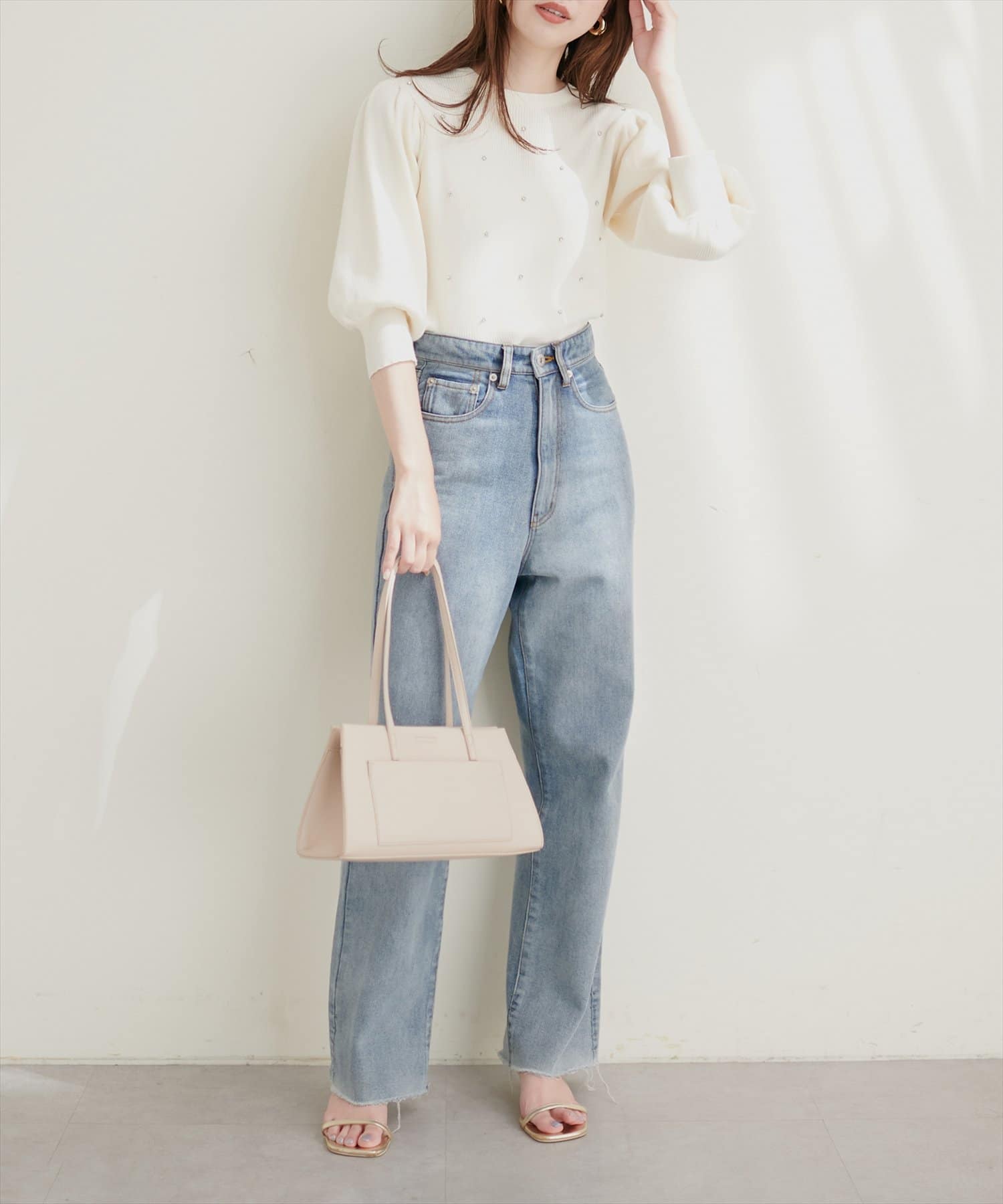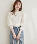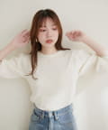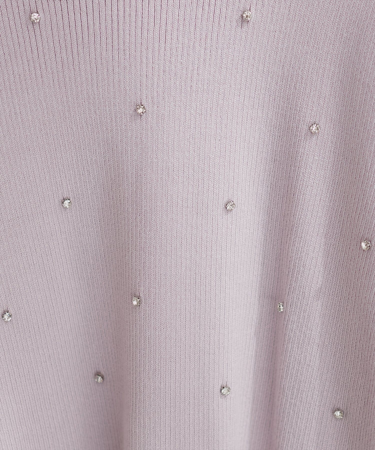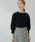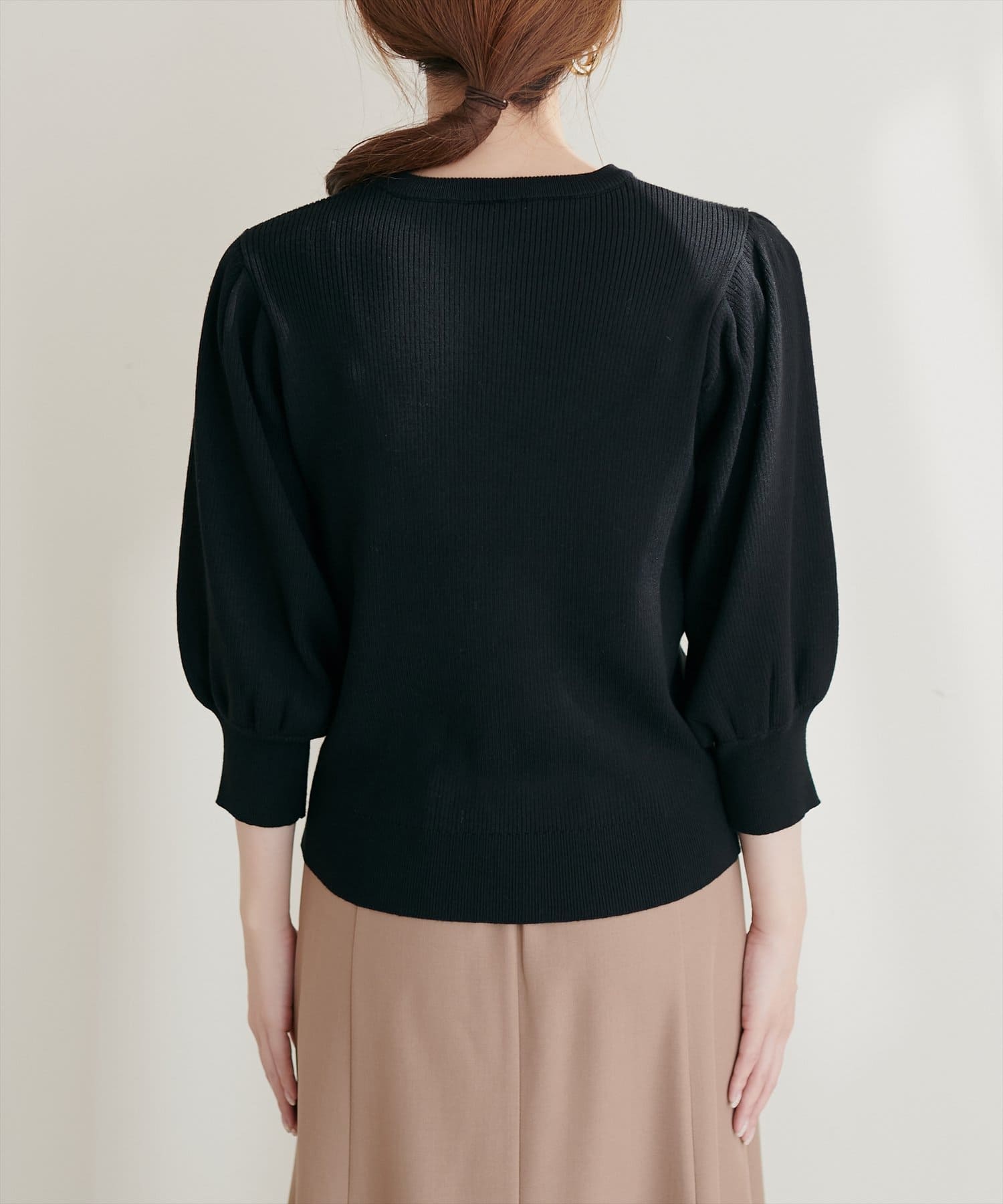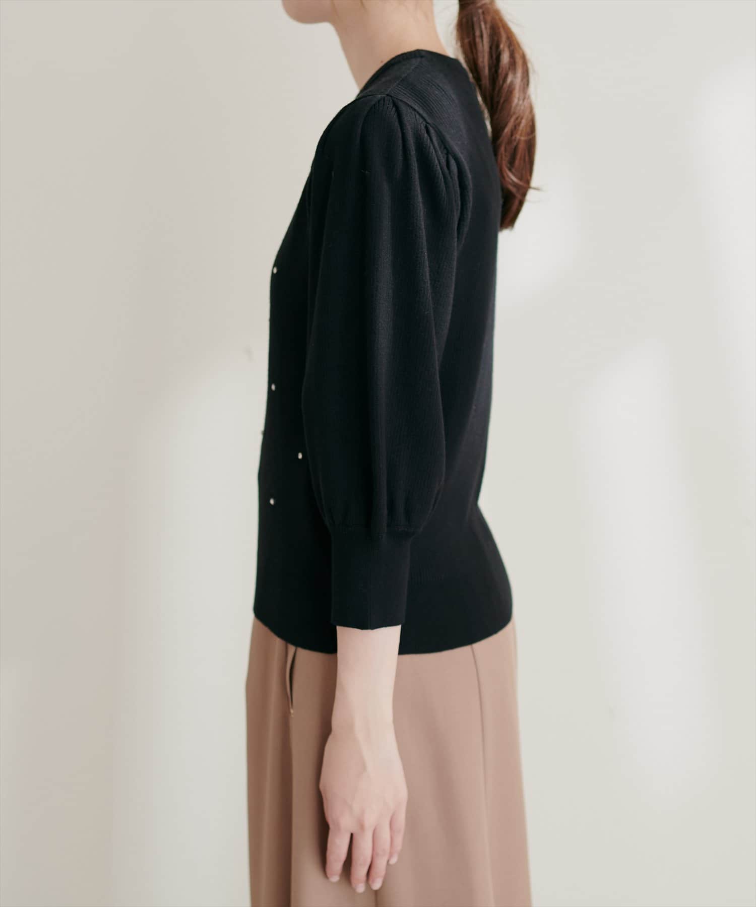 繊細なビジューが散りばめられた、秋に映える7分袖ニット。