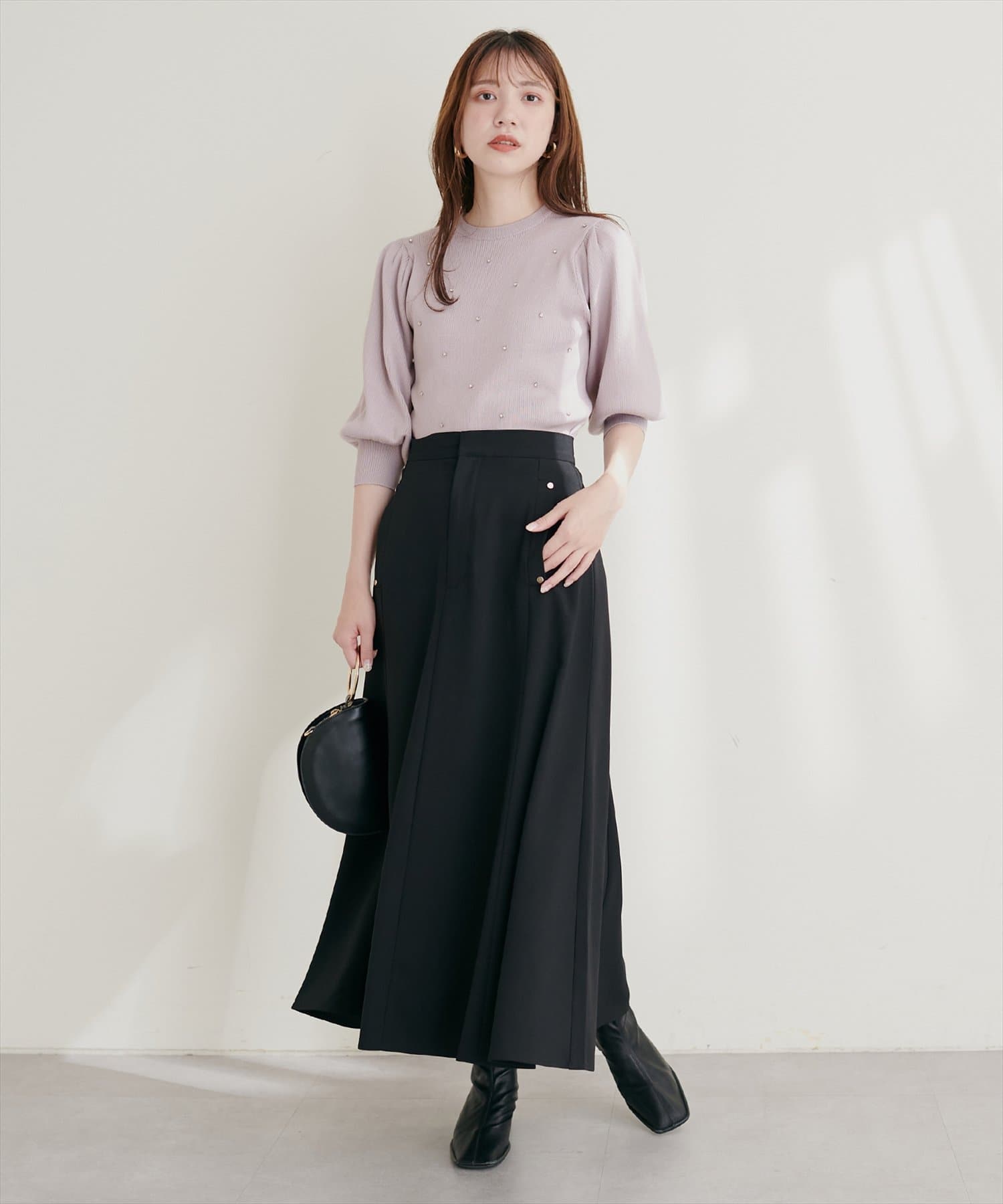 フレアスカートやマーメイドスカートを合わせたフェミニンな着こなしはもちろん、デニムやスラックスと合わせたカジュアルミックスコーデも◎