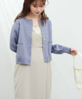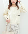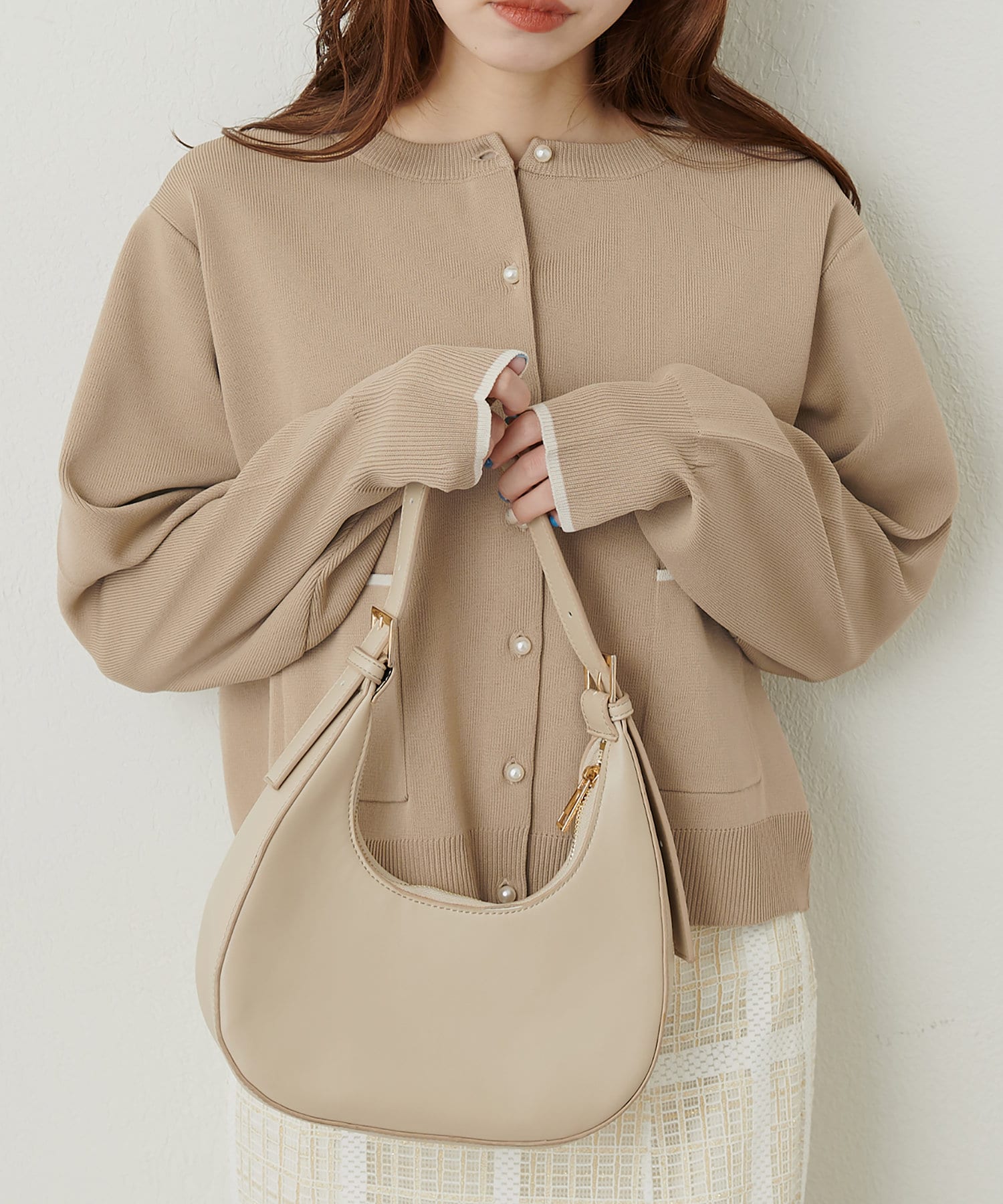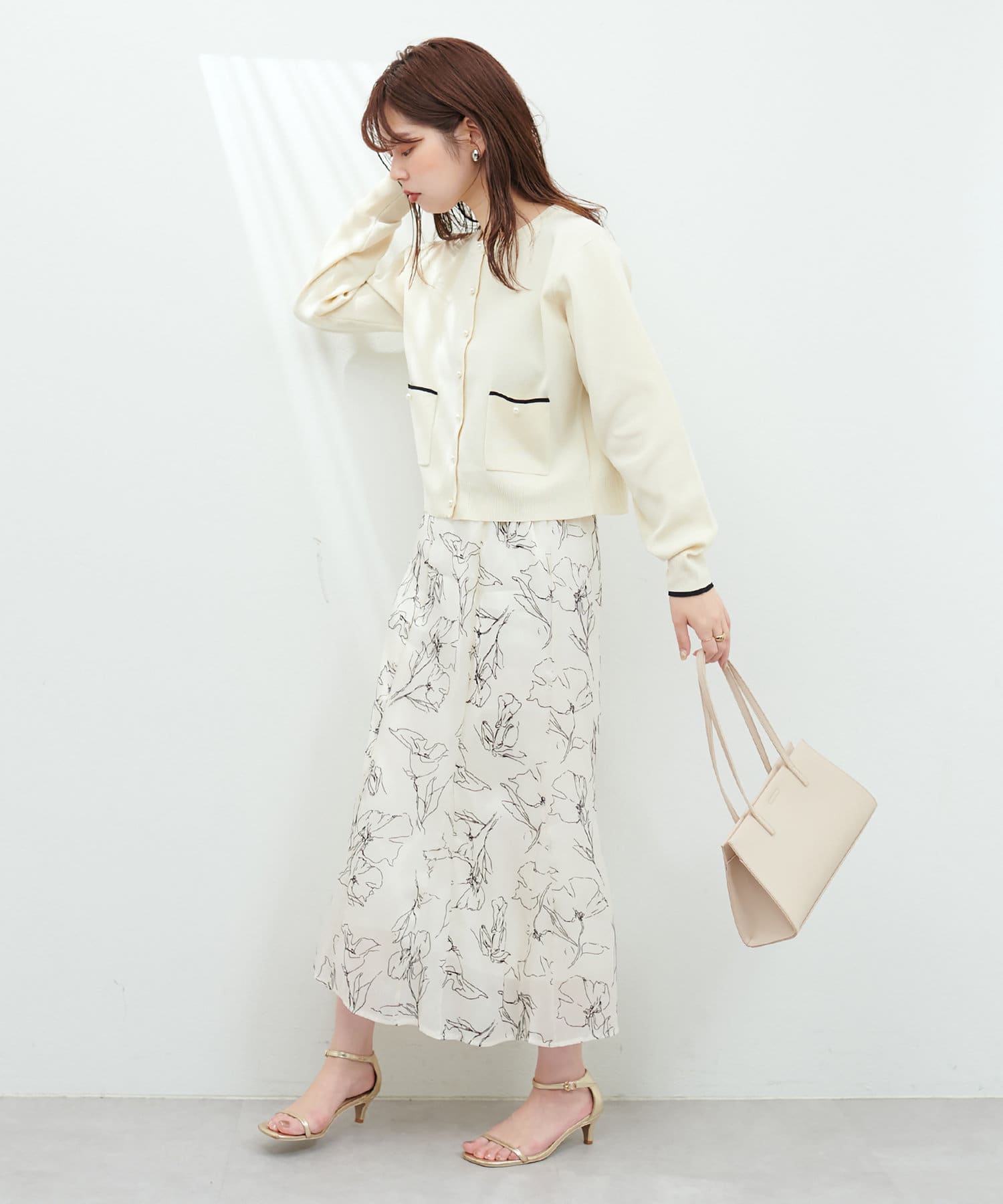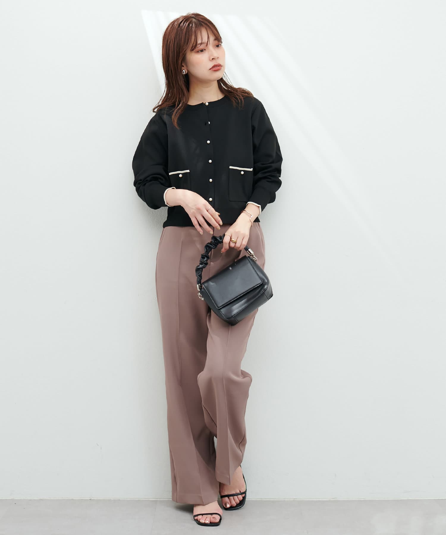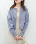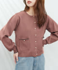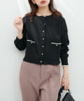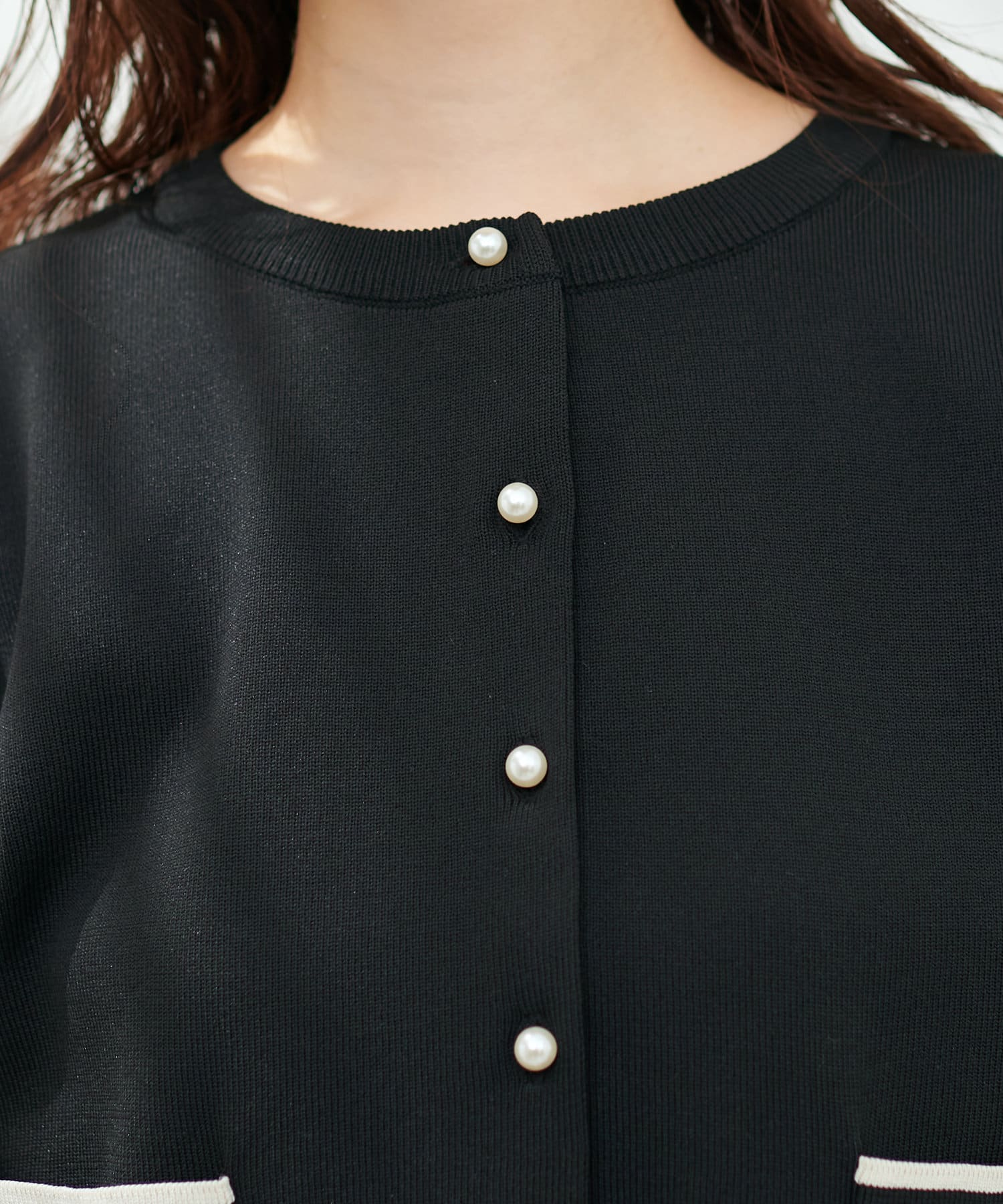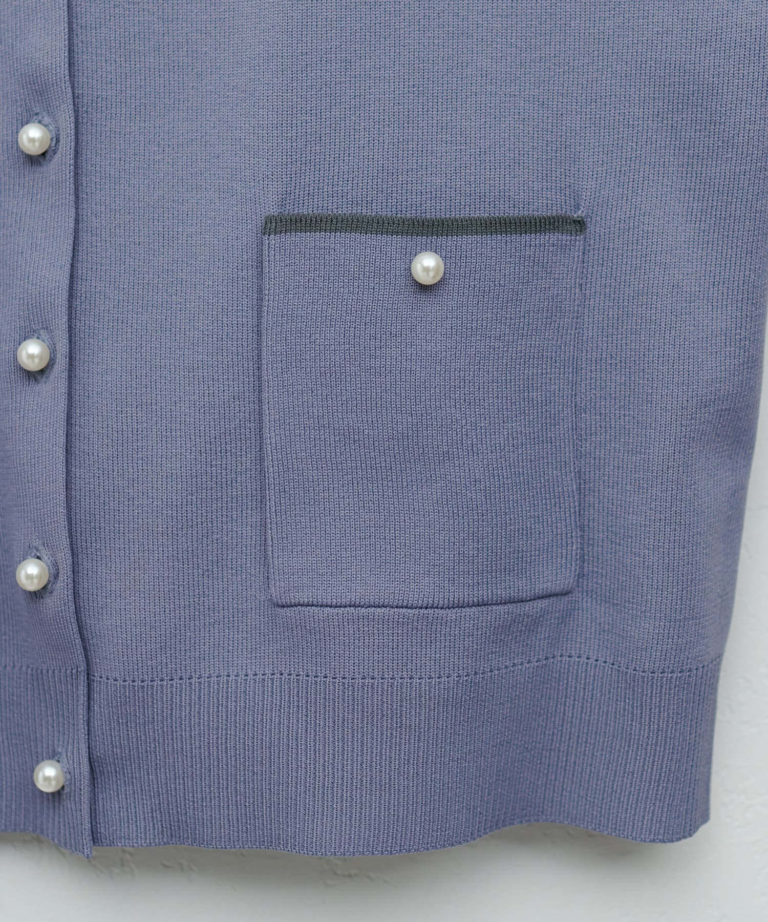 袖口とポケットの配色やパール釦がさりげないポイントで目を惹くカーディガン。