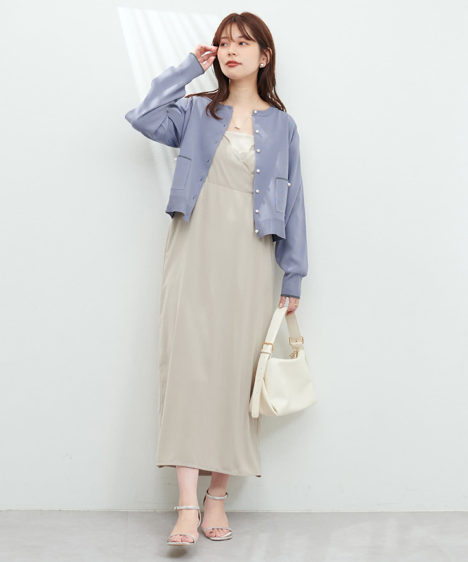釦を開けて、お好みのキャミソールやタンクトップをインナーに羽織って頂いたり、キャミワンピースと合わせても◎