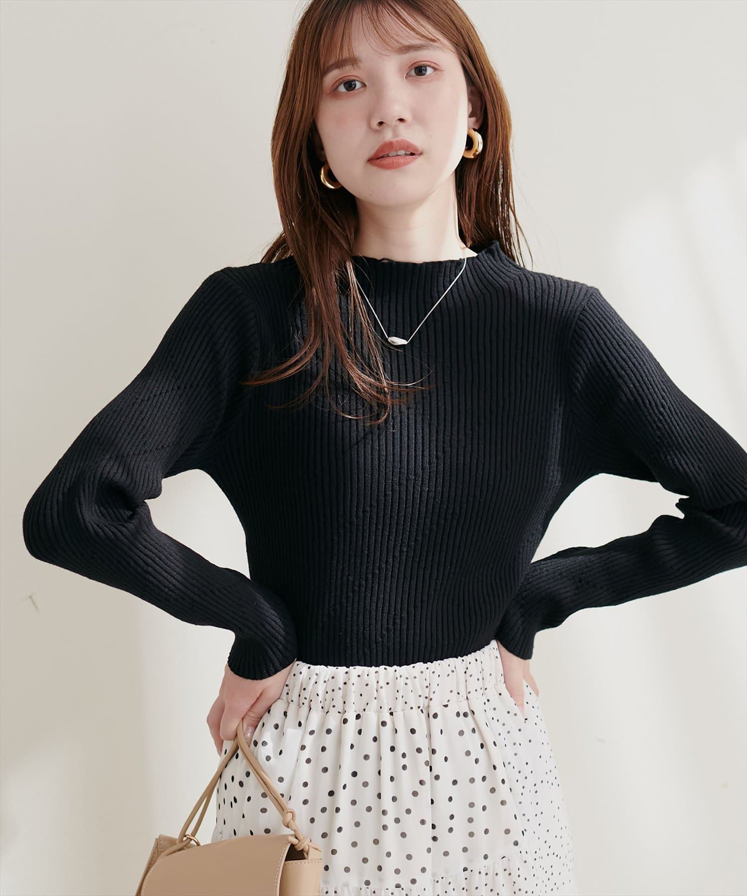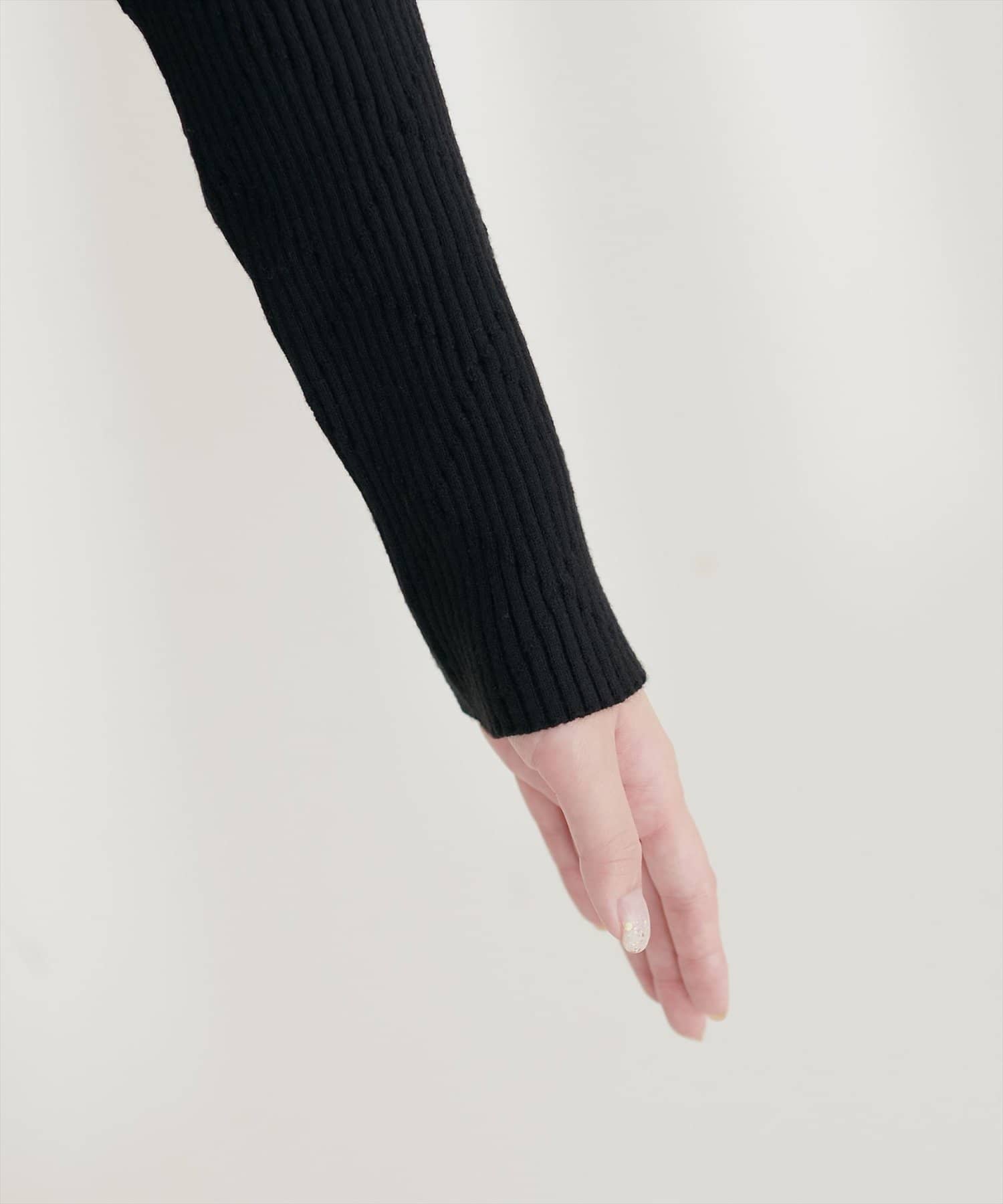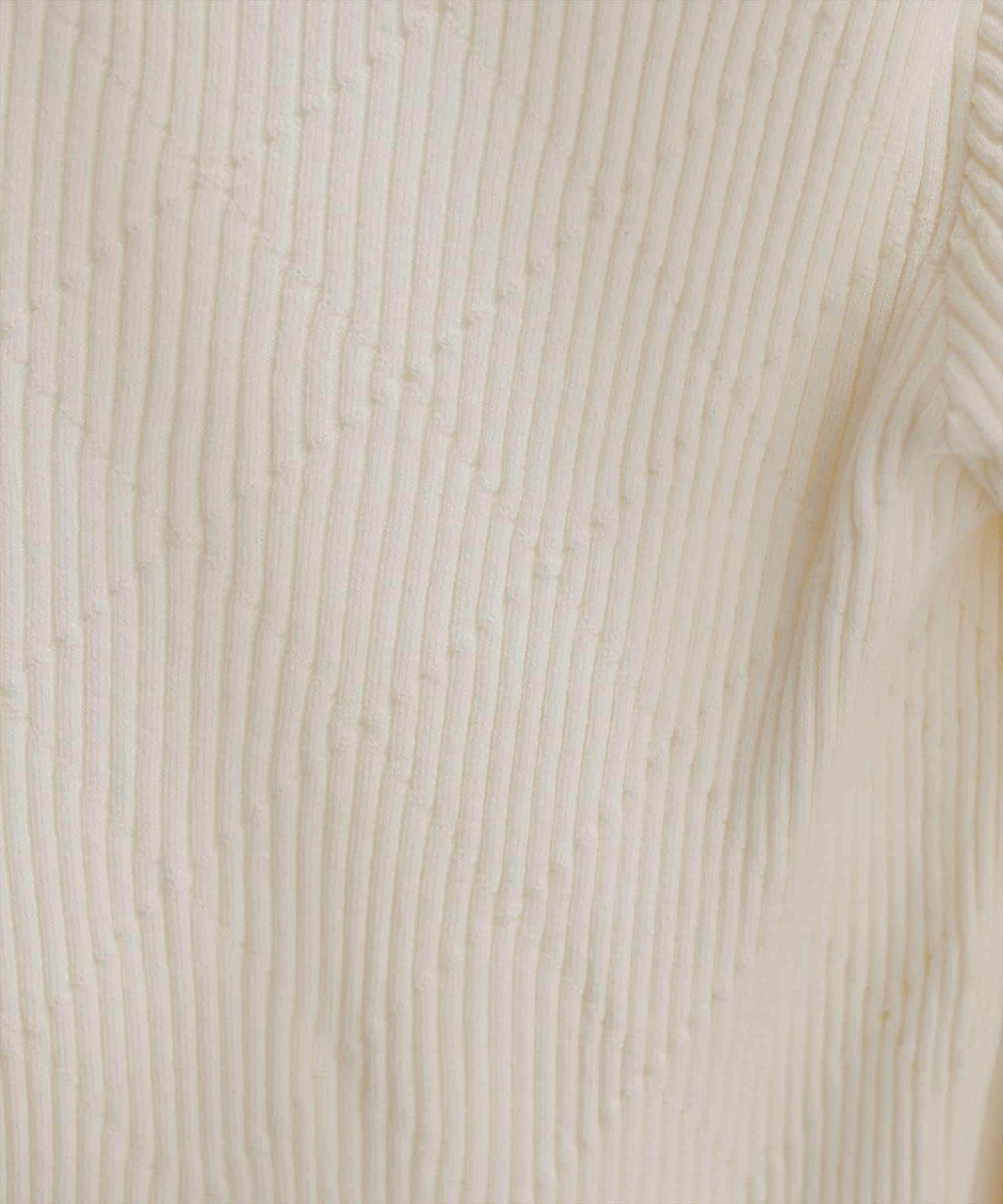 ボディにぴったりと寄り沿うリブニット素材を使用し、肌に優しく柔らかで、