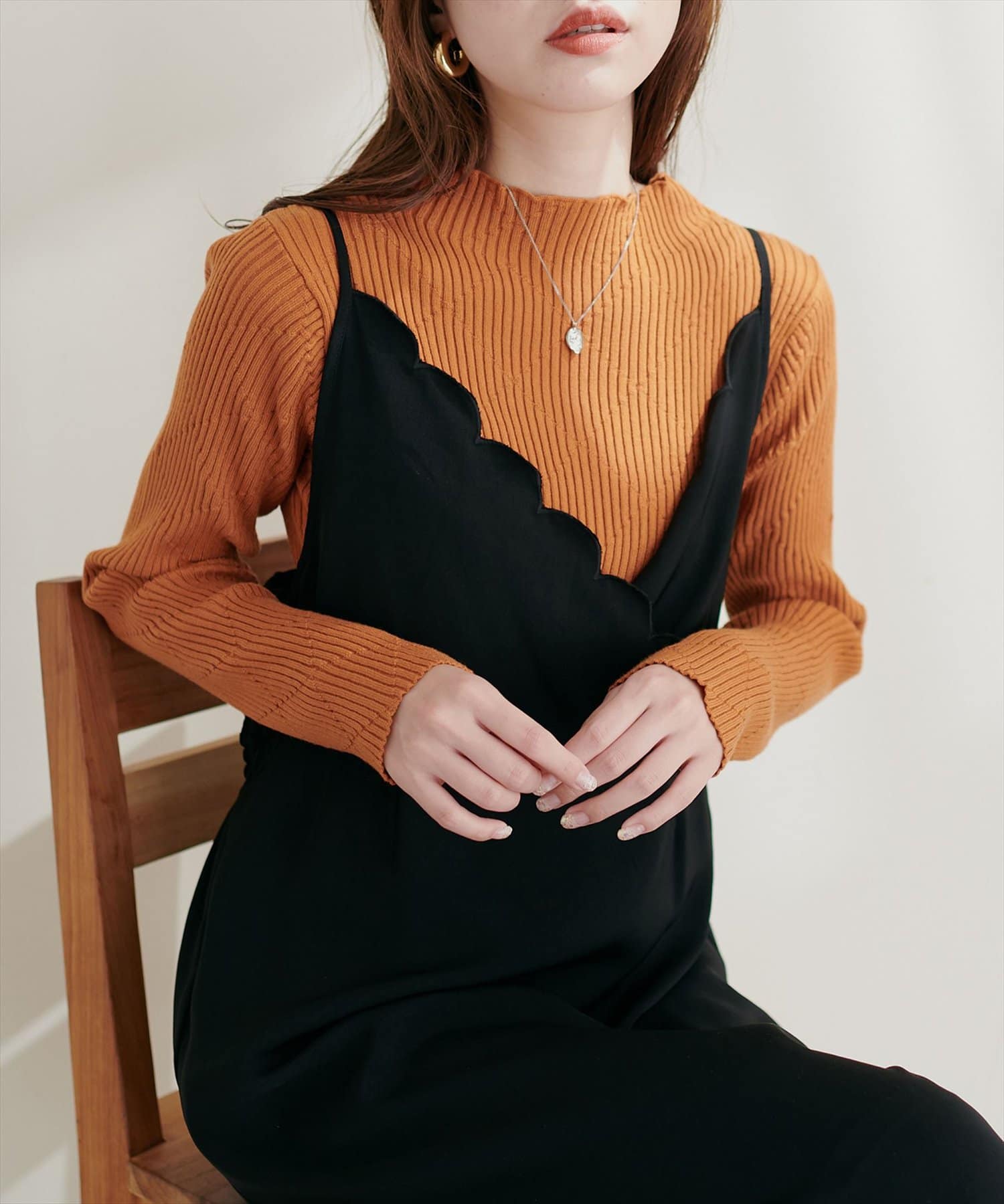シンプルなんですが、控えめなダイア模様がカワイイポイントです。薄手なのでキャミワンピの下に合わせても表に響きにくくて可愛かったです。プチハイですが、首に当たらないので大丈夫だった!ラインは拾いにくいと思いますが、柔らかい素材苦手な人は試着オススメします。