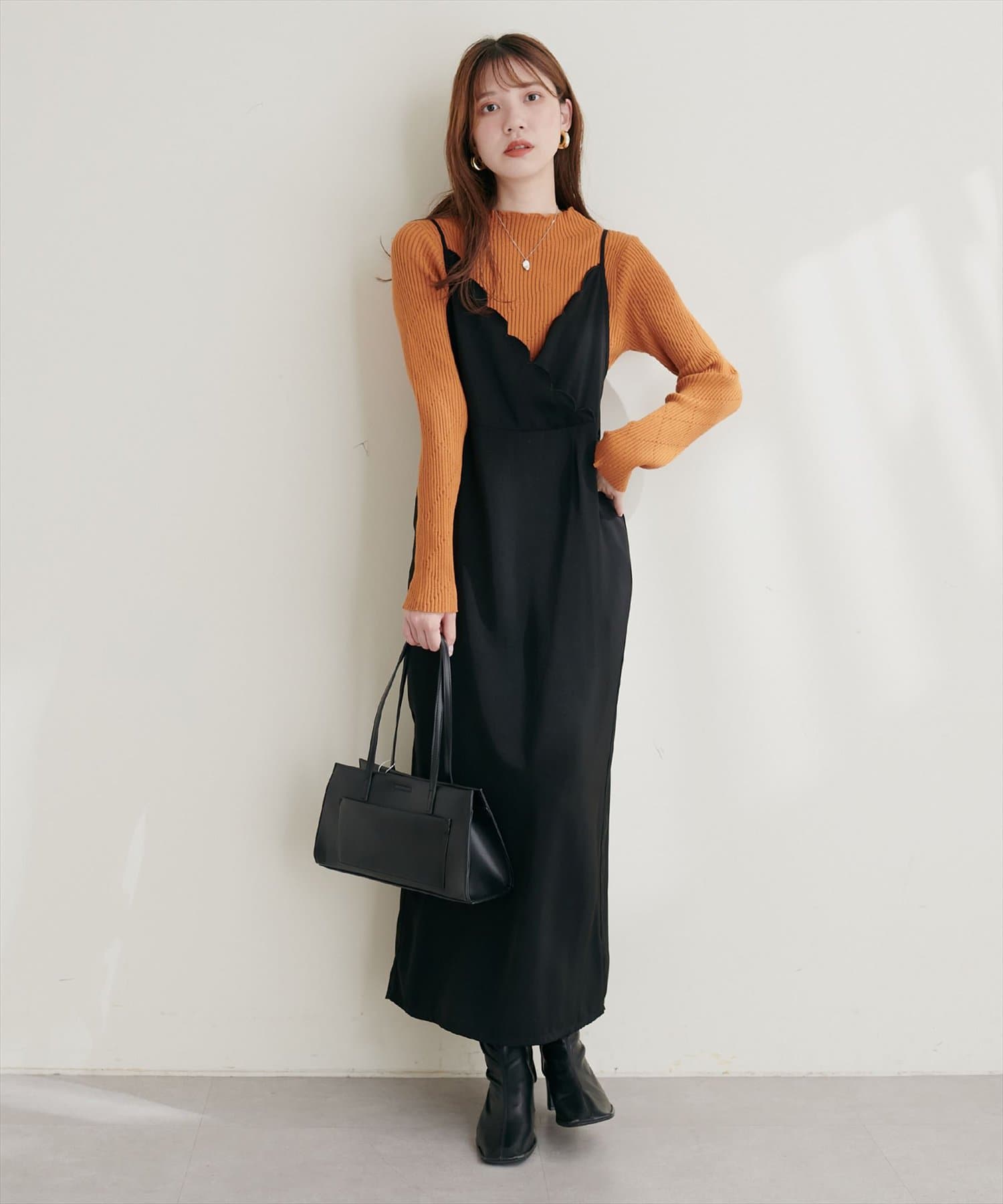 デザインがシンプルなので、パンツ、スカート、キャミワンピなど