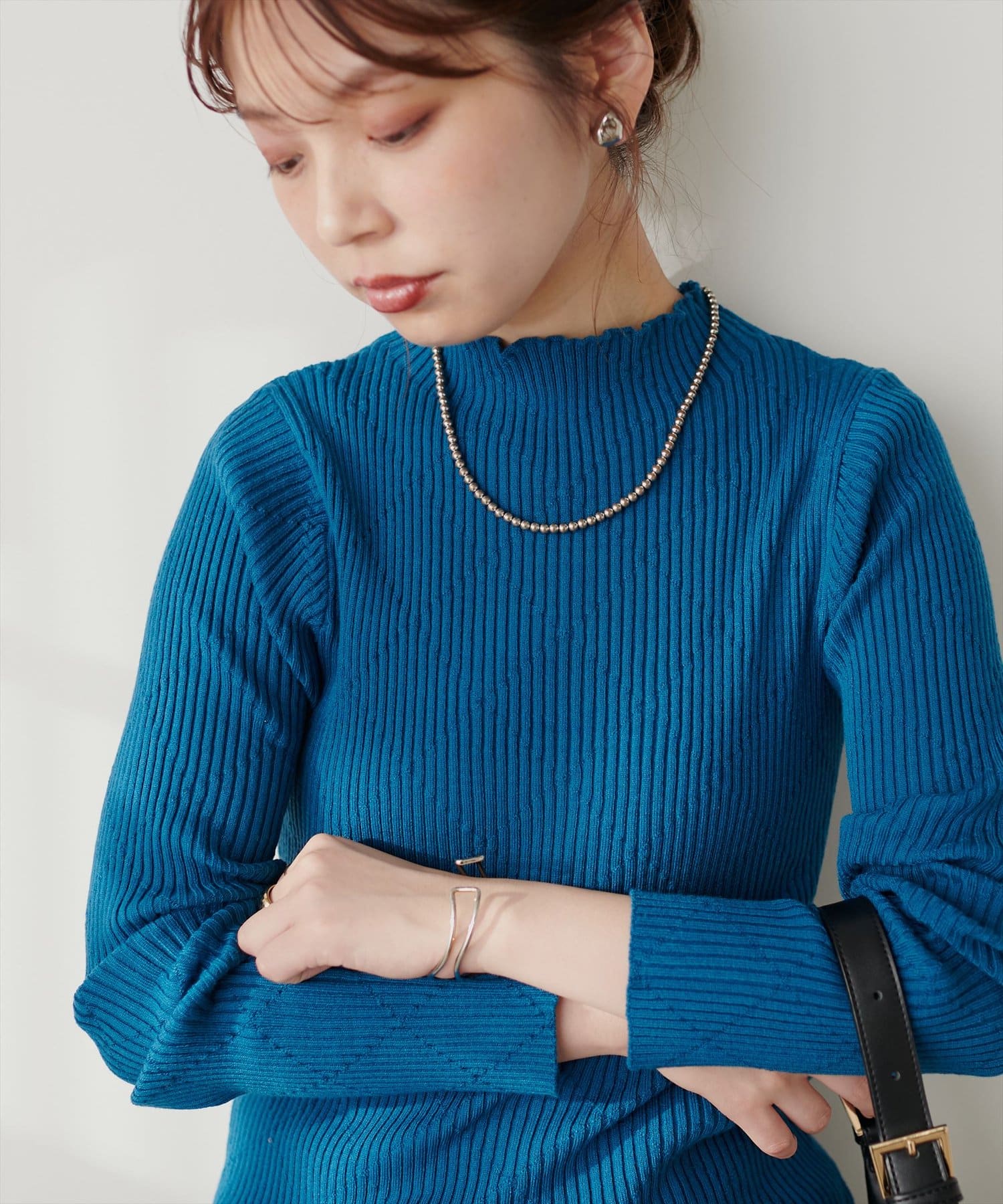 TOP > natural couture > レディース > トップス > ニット/セーター > ダイヤ柄プチハイリブニット